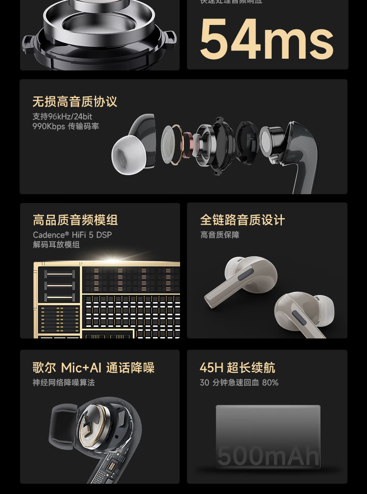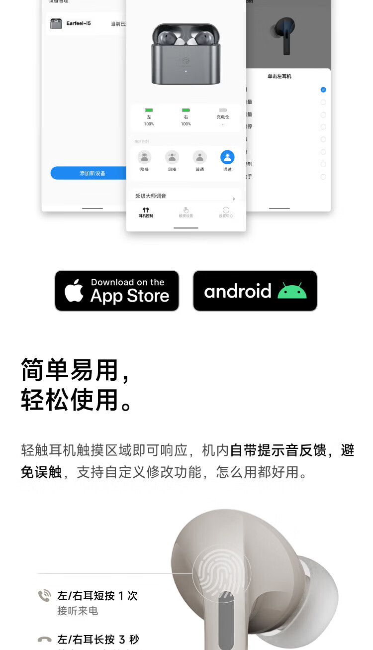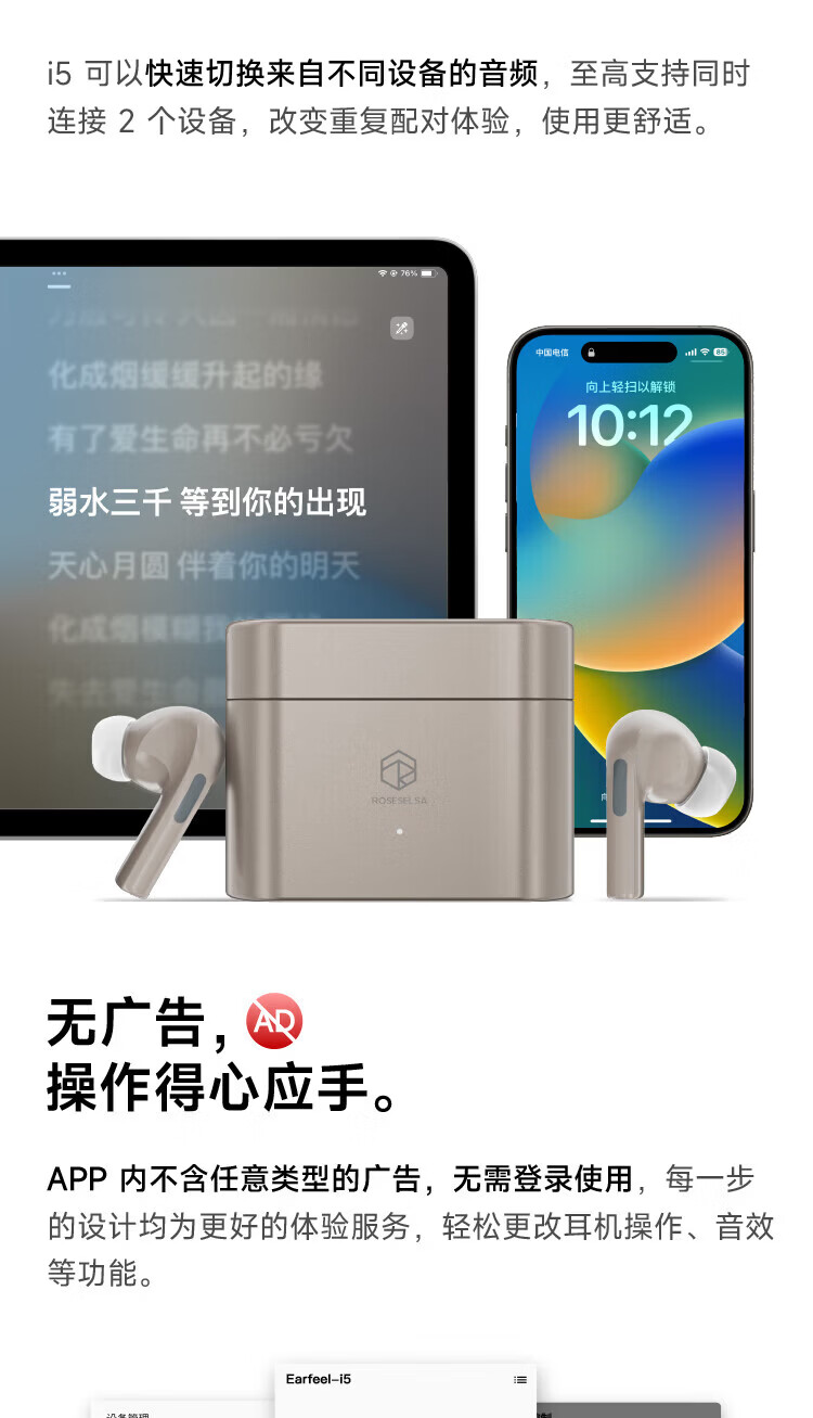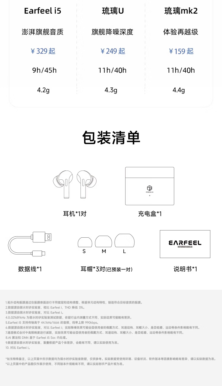 弱水时砂【周传雄推荐】earfeel i5无线蓝牙耳机入耳HiFi音质游戏运动耳机主动降噪长续航学生 武士黑|HiFi音质+强降噪+不压耳
