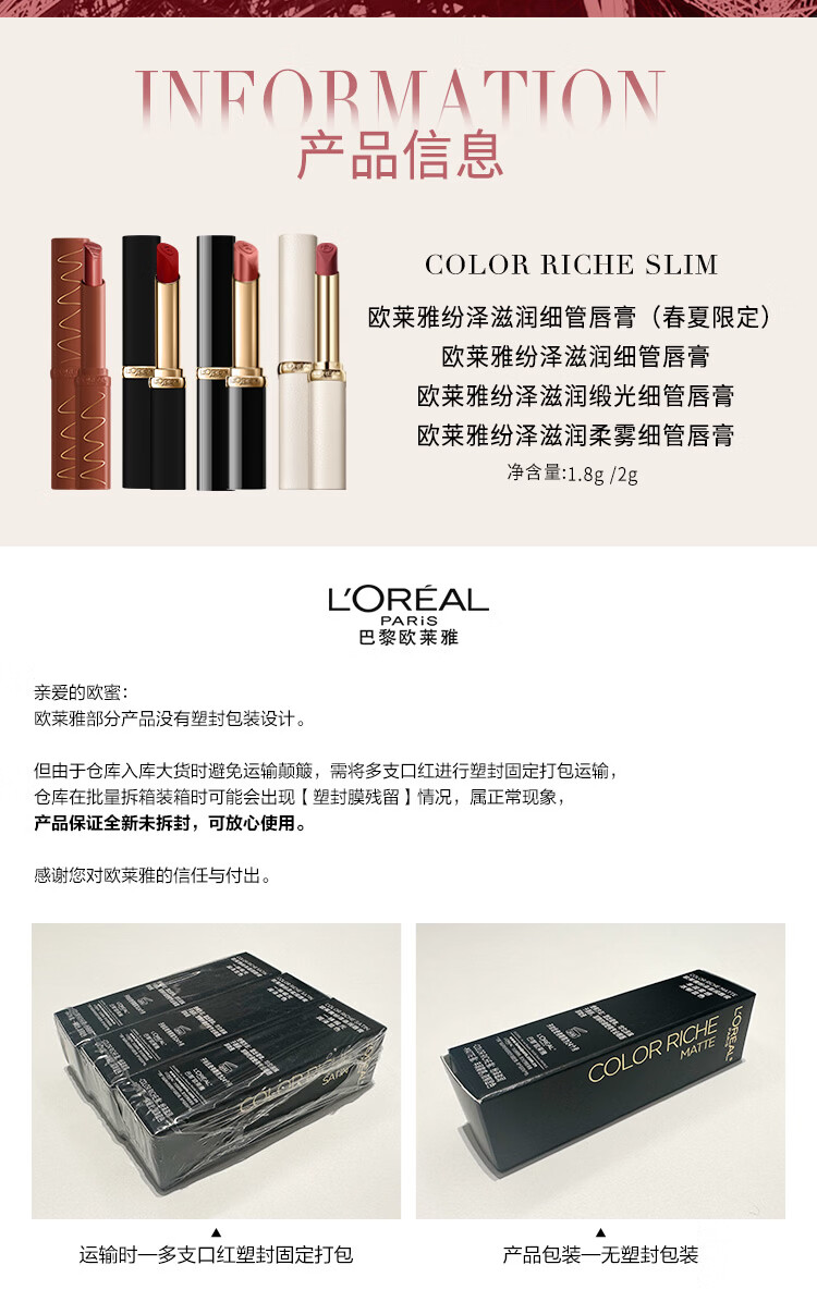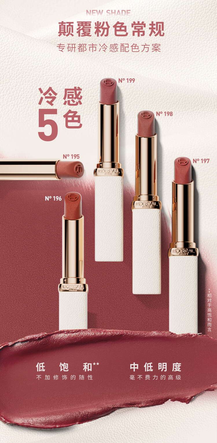 欧莱雅【田栩宁推荐】白管口红197冷赤豆伯爵红茶哑光显白唇膏新年礼物