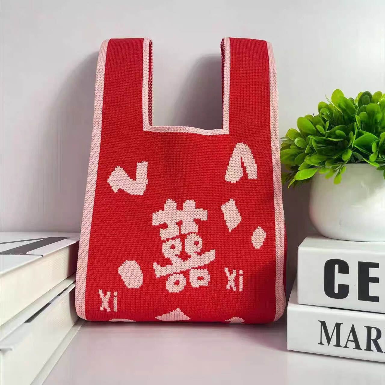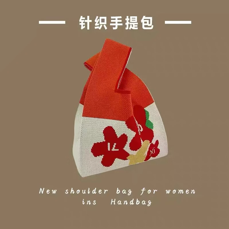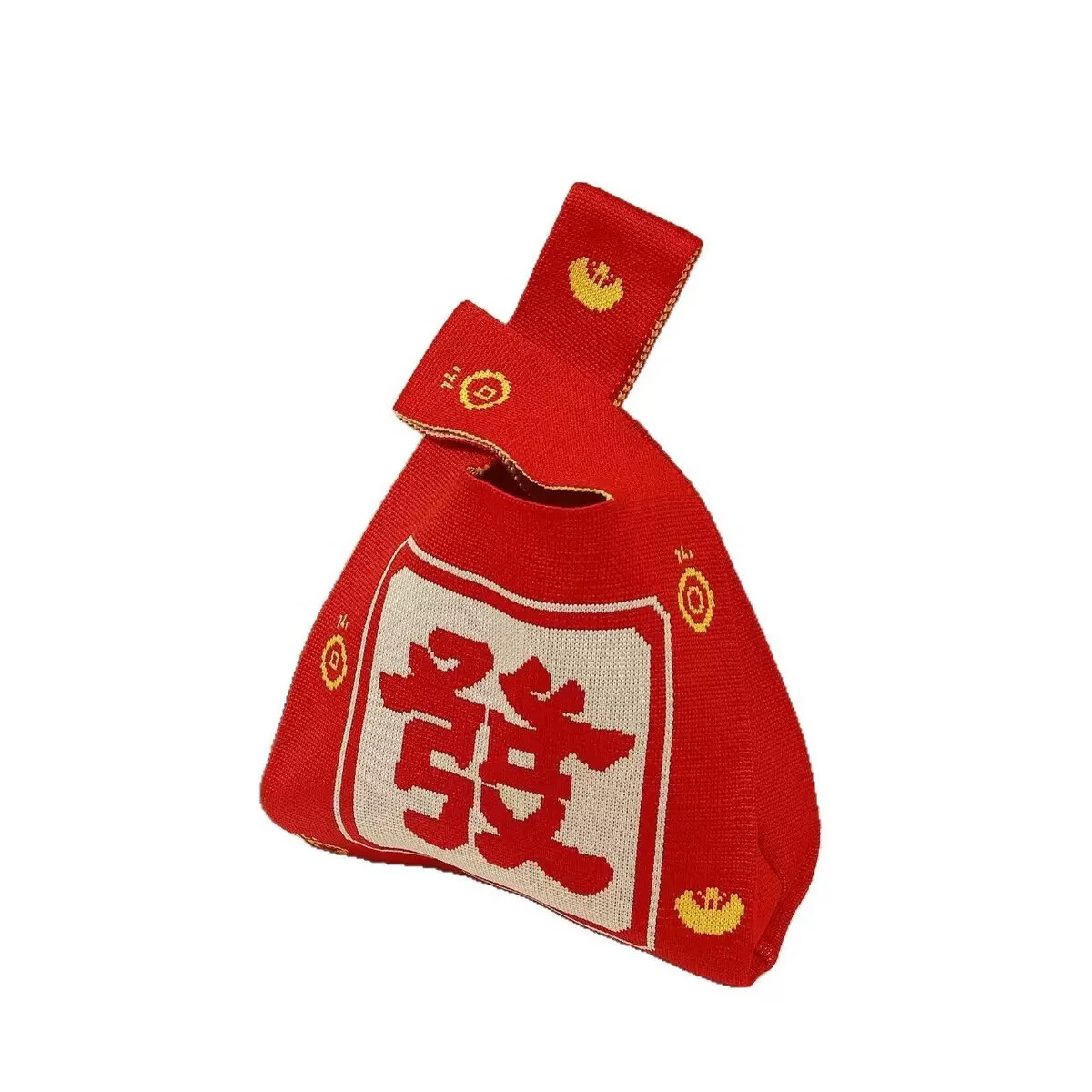 新年文艺国风伴手礼手提袋喜庆针织布2026新年系列 手提包发财 34*19*1cm 手提包发财 红色 1个