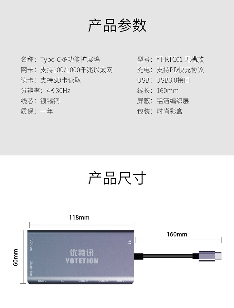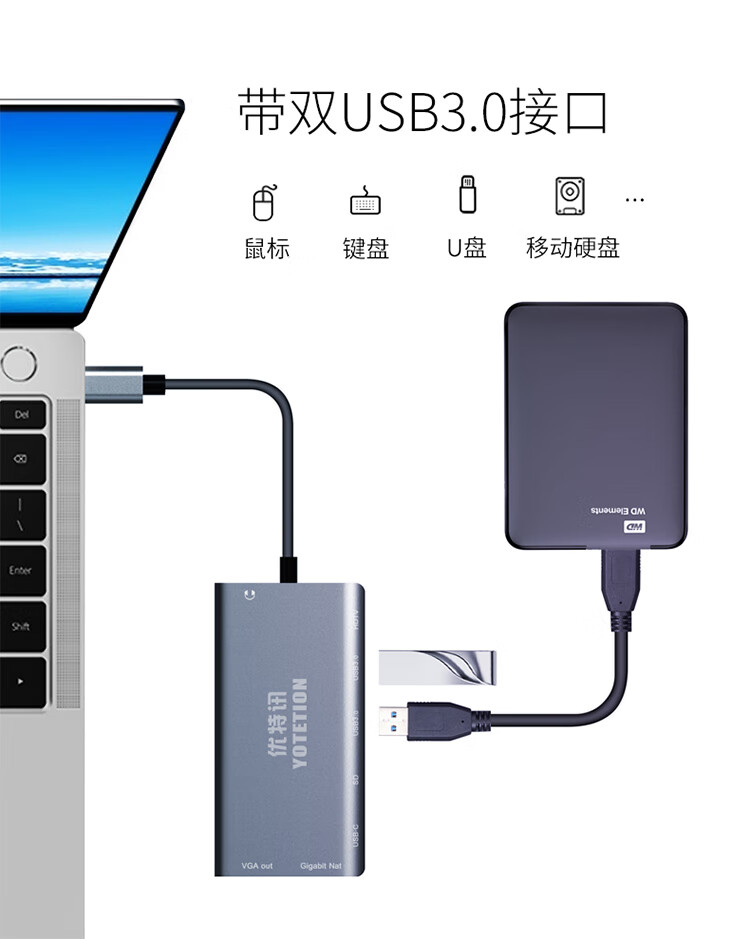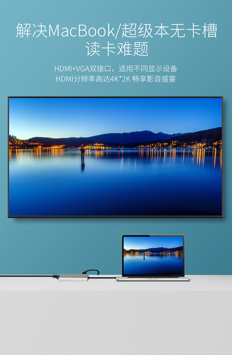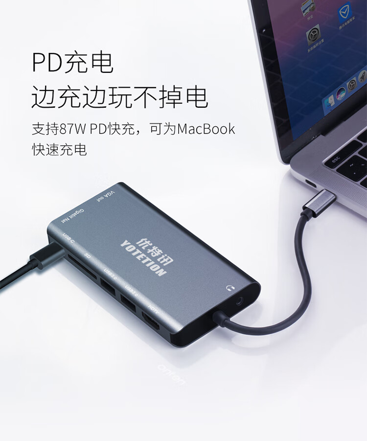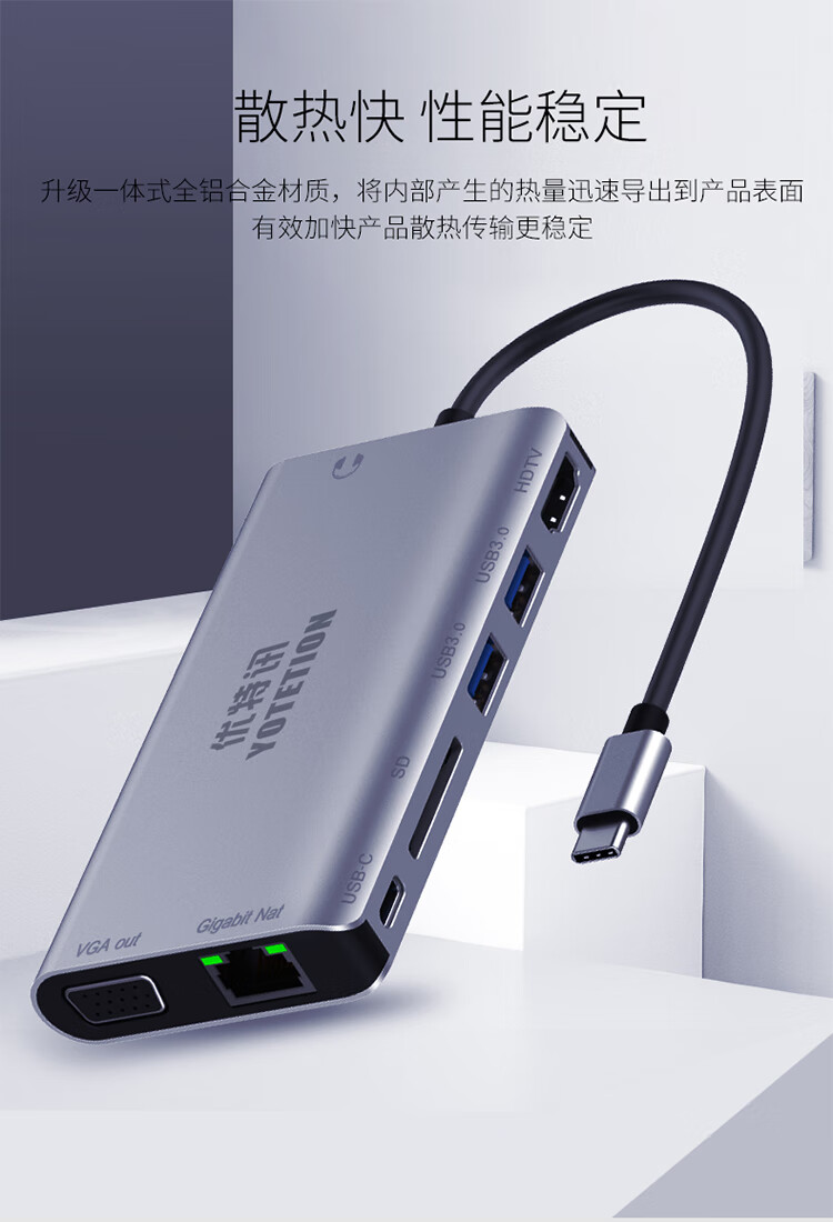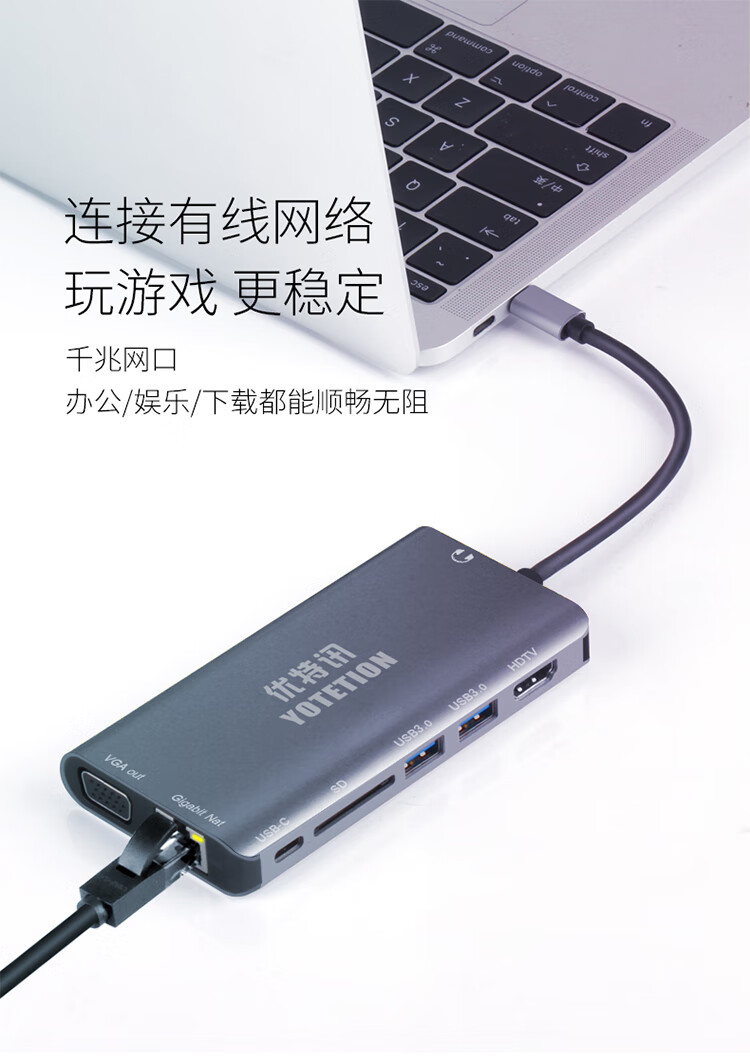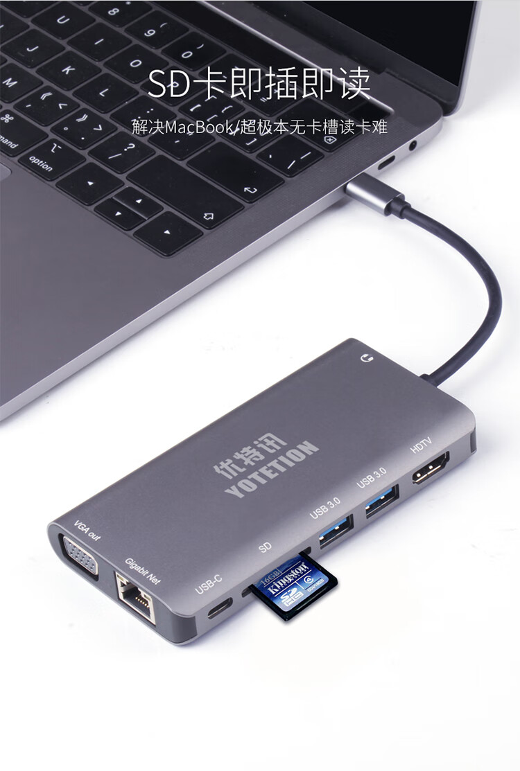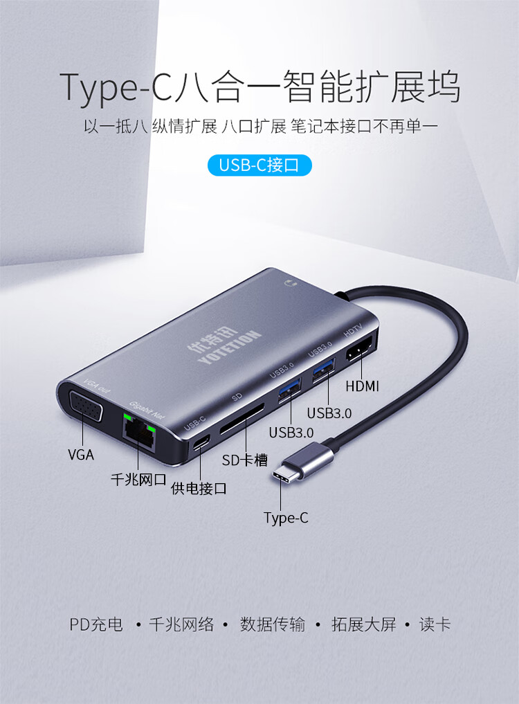 优特讯(YOTETION) Type-C扩展坞USB-C集线器八合一转换器 MacBook笔记本iPad USB-C转HDMI Type-c扩展坞十二合一 支持双屏扩展