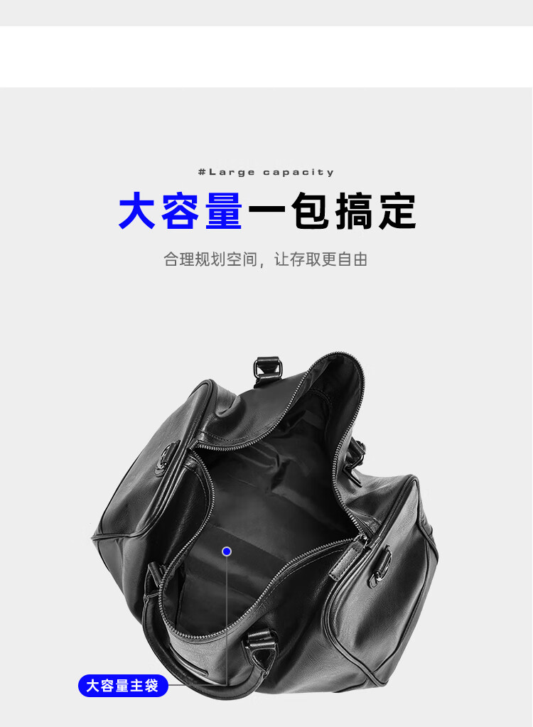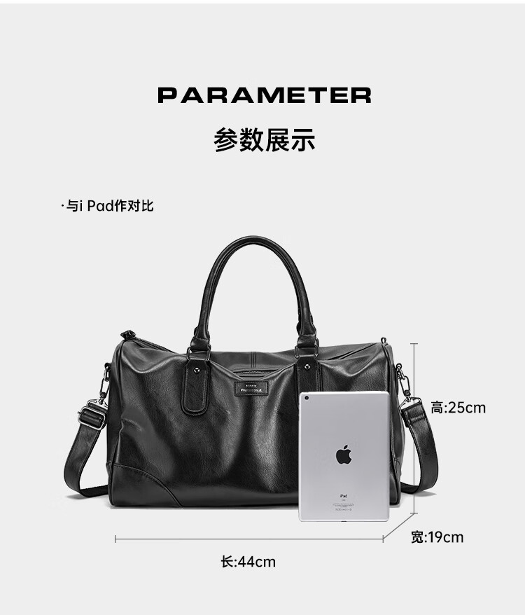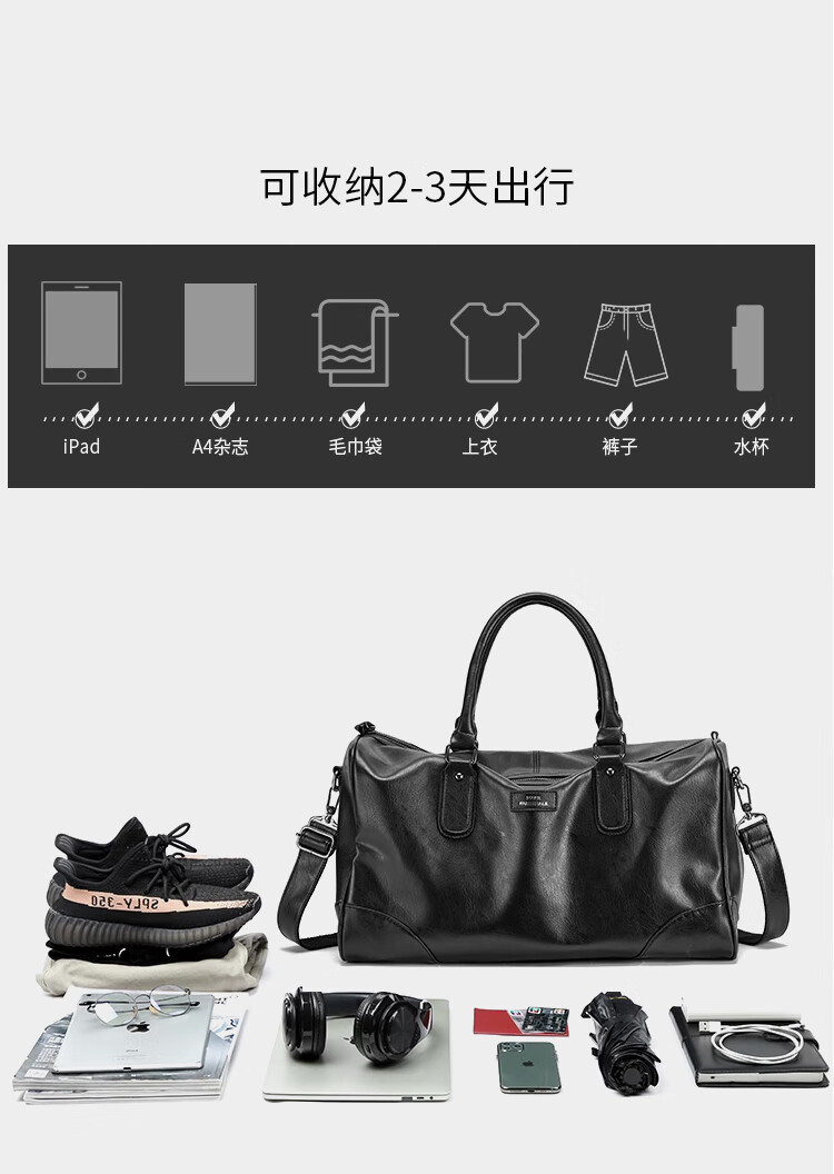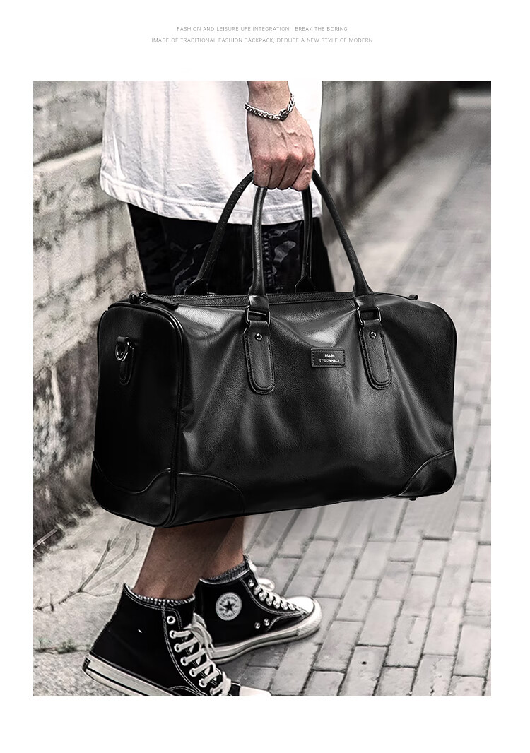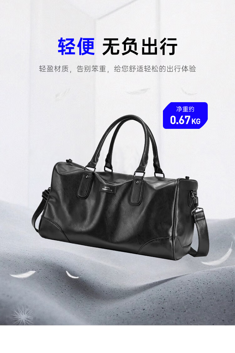 马克华菲游泳健身运动包 旅行包短途旅行 男手提包男士行李包大容量行李袋 典黑(皮革纹)