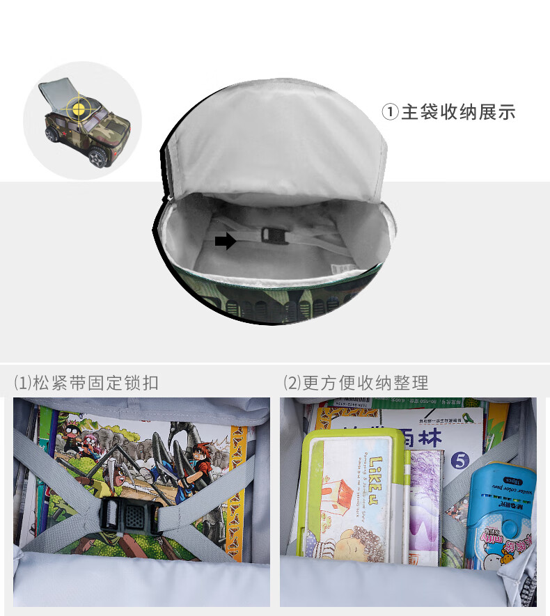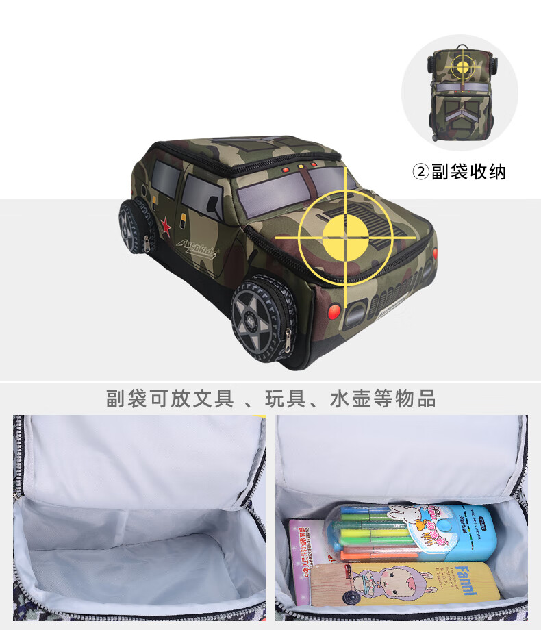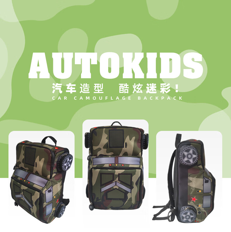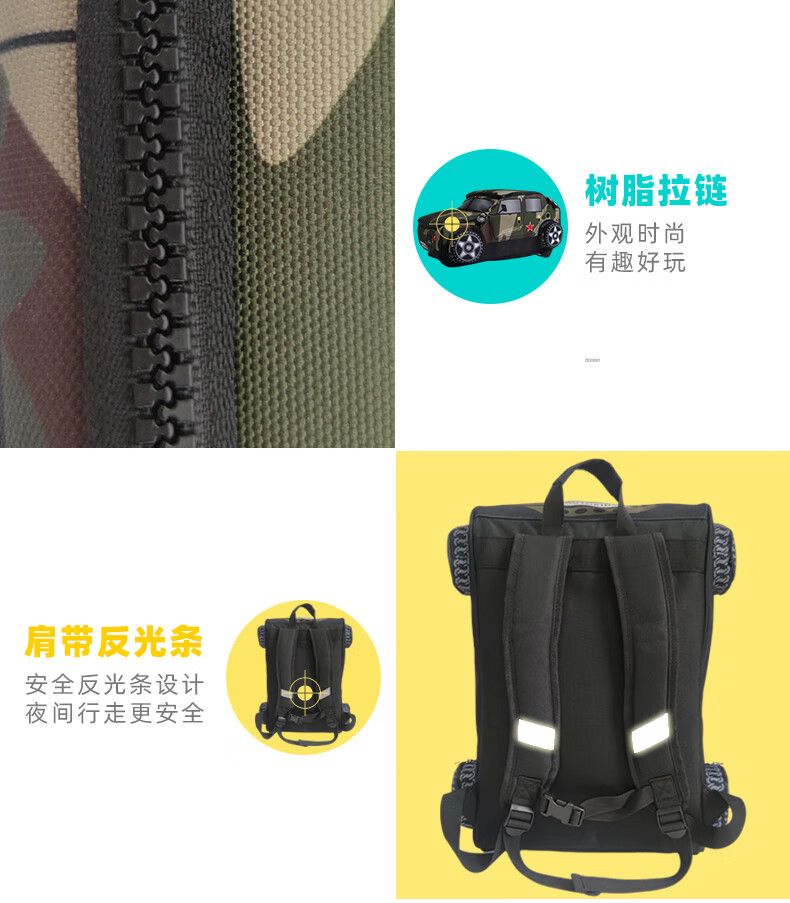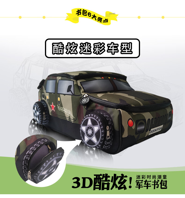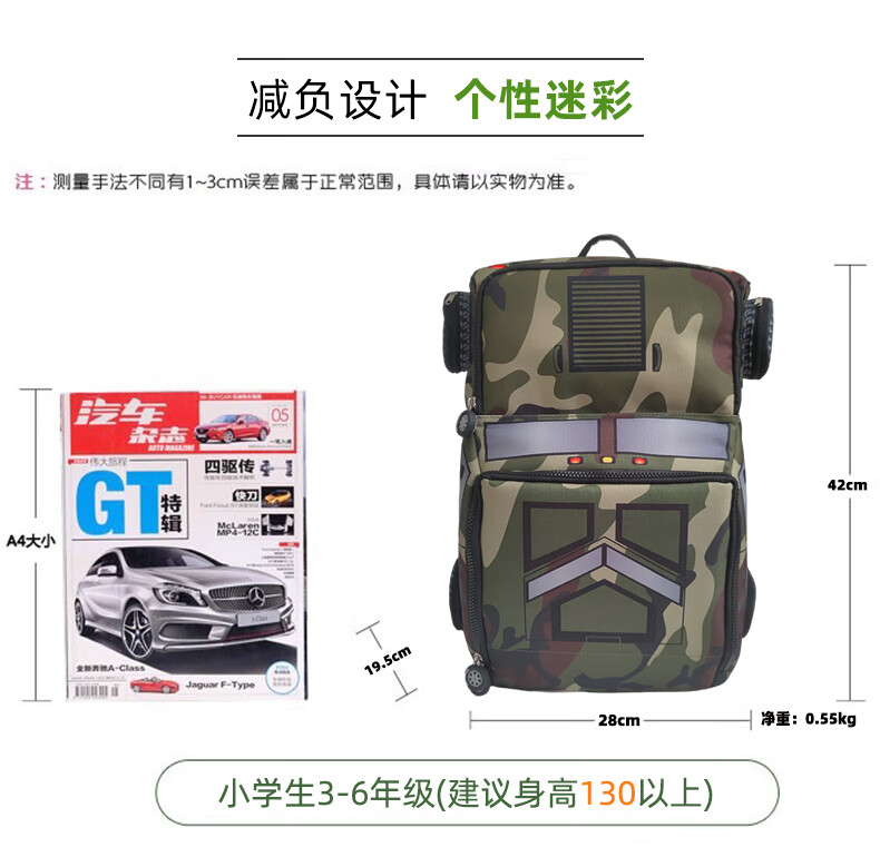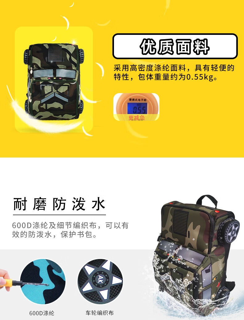包壹库小学生迷彩军车书包男孩3-4-5-6年级汽车坦克背包大容量3-6年级 迷彩绿 小学生1-6年级