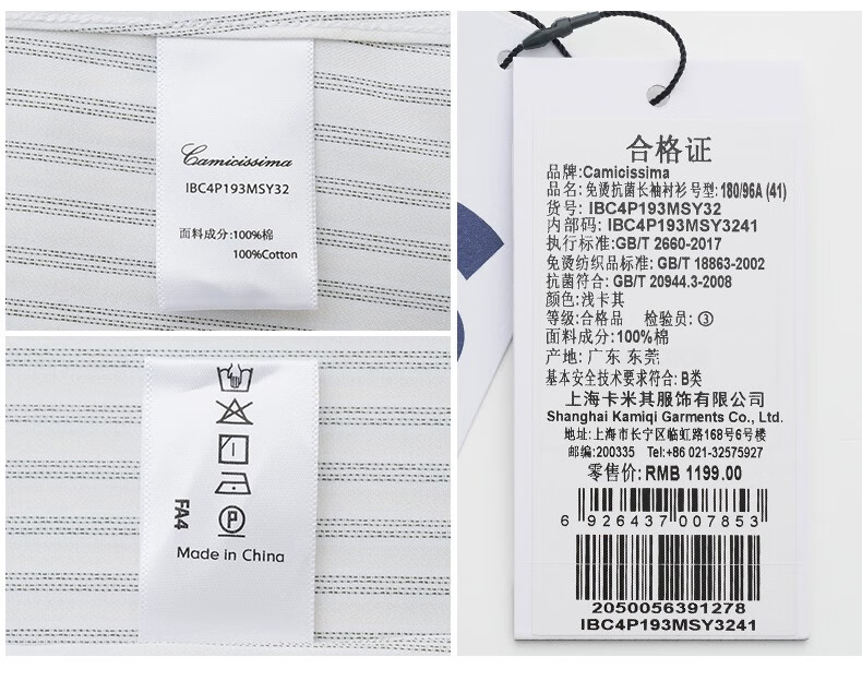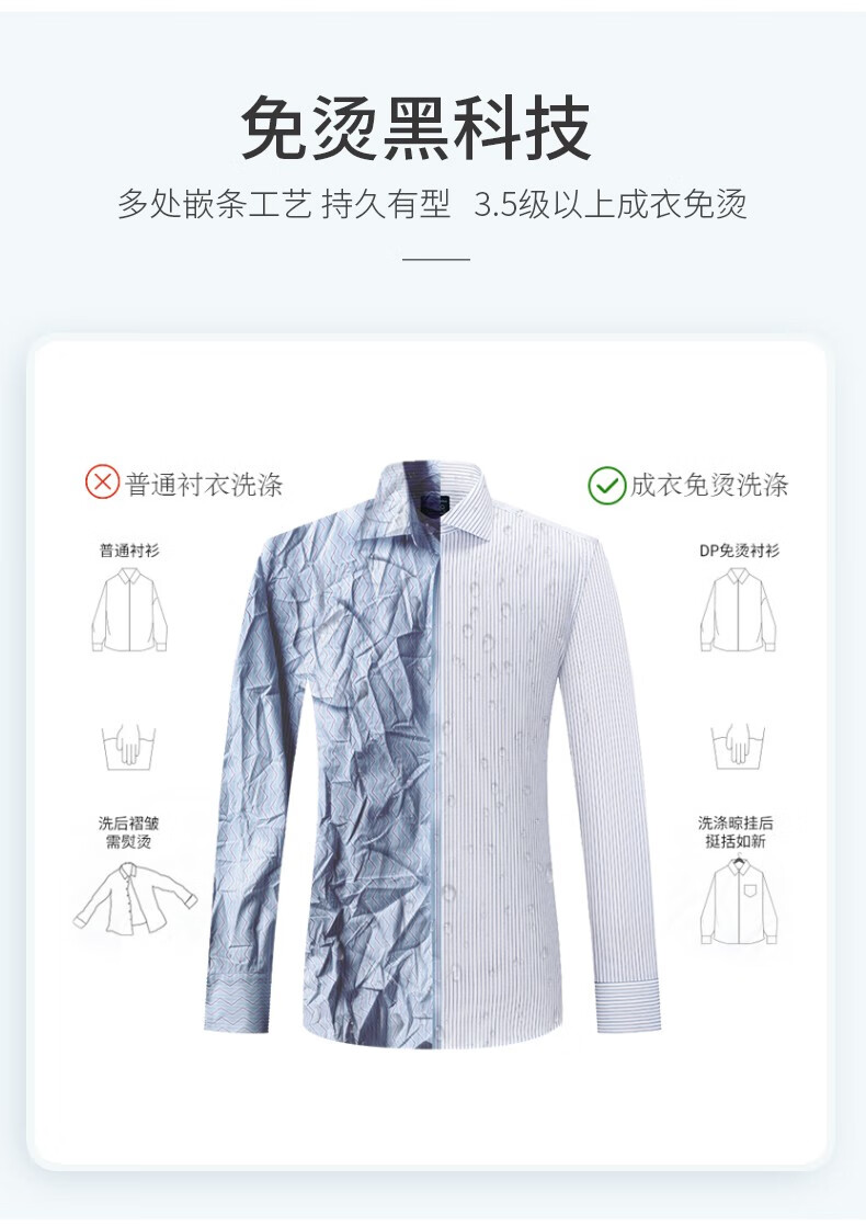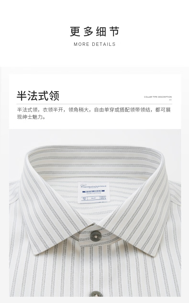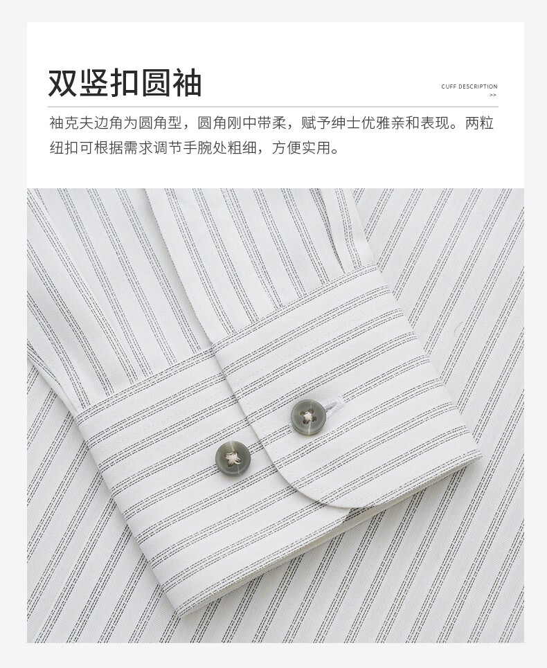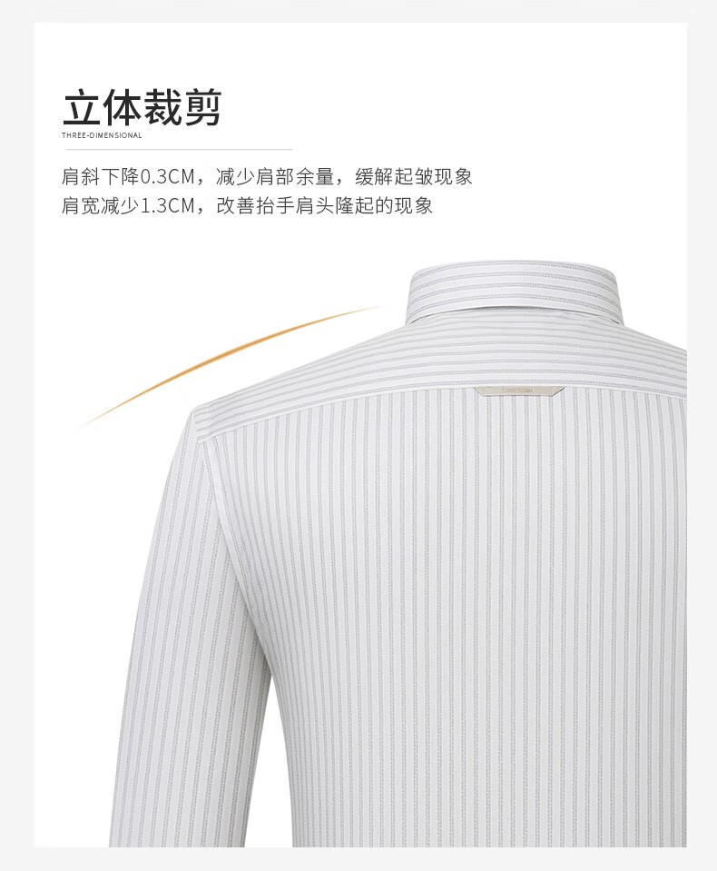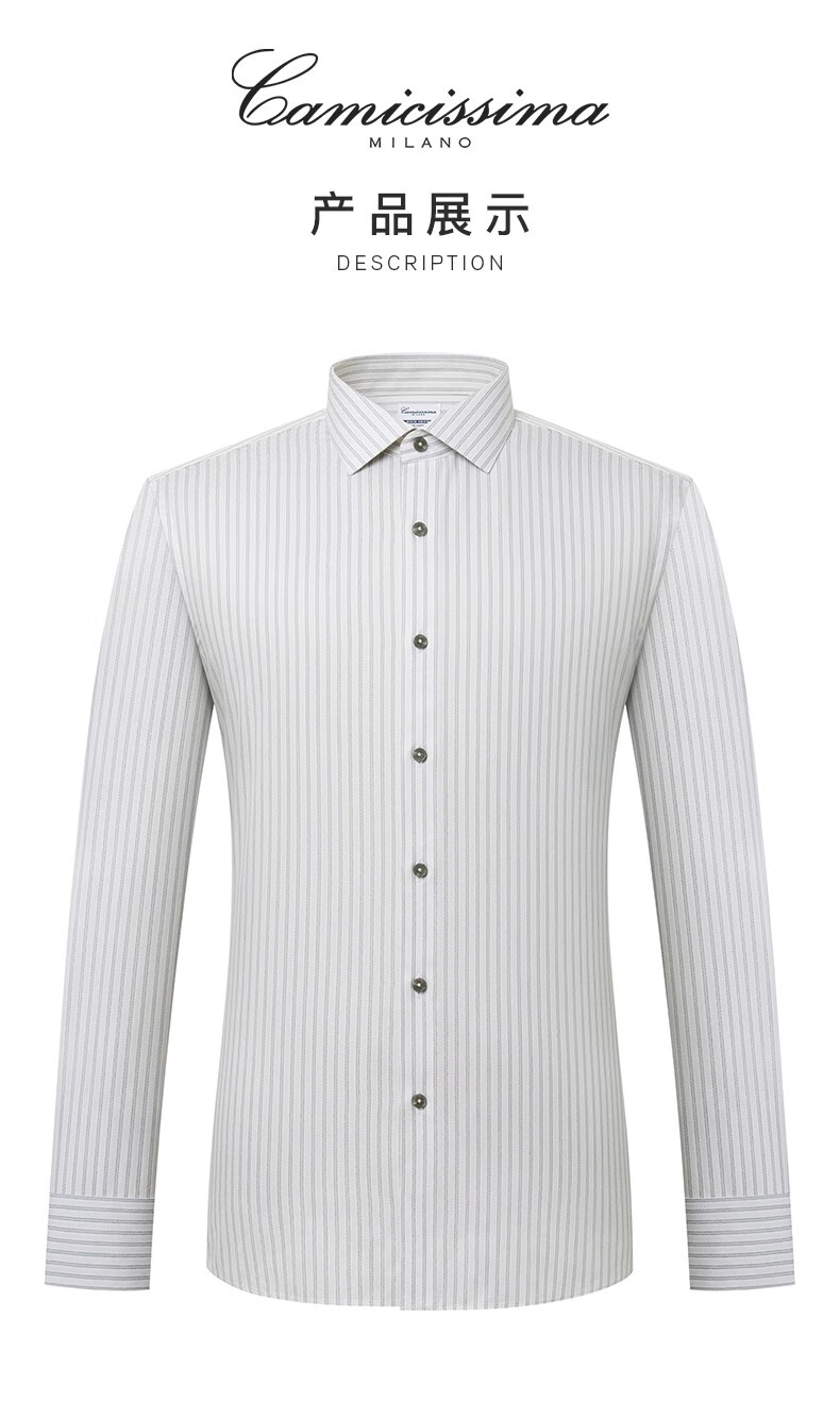 恺米切免烫抗菌长袖衬衫浅卡其中条纹纹修身型男士衬衫 浅卡其 42