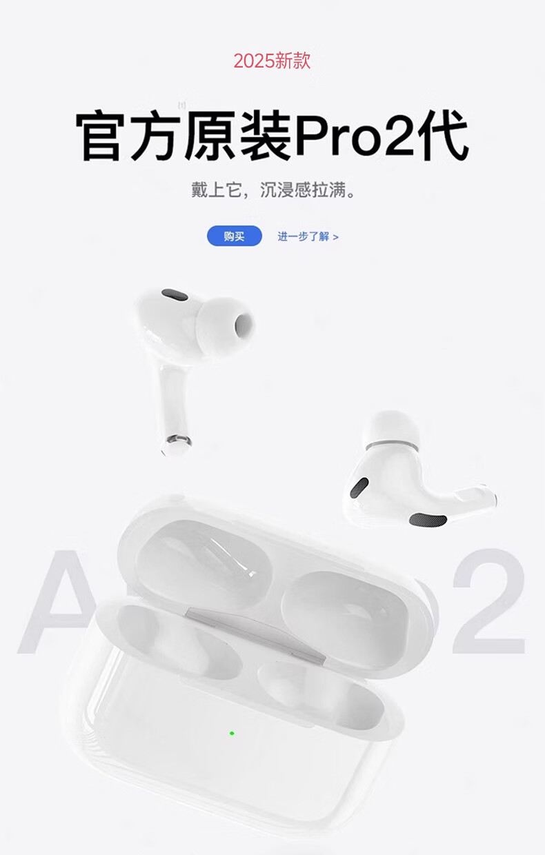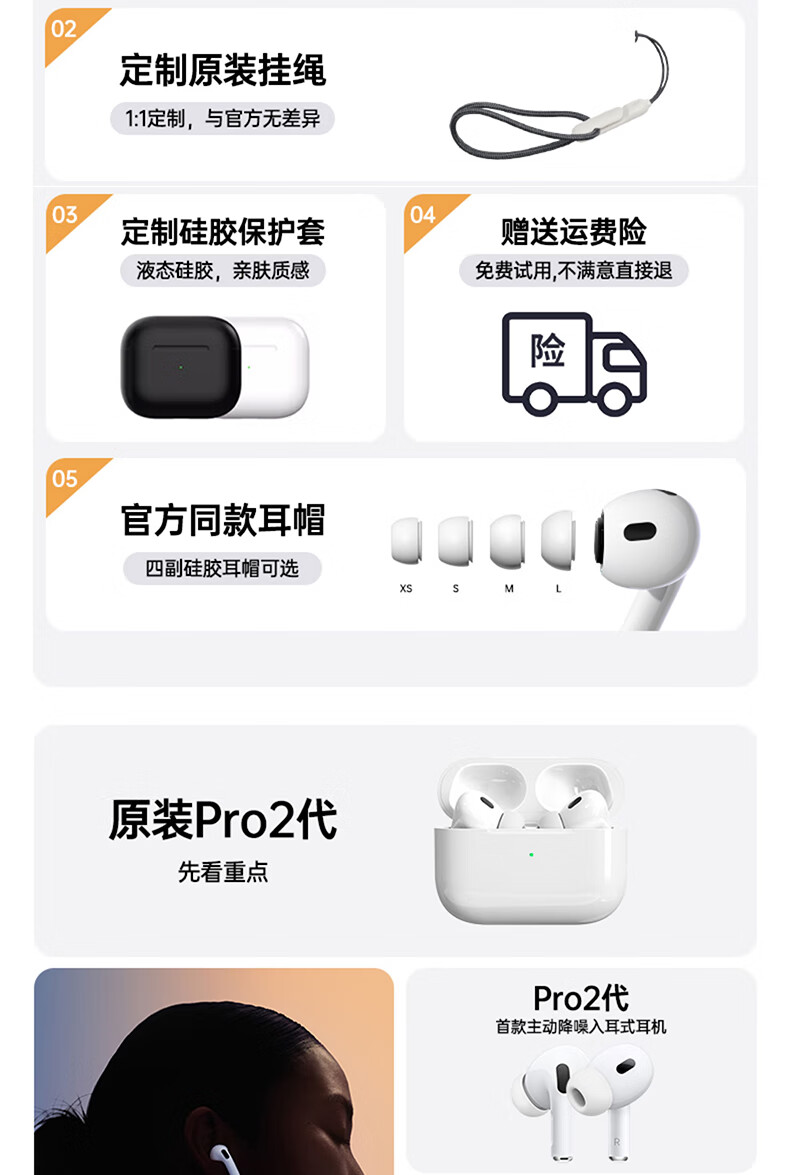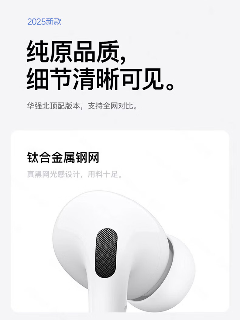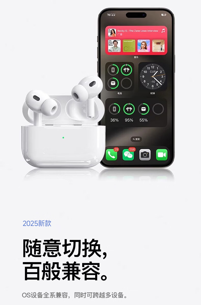 米黛蕾华强北蓝牙耳机2025新款主动降噪真无线苹果无线Pro2工厂直营 【纯原版Pro2代】 ANC主动降噪 空间音频 全功能