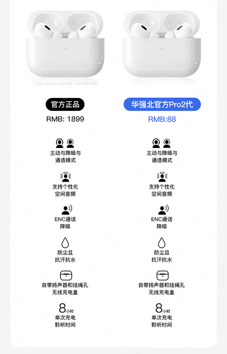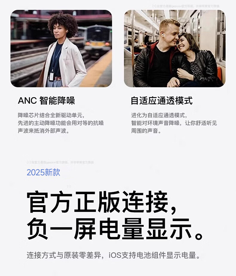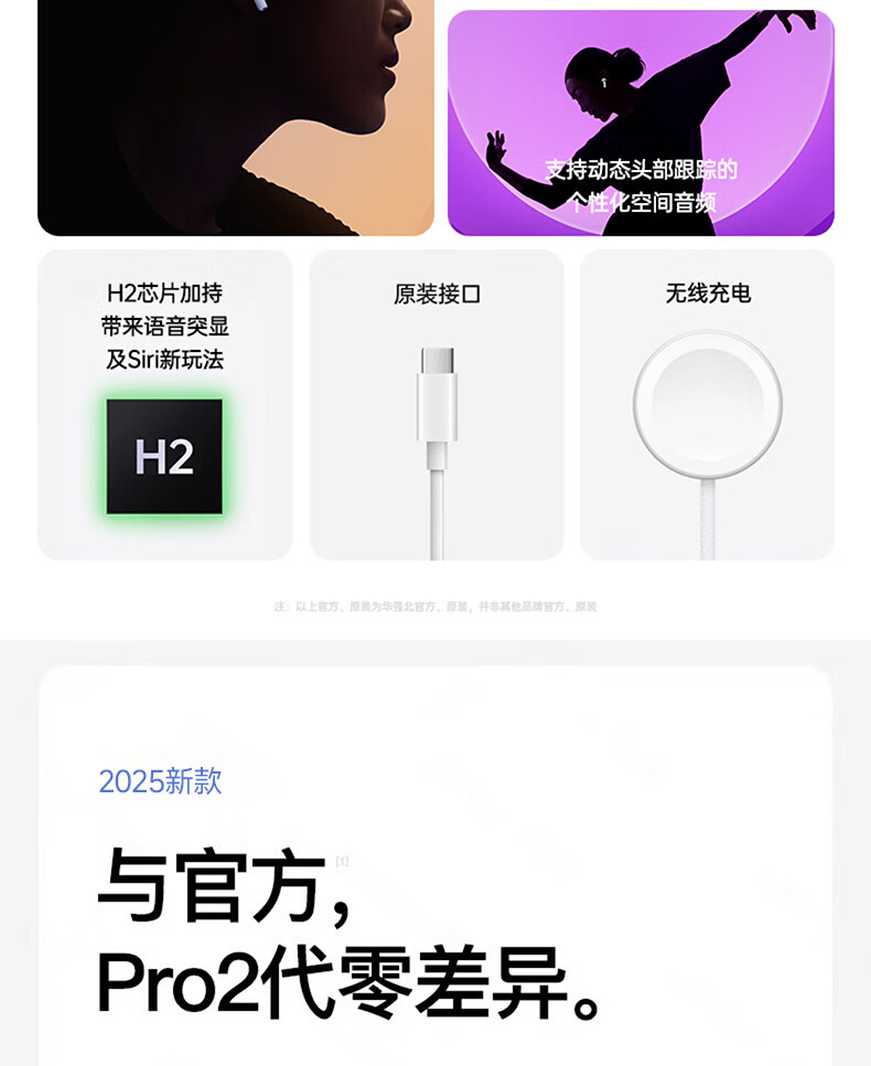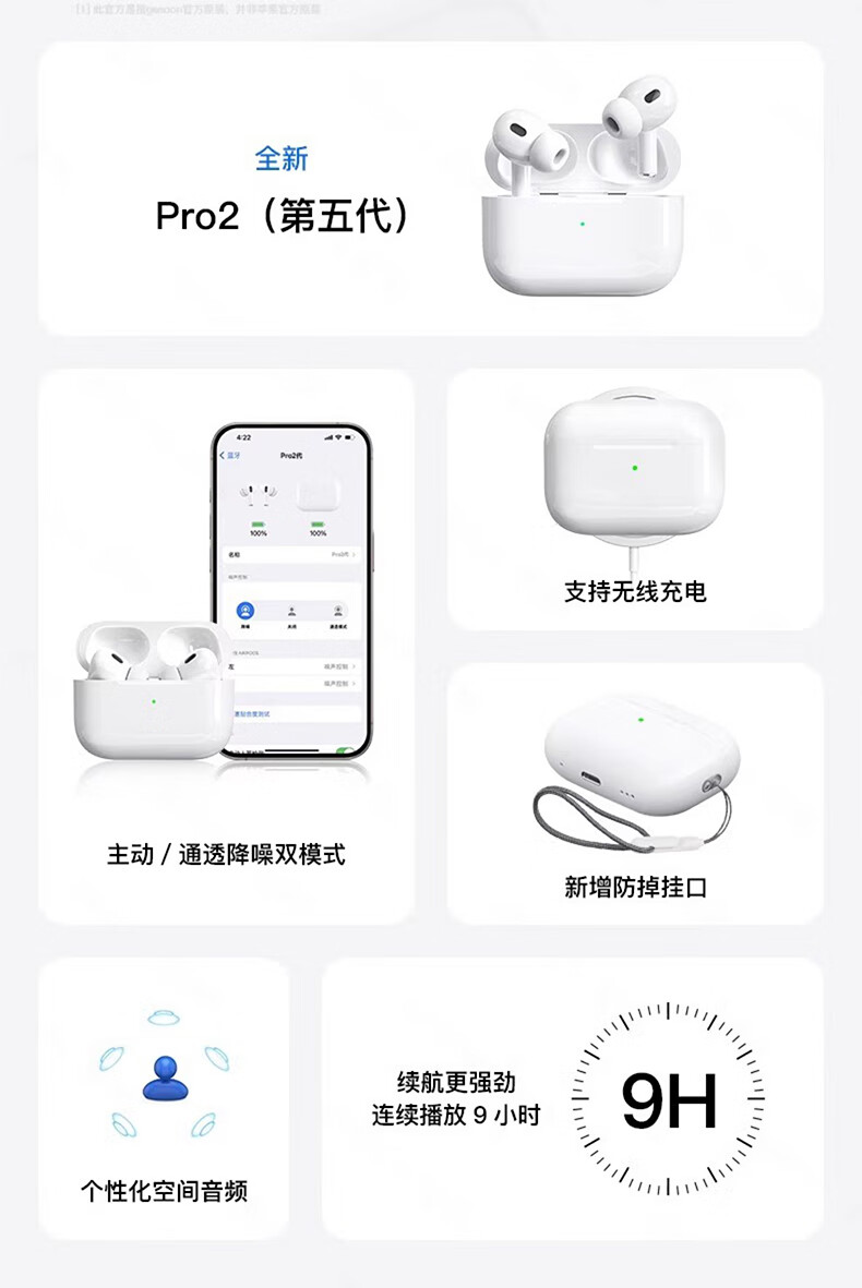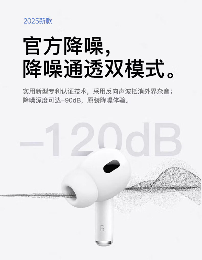 米黛蕾华强北蓝牙耳机2025新款主动降噪真无线苹果无线Pro2工厂直营 【纯原版Pro2代】 ANC主动降噪 空间音频 全功能