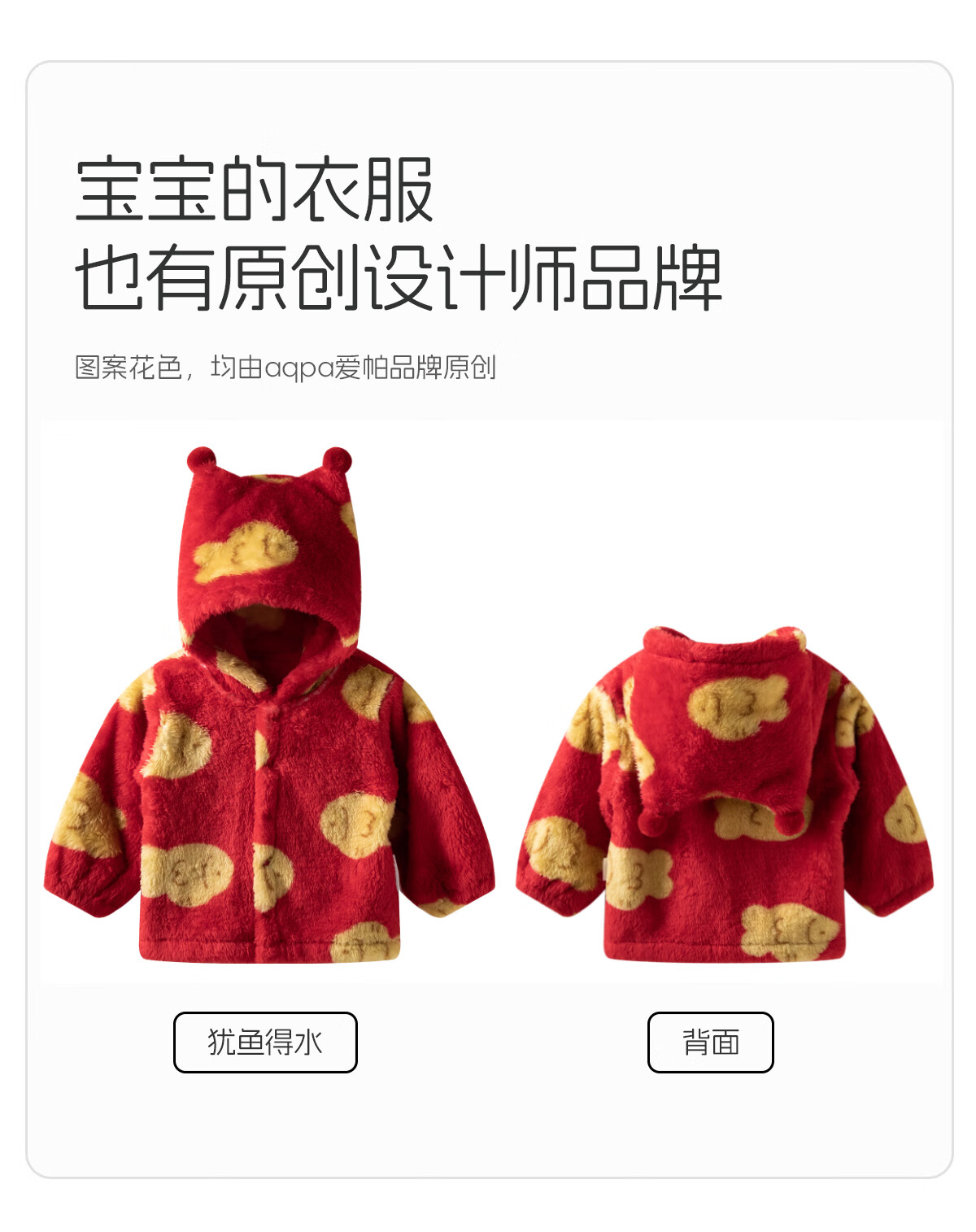 aqpa儿童婴幼儿宝宝外套新款秋冬保暖毛绒双面绒新年红色洋气外穿 金鱼 110