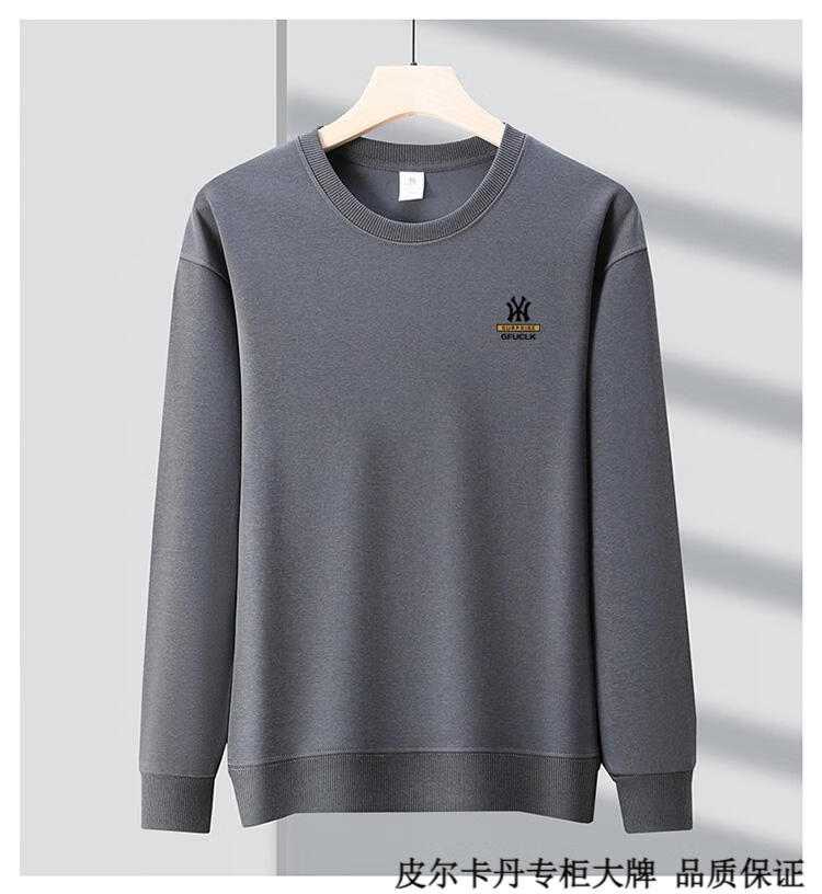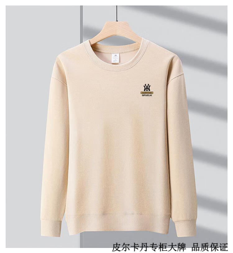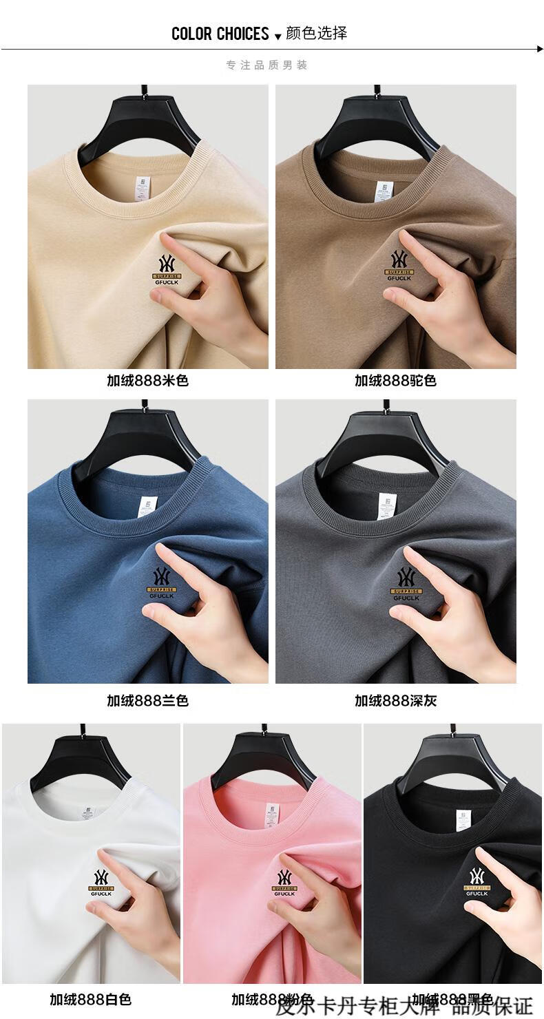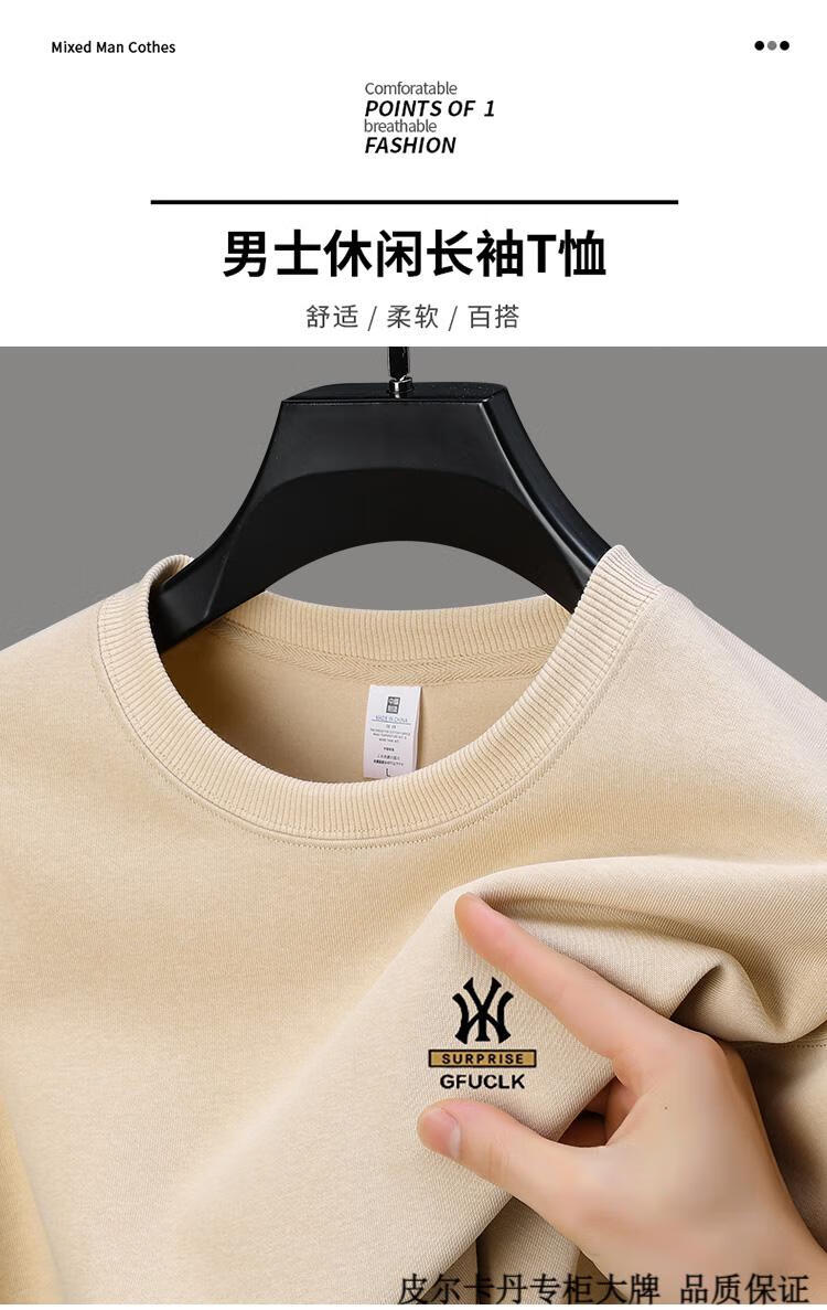 皮尔卡丹(pierre cardin)加绒加厚保暖纯棉卫衣男士新款圆领宽松长袖T恤男春秋冬款打底衫 加绒888-1米色 180/2XL150-165斤