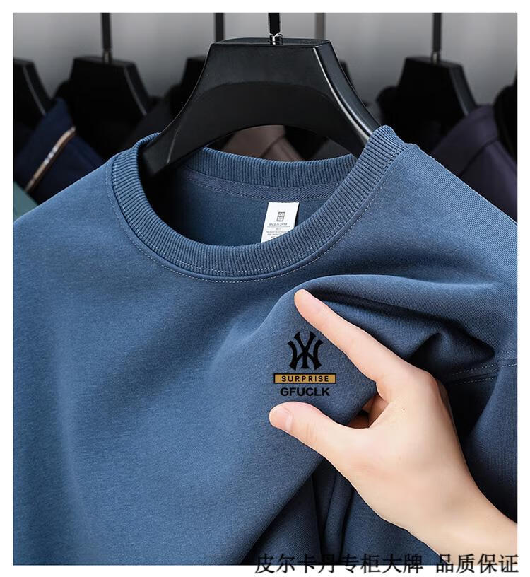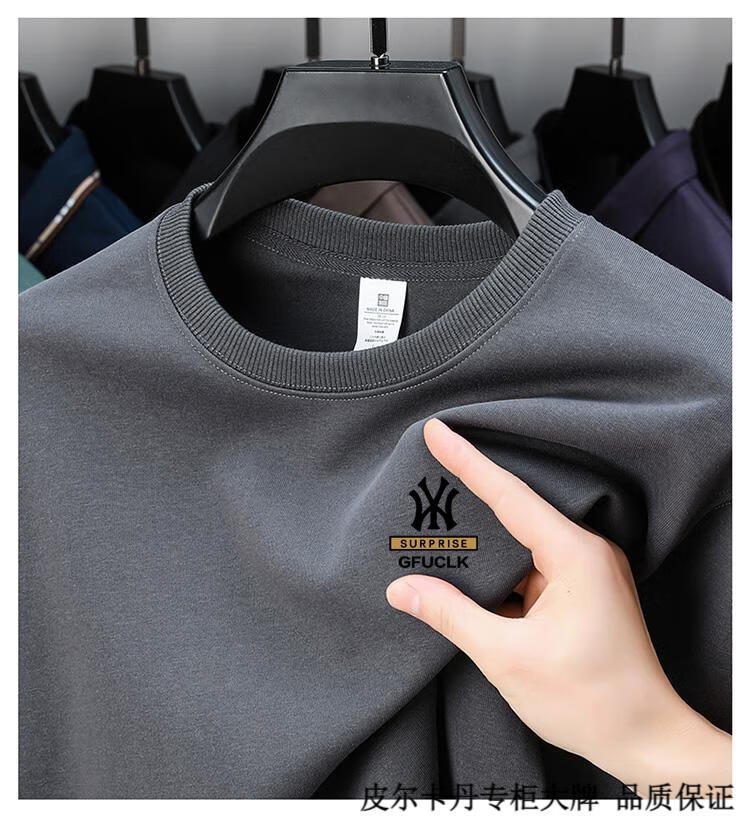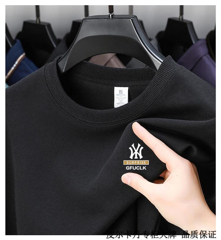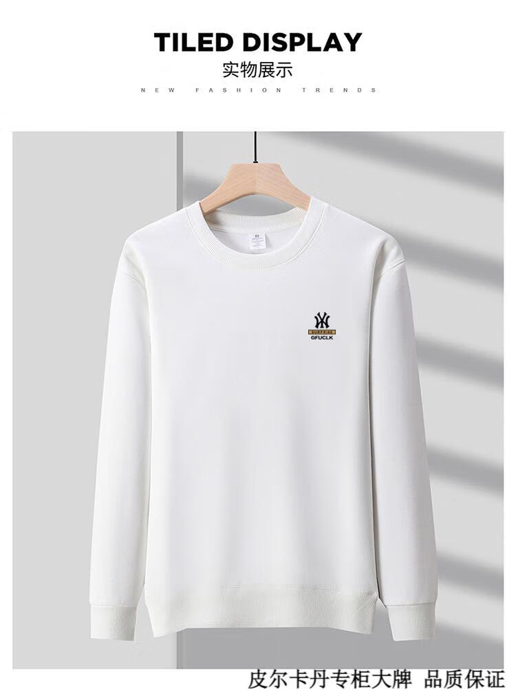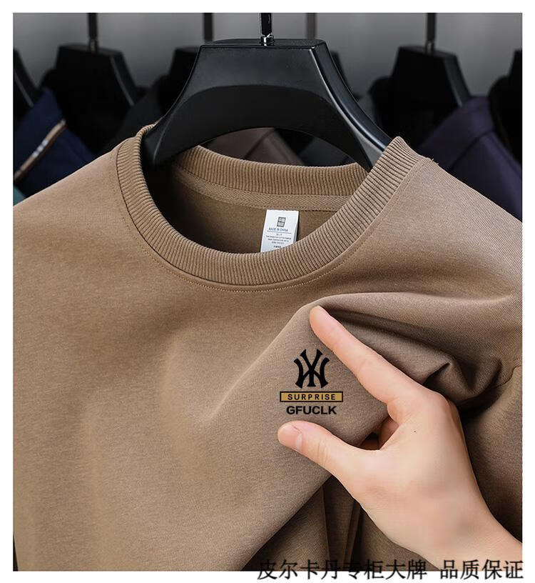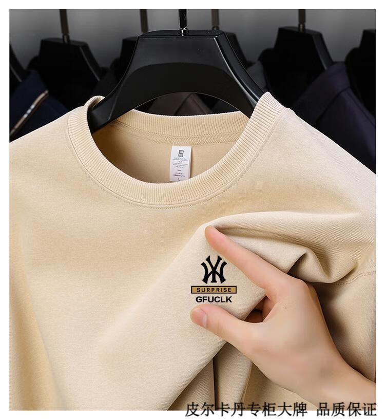 皮尔卡丹(pierre cardin)加绒加厚保暖纯棉卫衣男士新款圆领宽松长袖T恤男春秋冬款打底衫 加绒888-1米色 180/2XL150-165斤