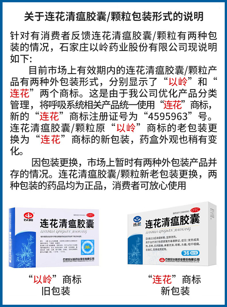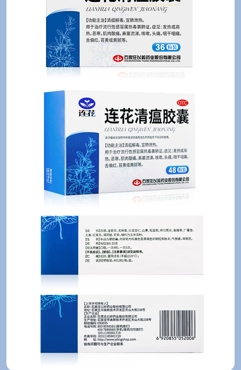 [连花(LIAN HUA)]连花清瘟胶囊 0.35g*48粒 1盒装 官方正品 感冒咳嗽大药房发货流行性感冒药