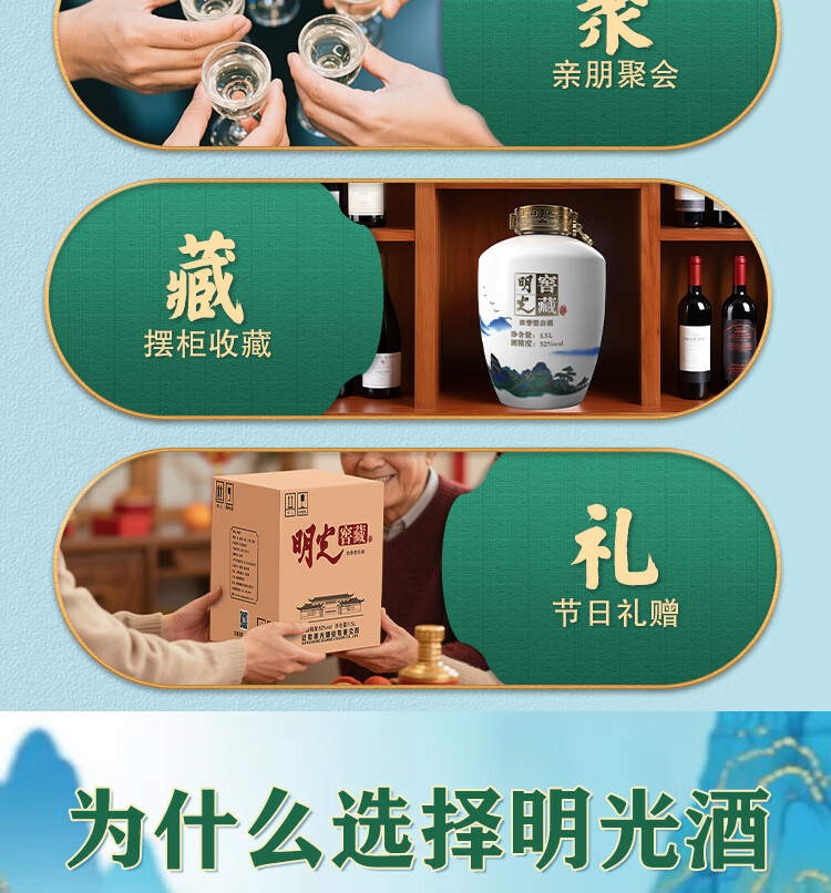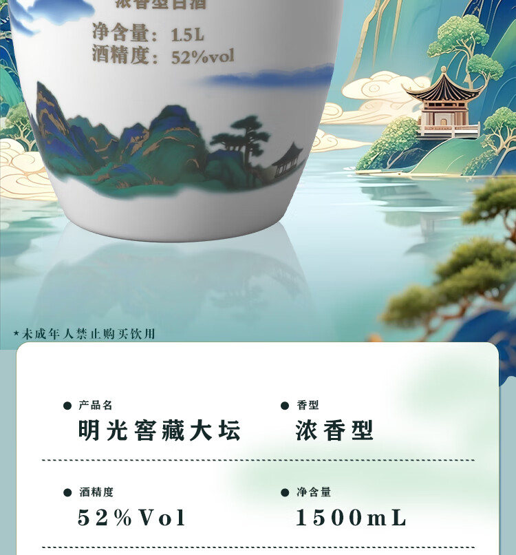 老明光【官方直营】52度1500ml 明光窖藏大坛 纯粮酿造送礼摆台坛装白酒 52%vol 1.5L 2坛 ·赠41.9°窖藏礼盒*1
