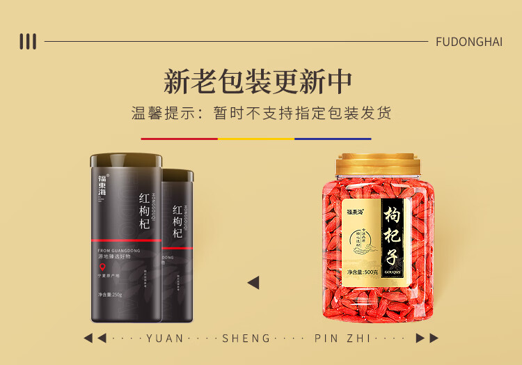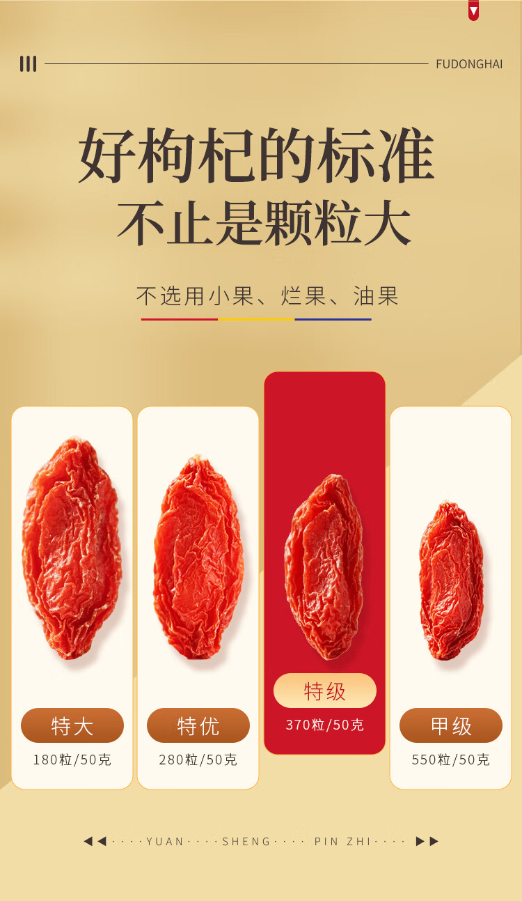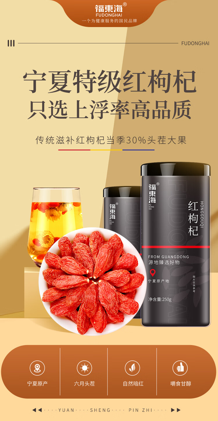 福东海 宁夏特级红枸杞子500g 头茬新货正宗中宁免洗苟杞子茶泡水年货