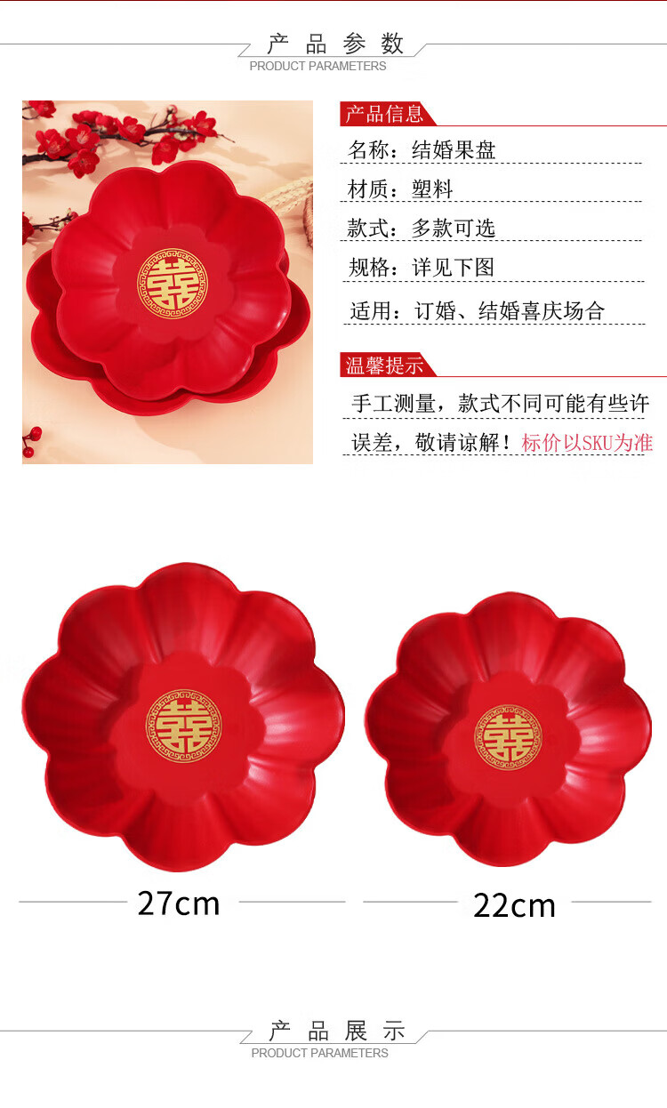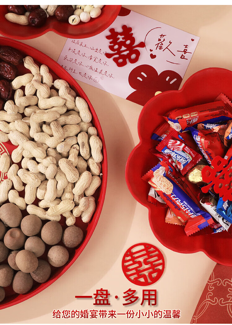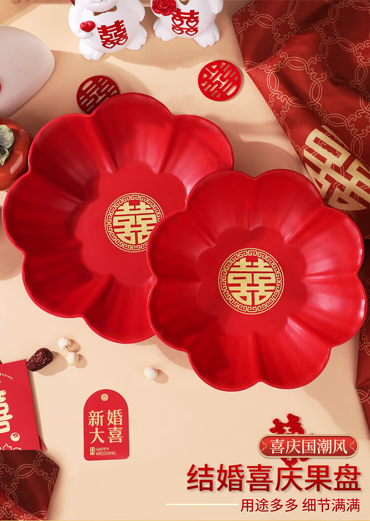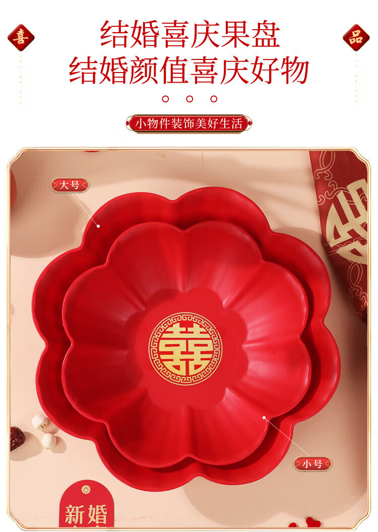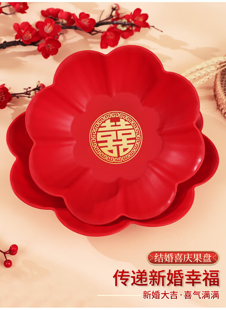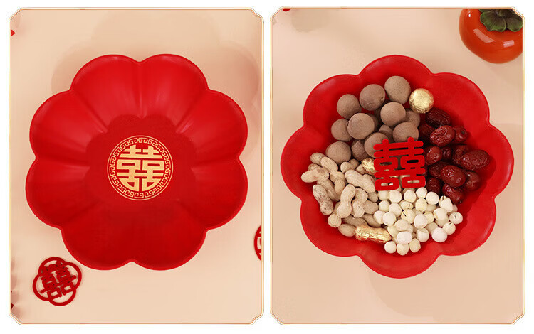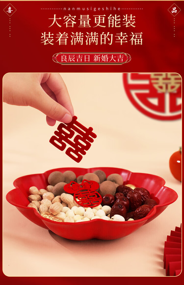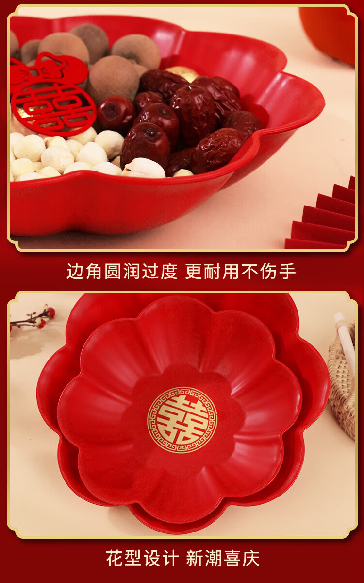 新年红干果盘家用客厅糖果盒带盖年货春节坚果瓜子零食水果收纳盒 花瓣果盘1个(22CM)