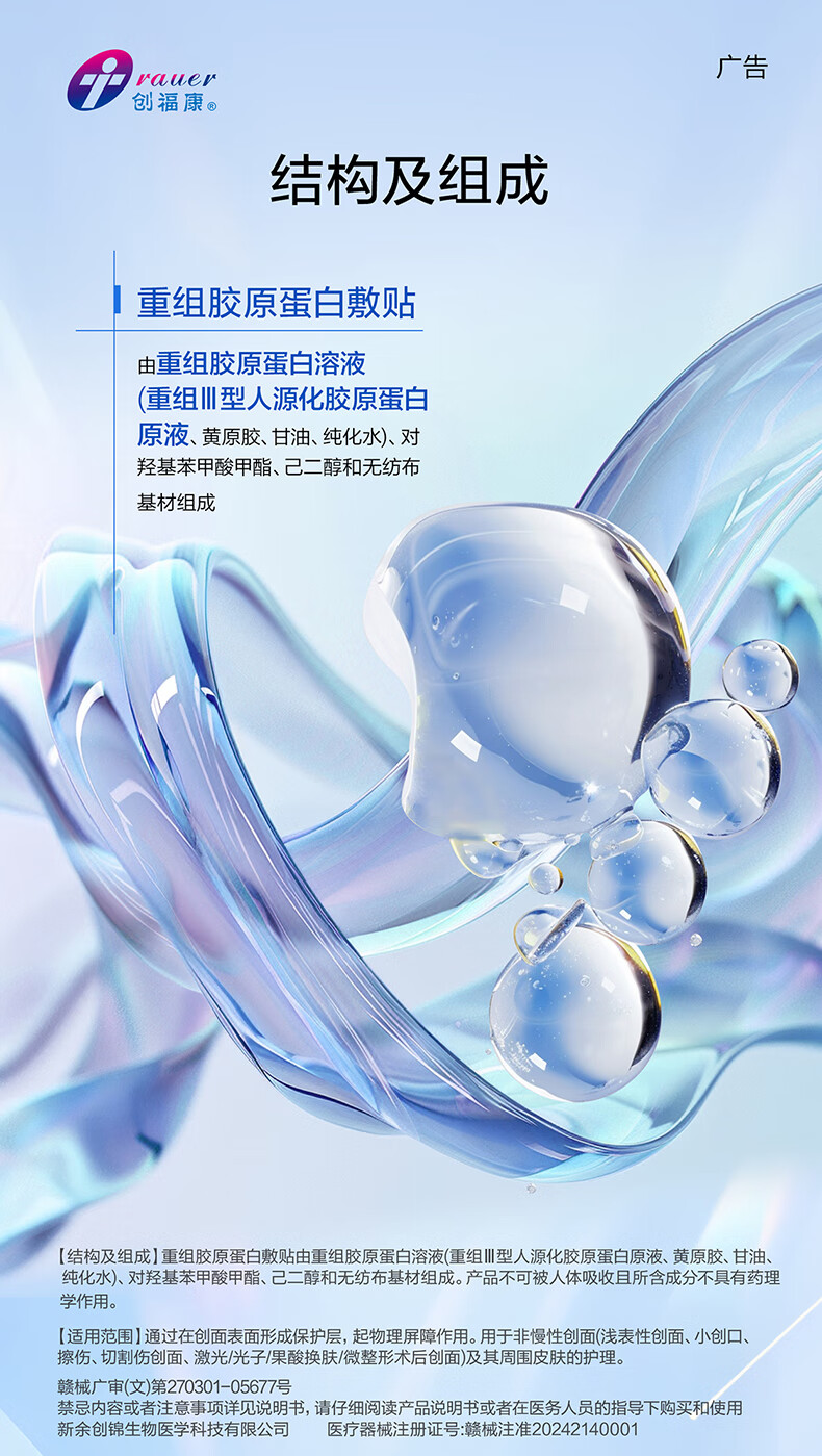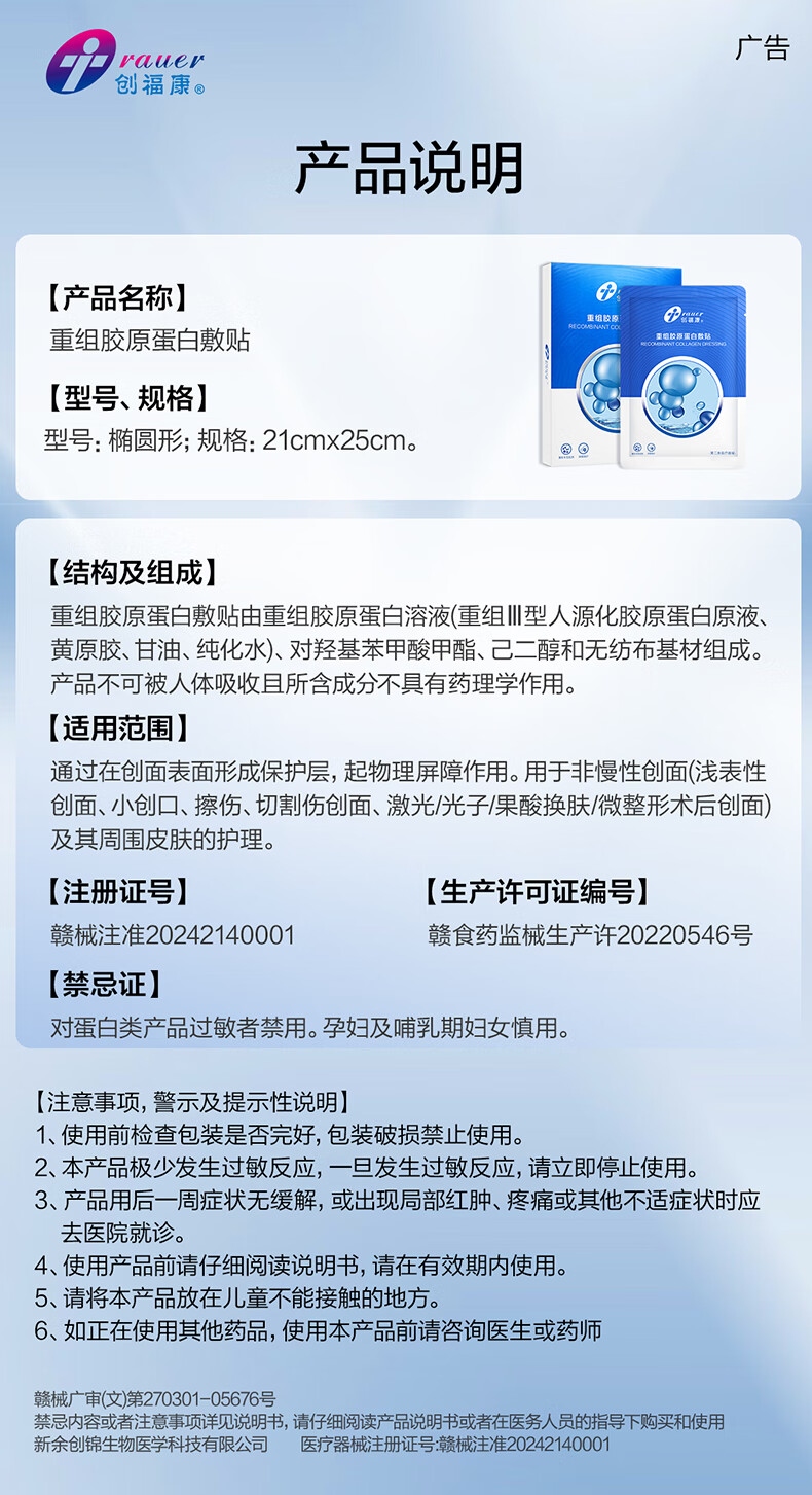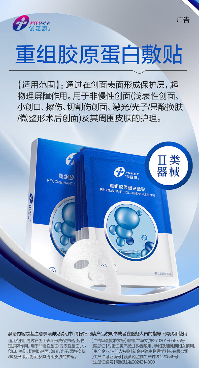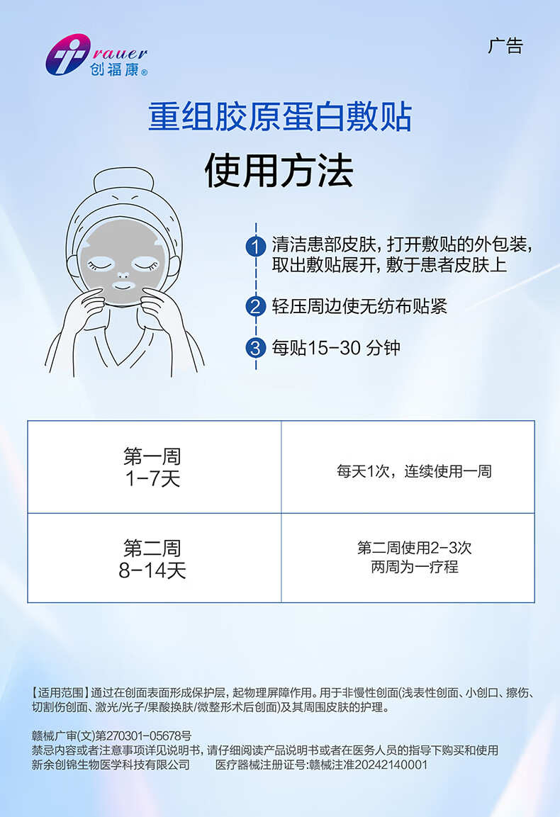 创福康重组胶原蛋白敷贴单片体验装重组三型胶原激光光子果酸换肤