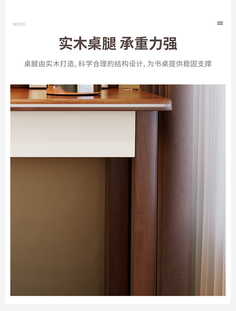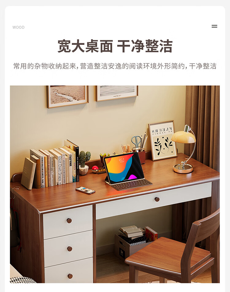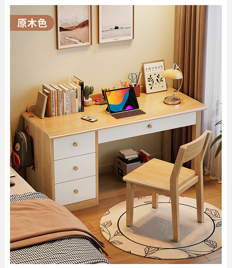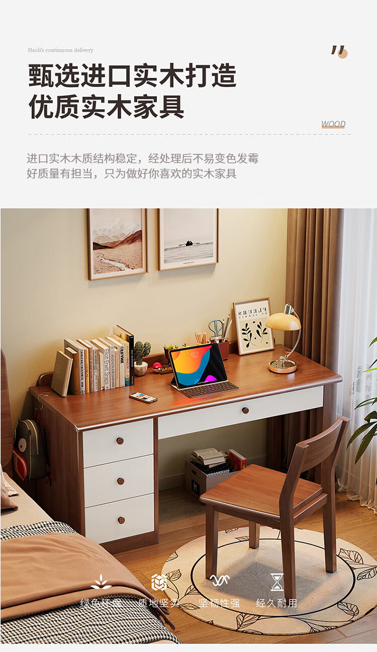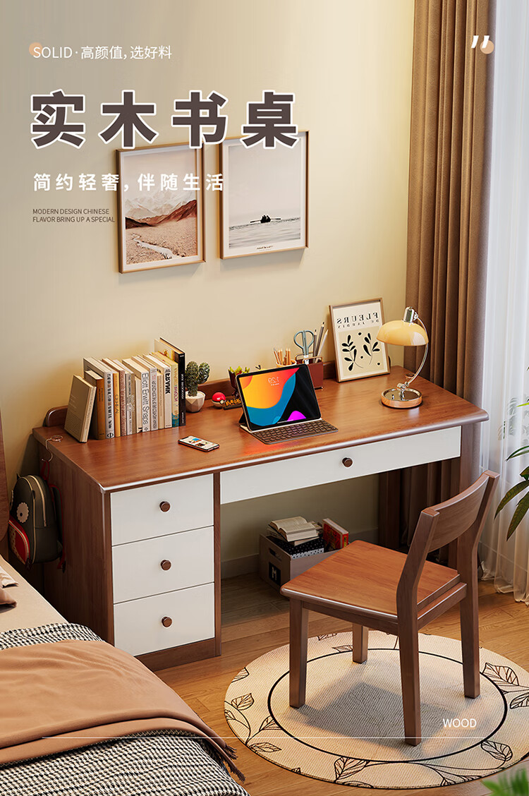 芈迪实木书桌电脑桌小户型简约学生学习桌家用卧室书房写字台办公桌子 胡桃色单桌 100*60*75cm