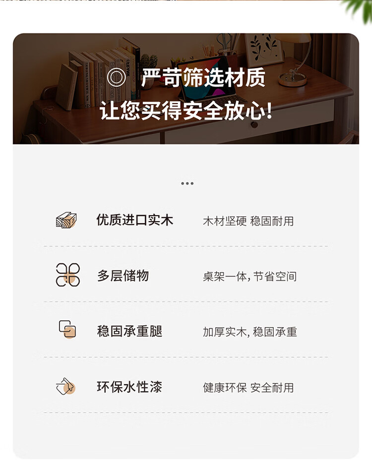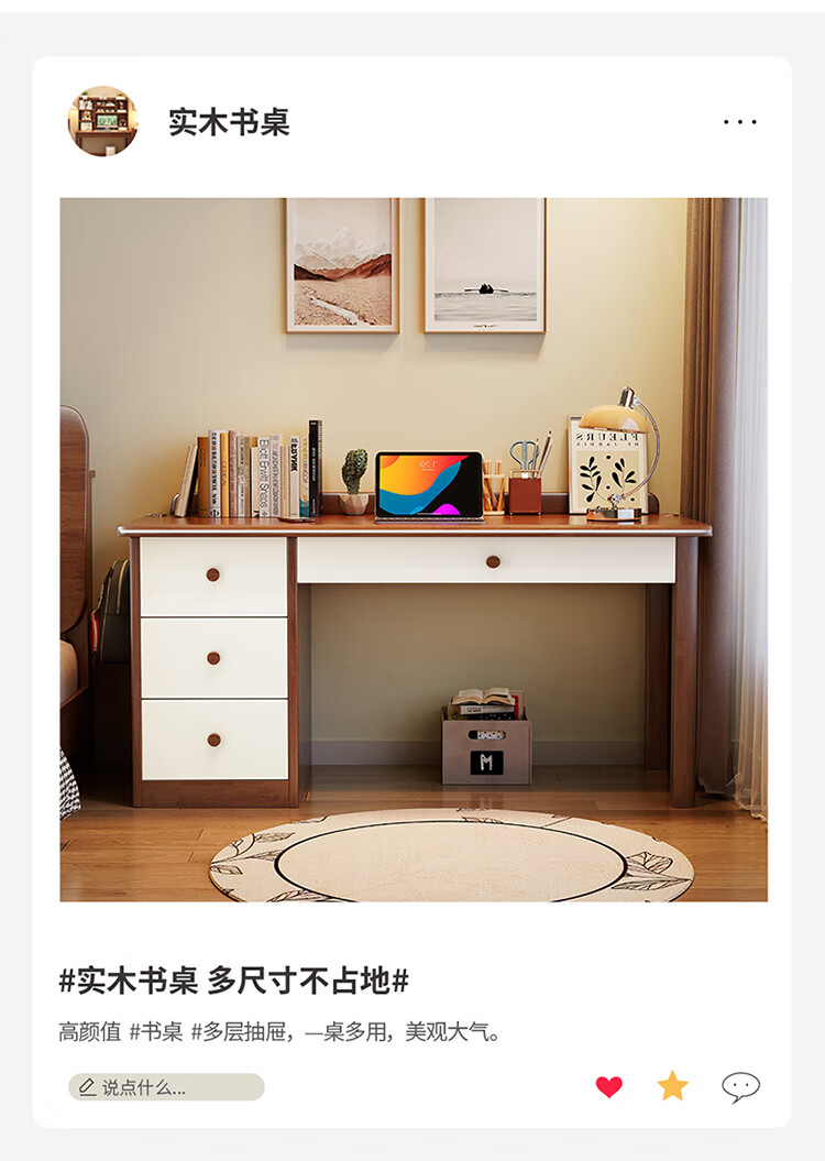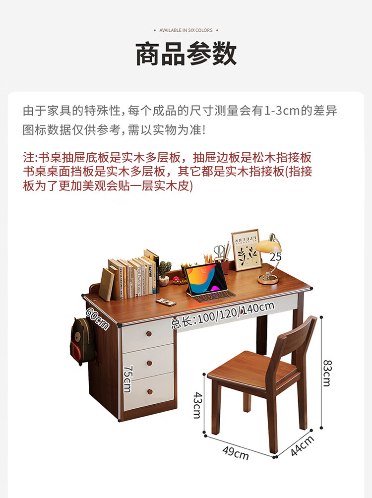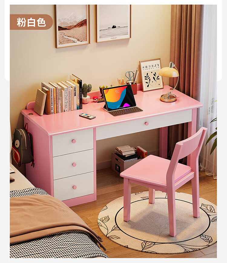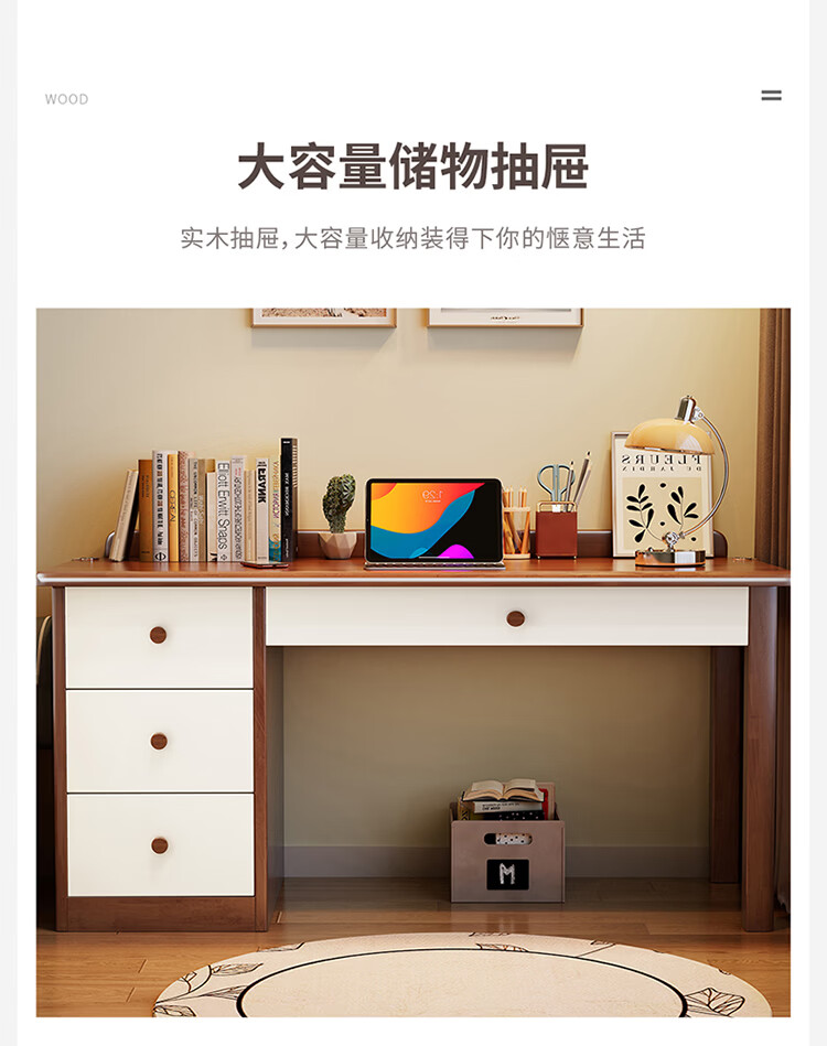 芈迪实木书桌电脑桌小户型简约学生学习桌家用卧室书房写字台办公桌子 胡桃色单桌 100*60*75cm
