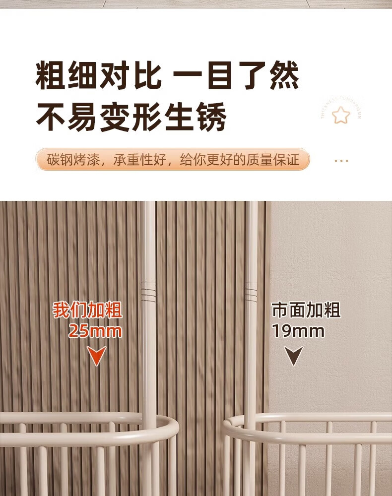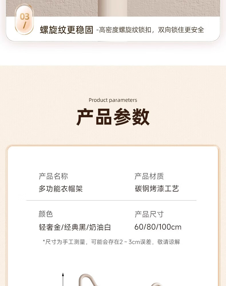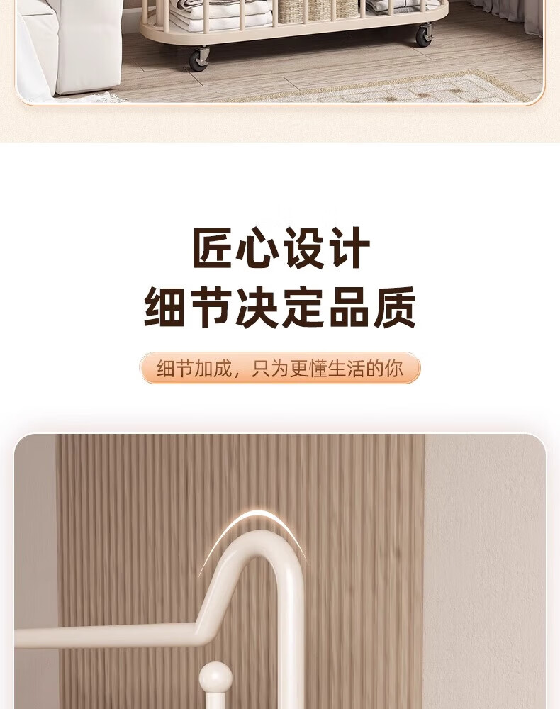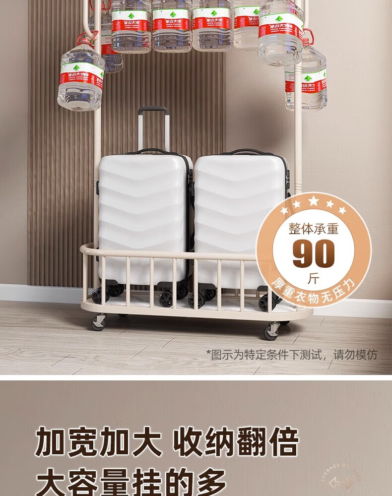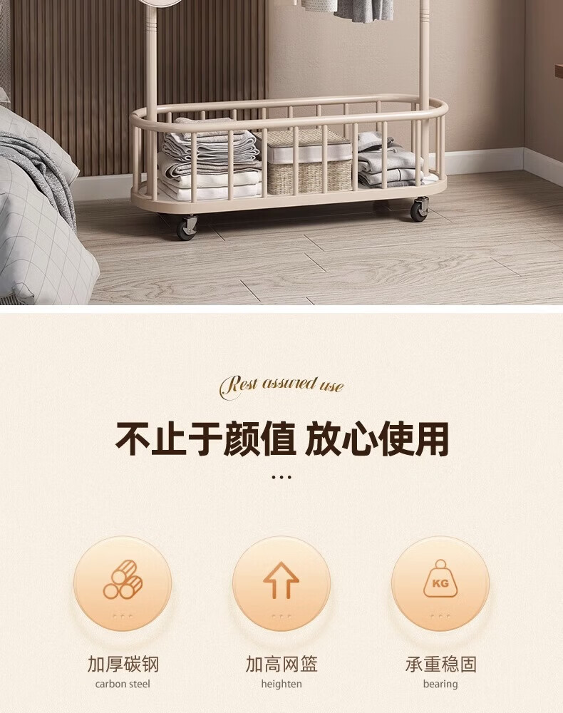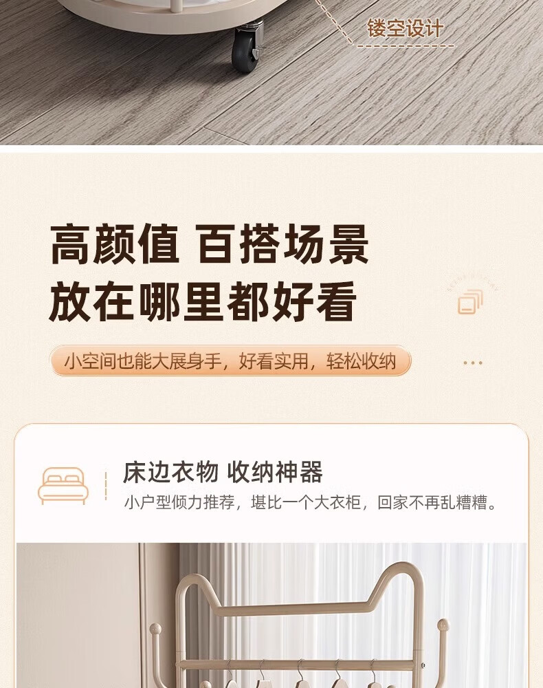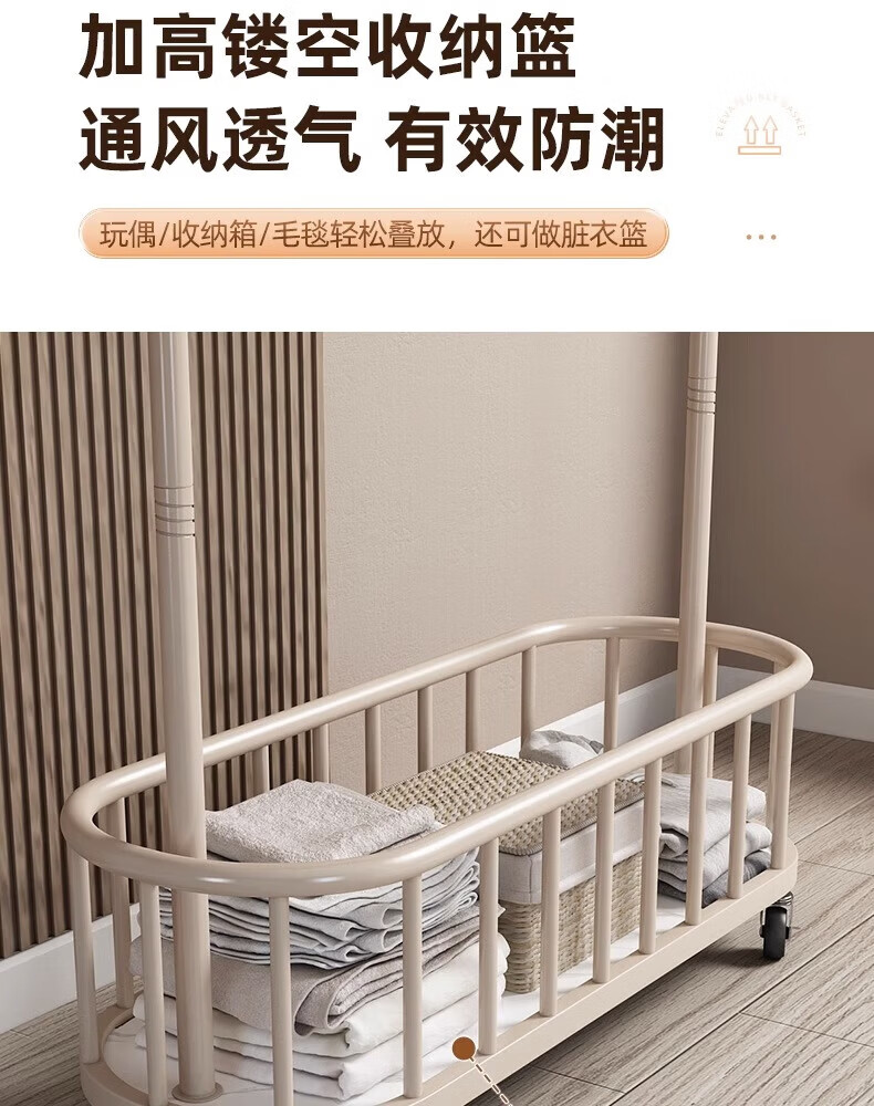 馨婺家加粗挂衣架落地卧室衣帽架多功能带轮移动晾衣服架房间收纳衣服架 猫耳朵 奶油白60cm