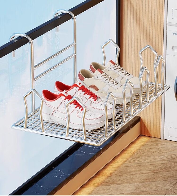 尔思家阳台晾鞋架多功能衣架晒鞋架窗户免打孔家用悬挂式专用晒鞋神器 银色一个装
