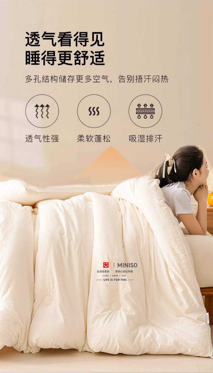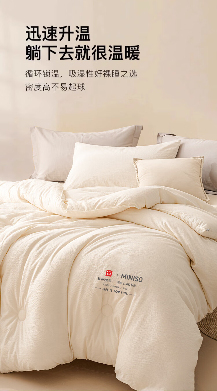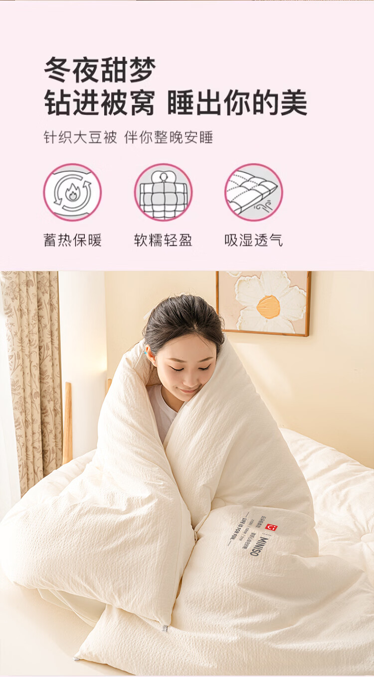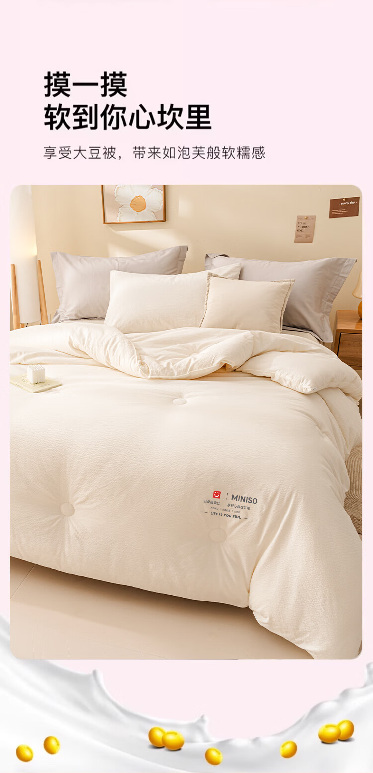 名创优品大豆被子棉被芯冬被 冬季加厚宿舍单双人被褥春秋被 miniso-白 春秋被150x200cm【整被约重4斤】