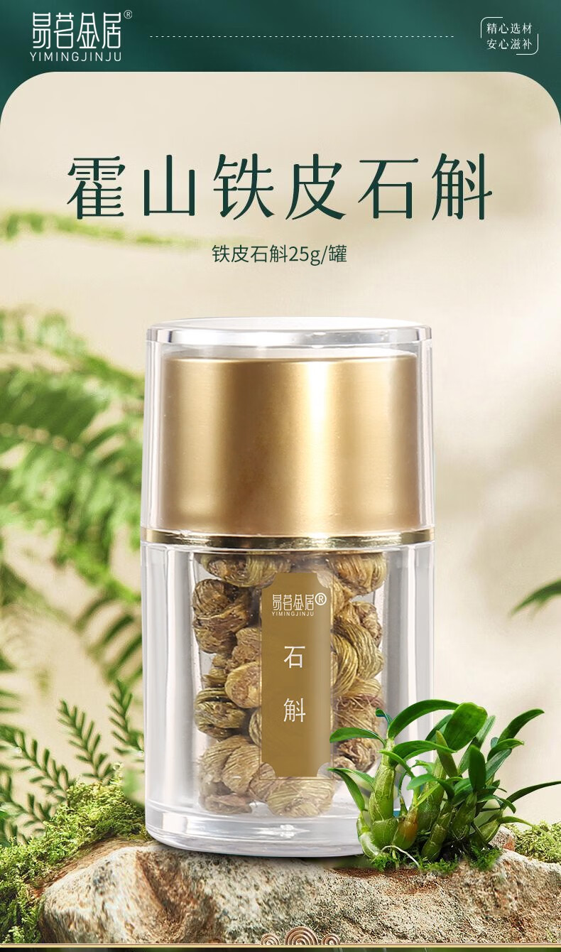 易茗金居 霍山铁皮石斛 胶质饱满 泡茶煲汤滋补品 特优 送礼 25g*1瓶