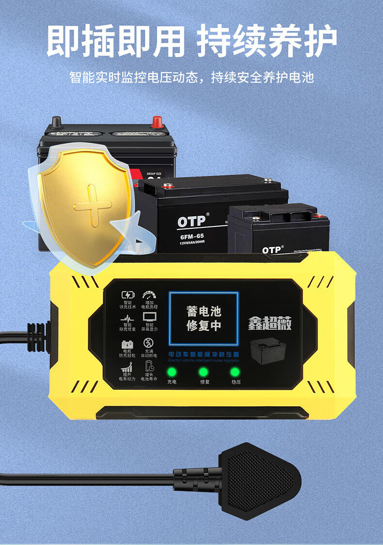 2025升级款电瓶修复神器二三轮电动车通用脉冲全自动延长电池寿命 至尊电瓶修复器【进口芯片】