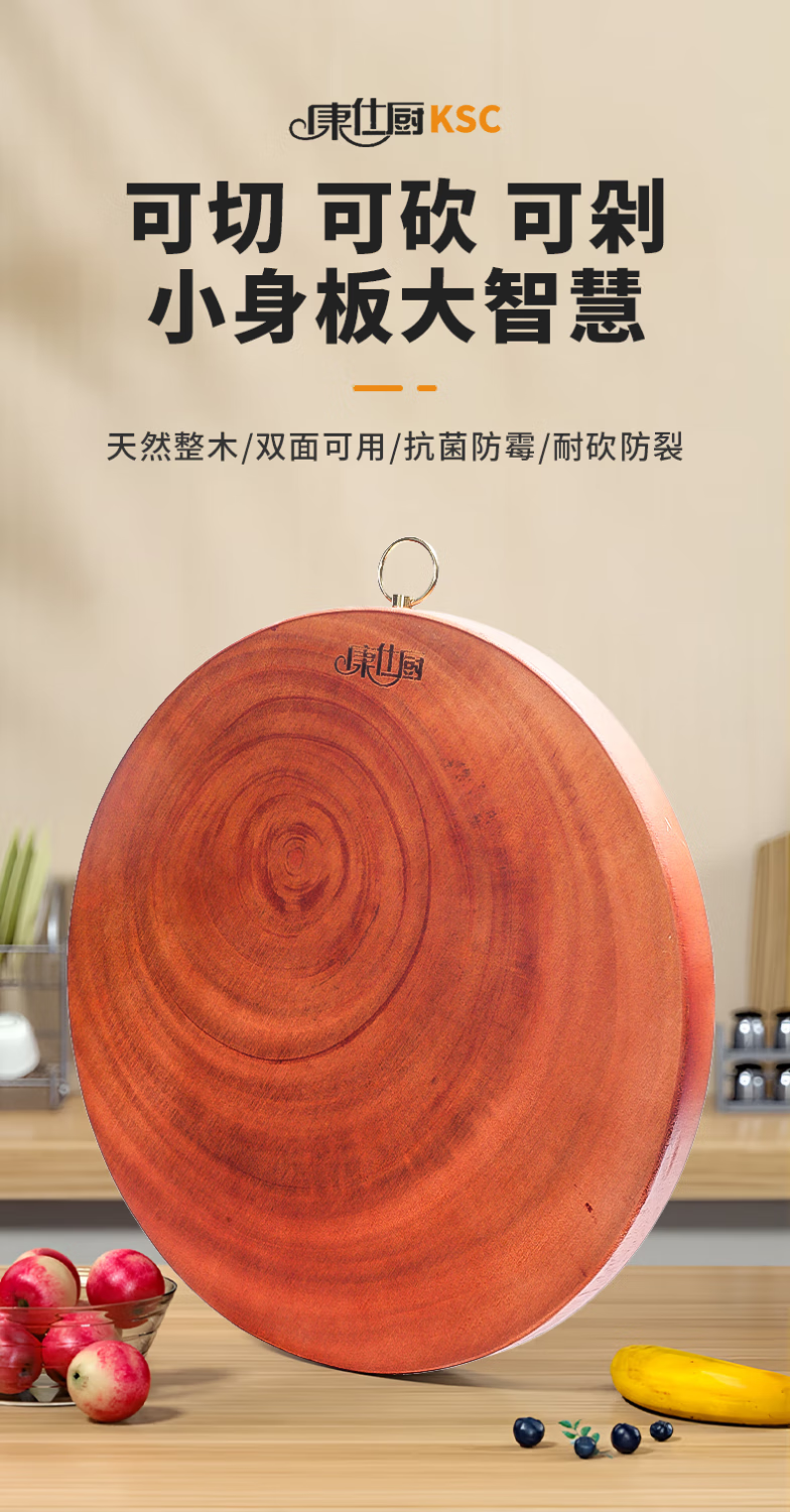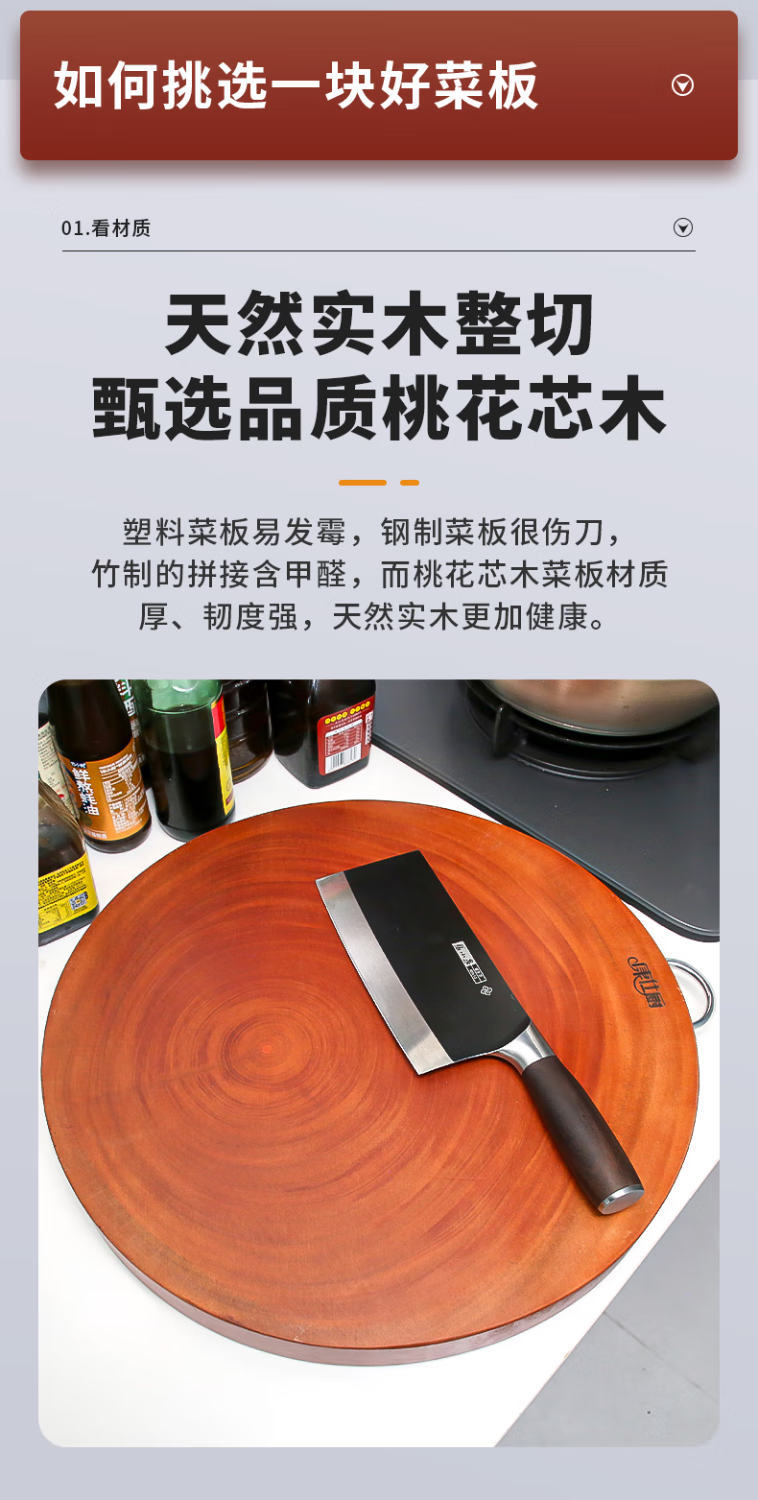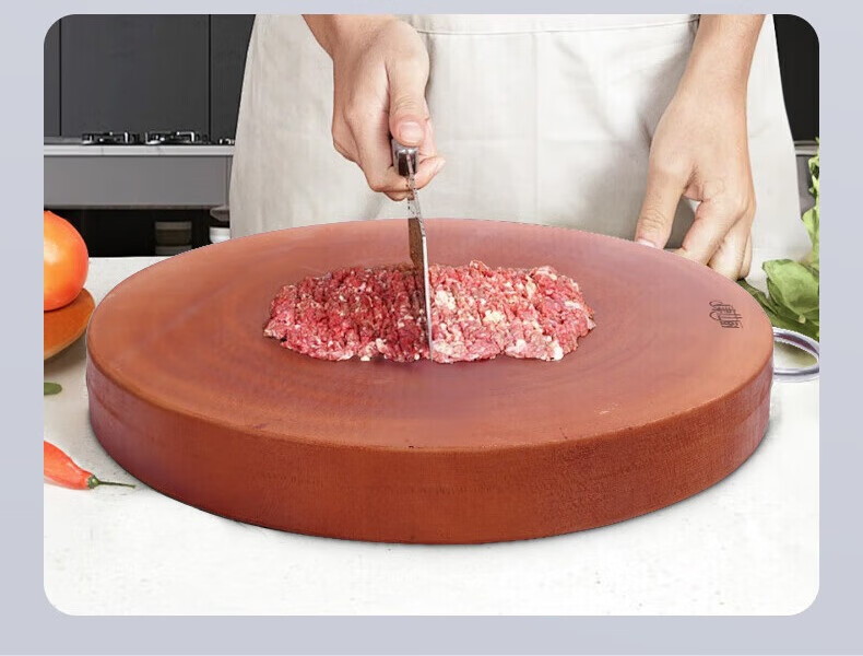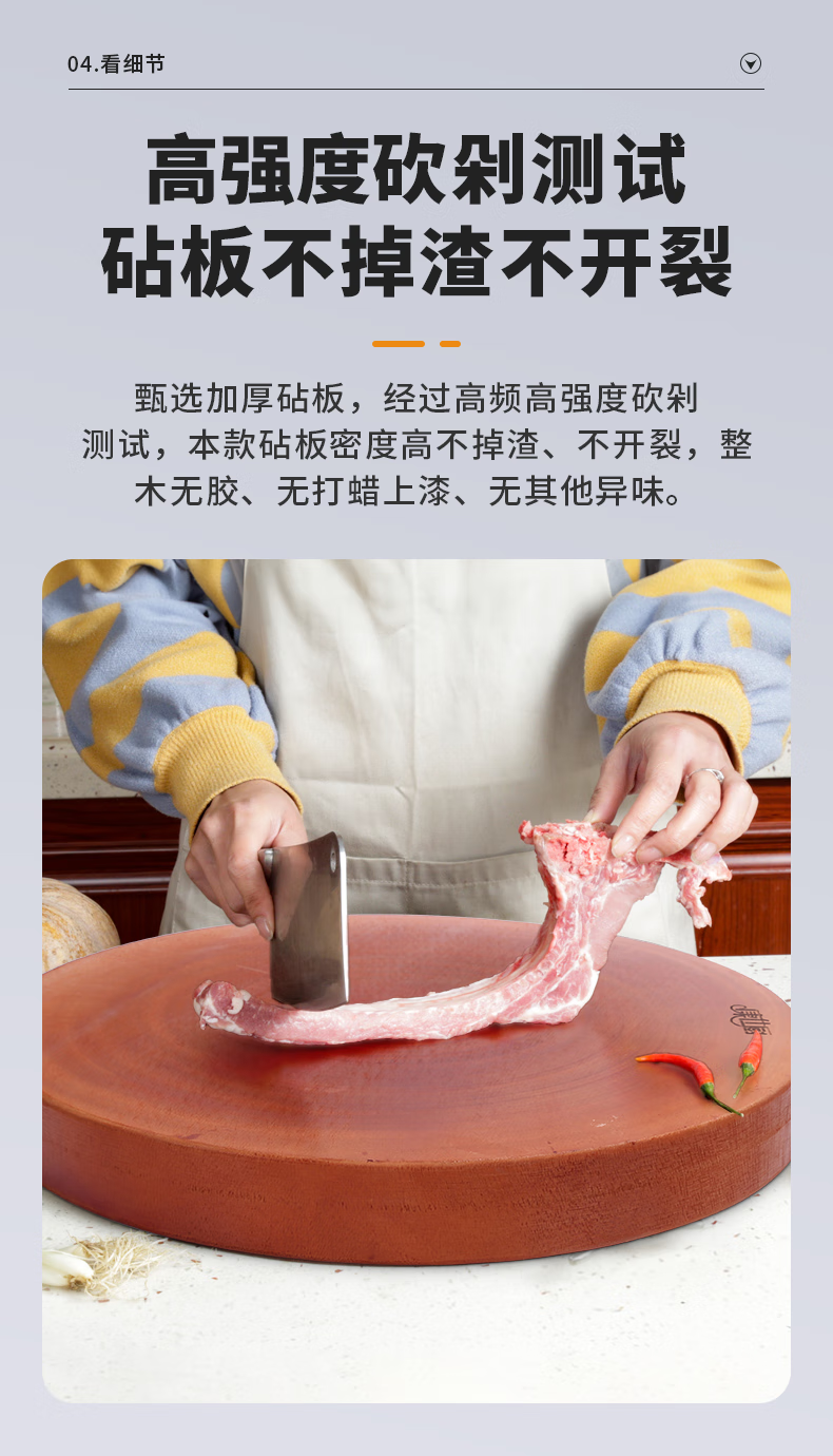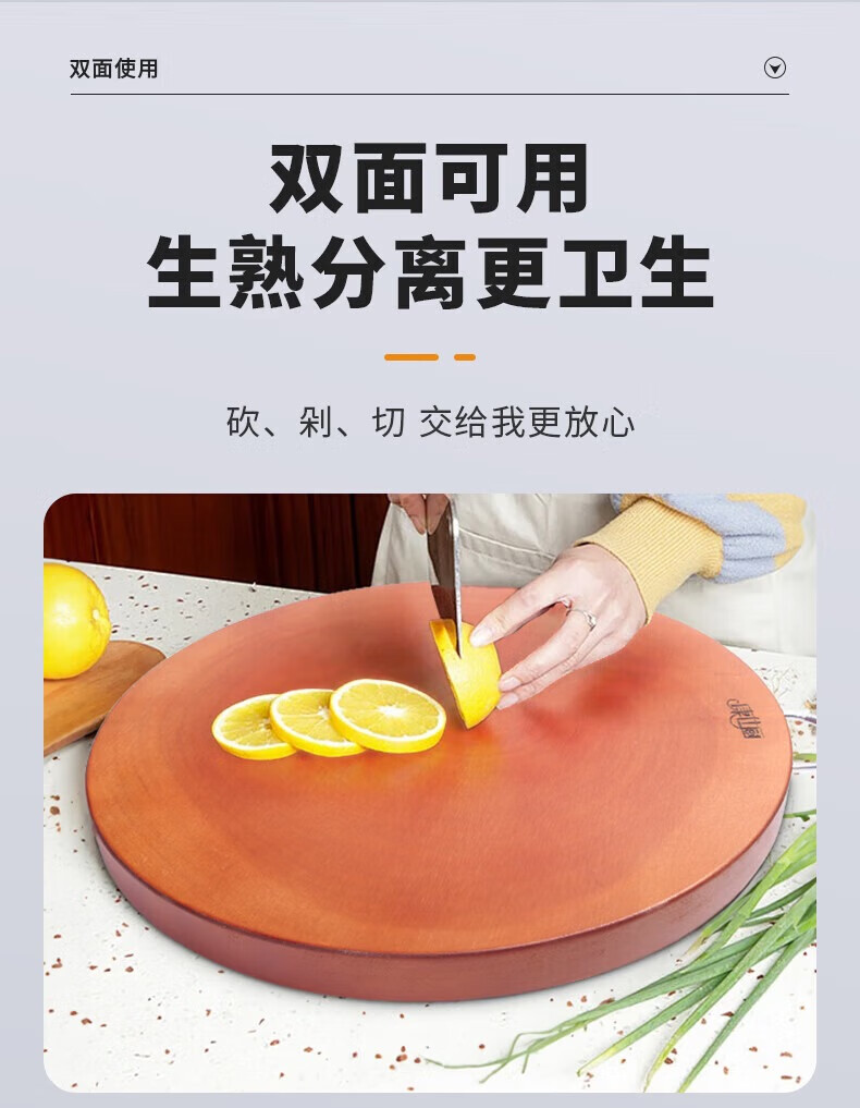 康仕厨越南桃花芯木菜板实木砧板整木圆形切菜板抗菌防霉案板刀板粘板 实木整切不拼接【42x4.0】