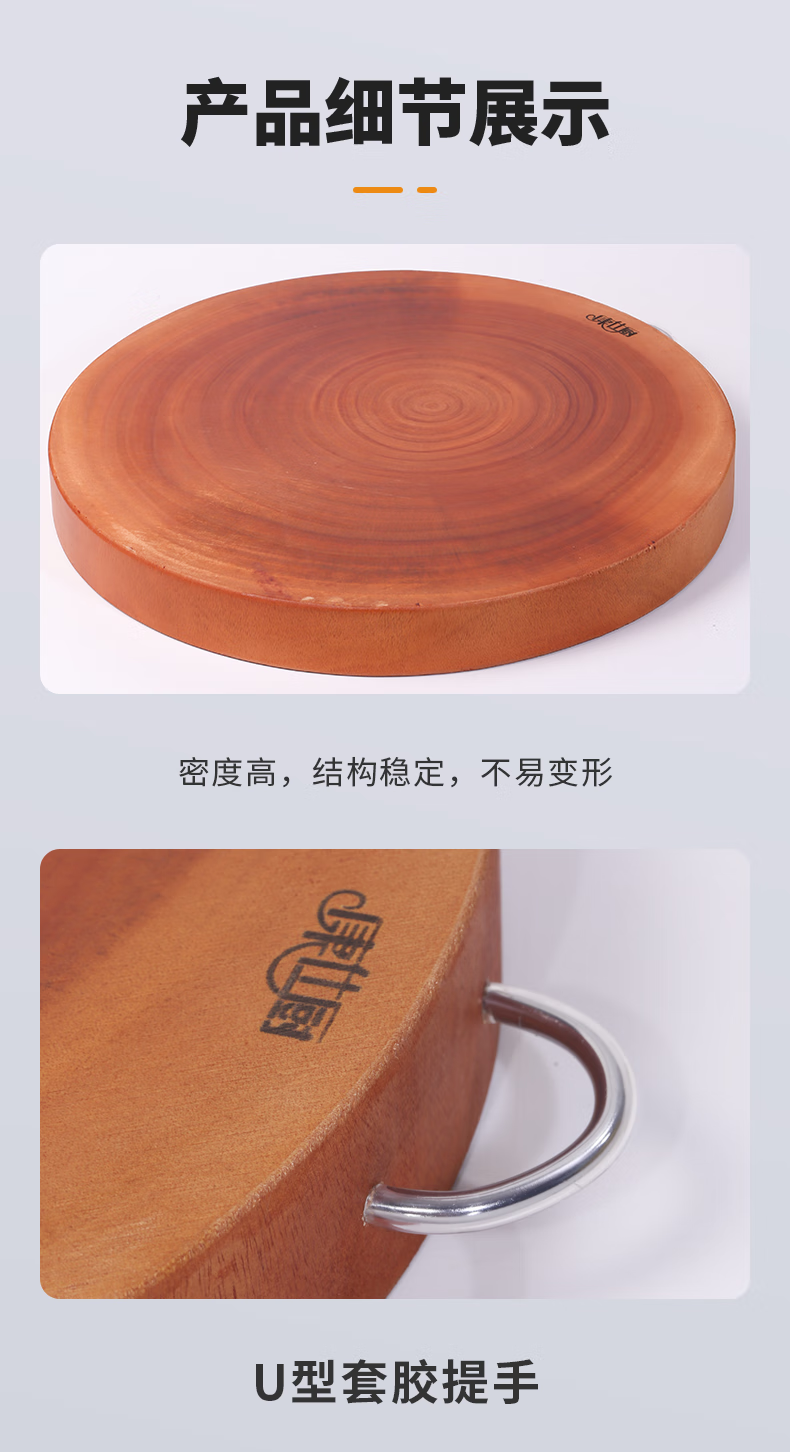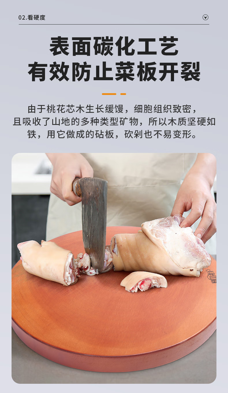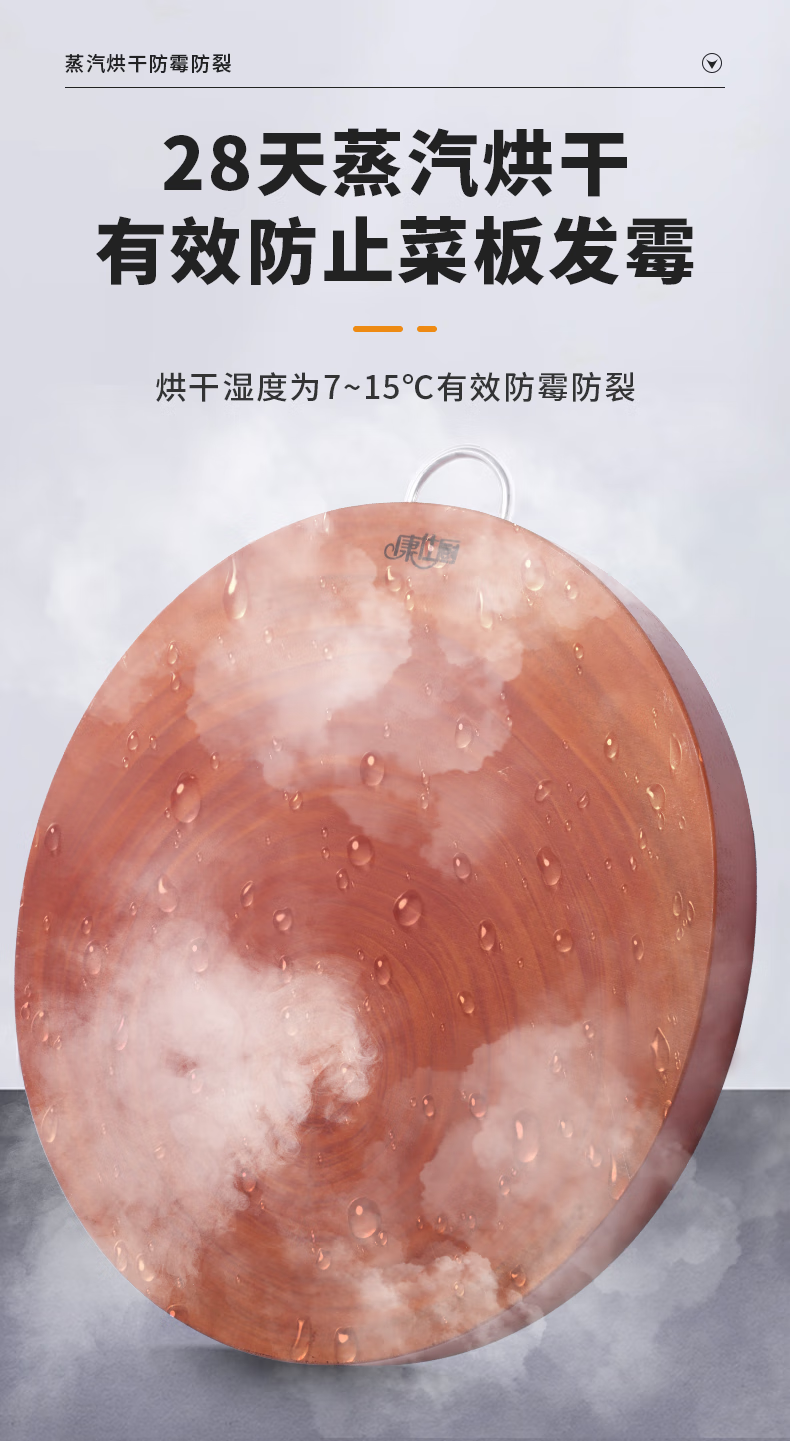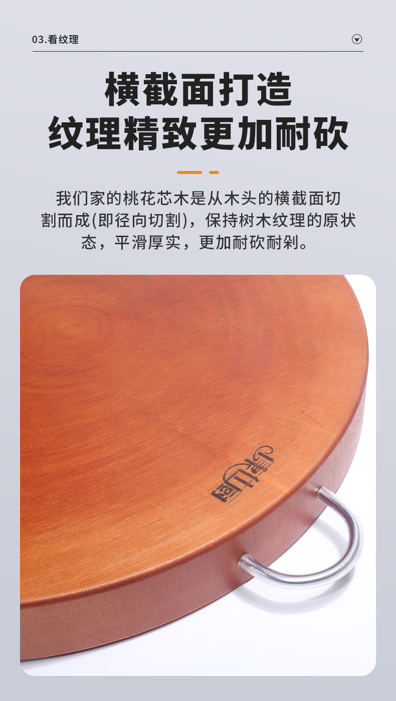 康仕厨越南桃花芯木菜板实木砧板整木圆形切菜板抗菌防霉案板刀板粘板 实木整切不拼接【42x4.0】