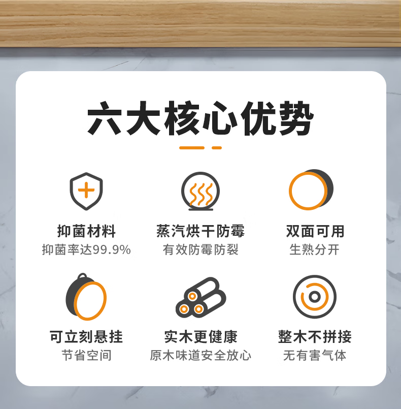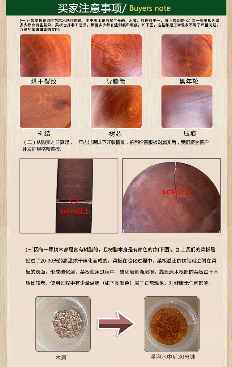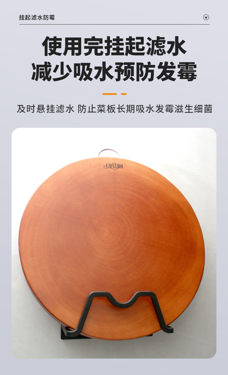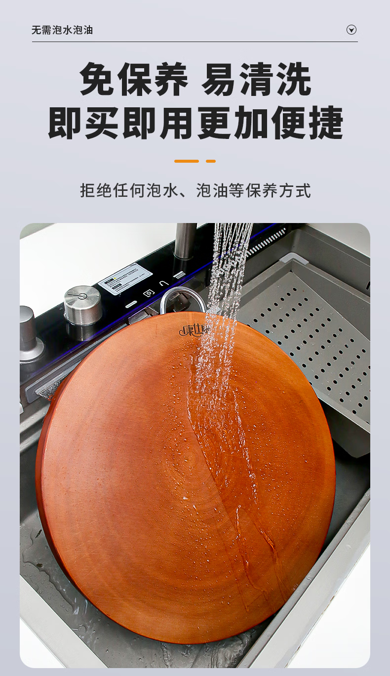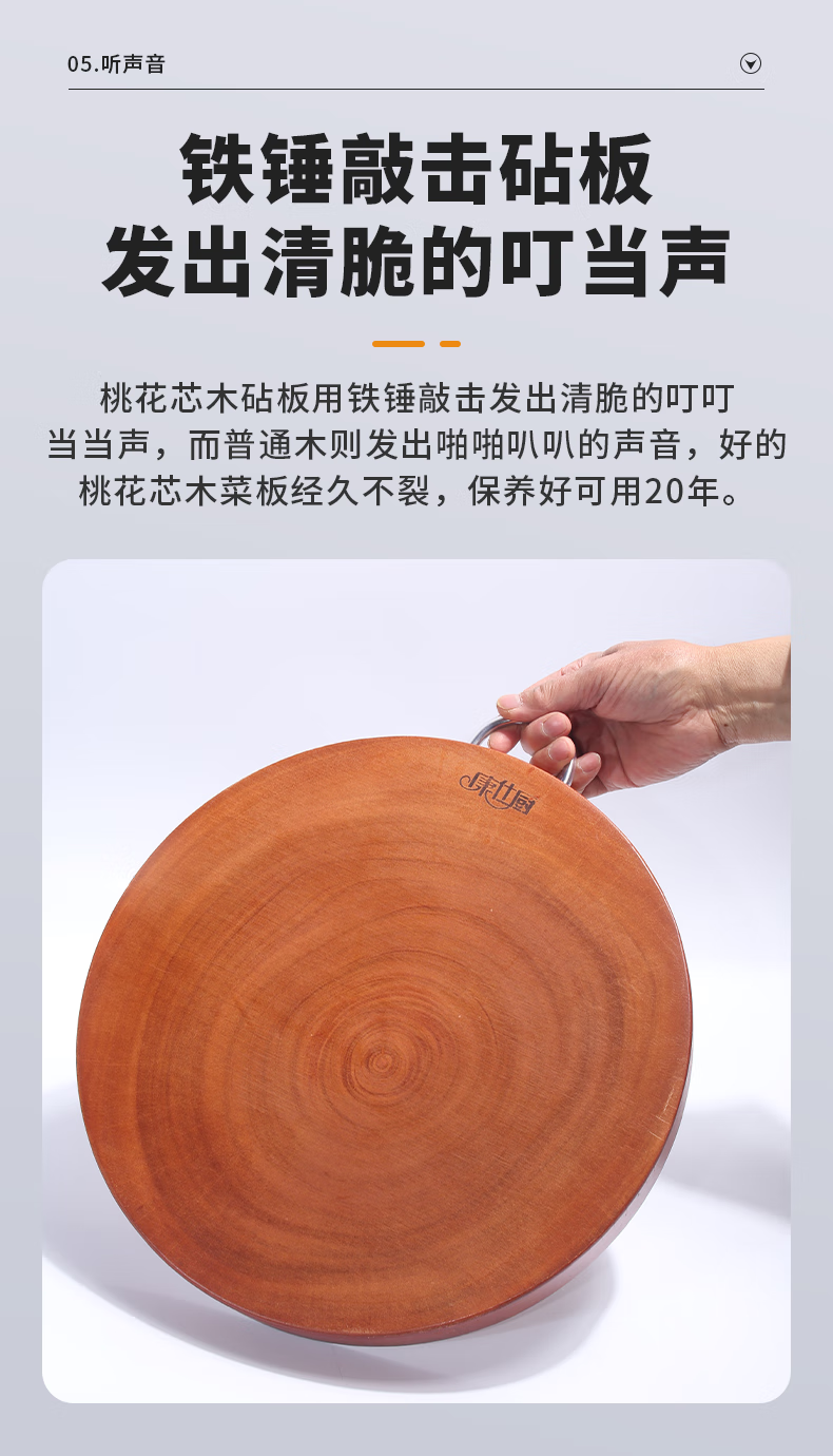 康仕厨越南桃花芯木菜板实木砧板整木圆形切菜板抗菌防霉案板刀板粘板 实木整切不拼接【42x4.0】