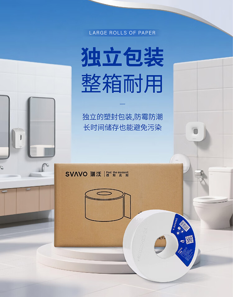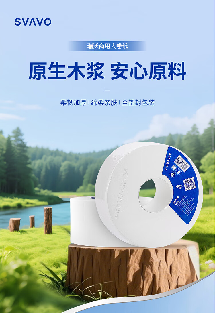 瑞沃(SVAVO)圆形大卷纸商场卫生纸珍宝卷纸原木浆三层大盘家用厕所大卷纸巾 3层 780g*36卷 【AD008三箱+JY565】