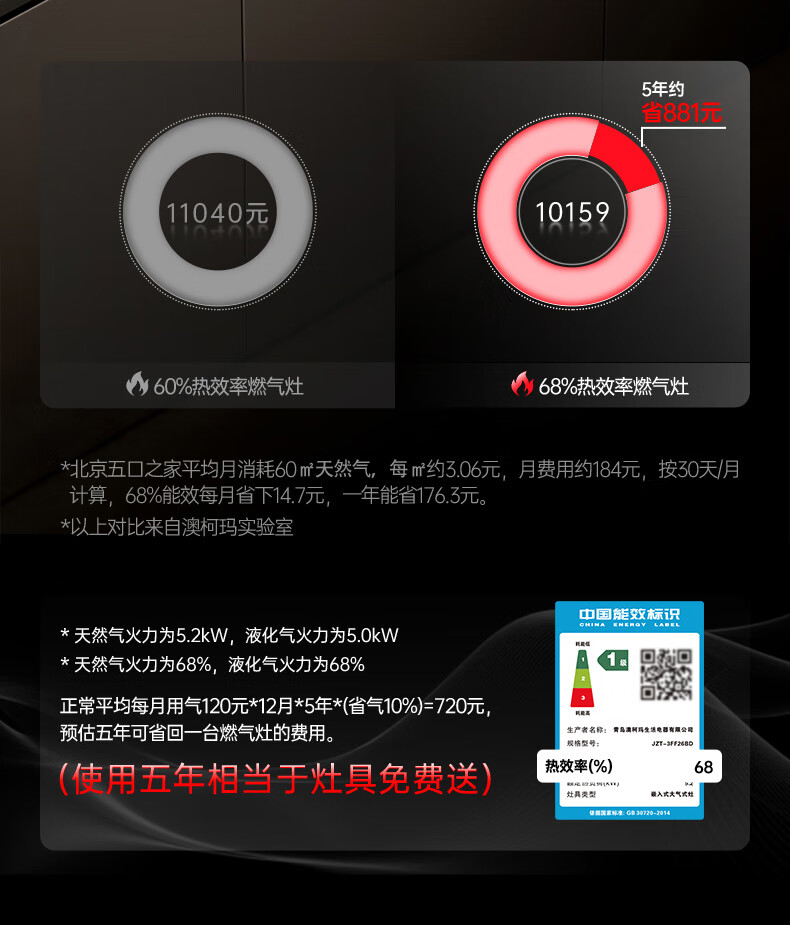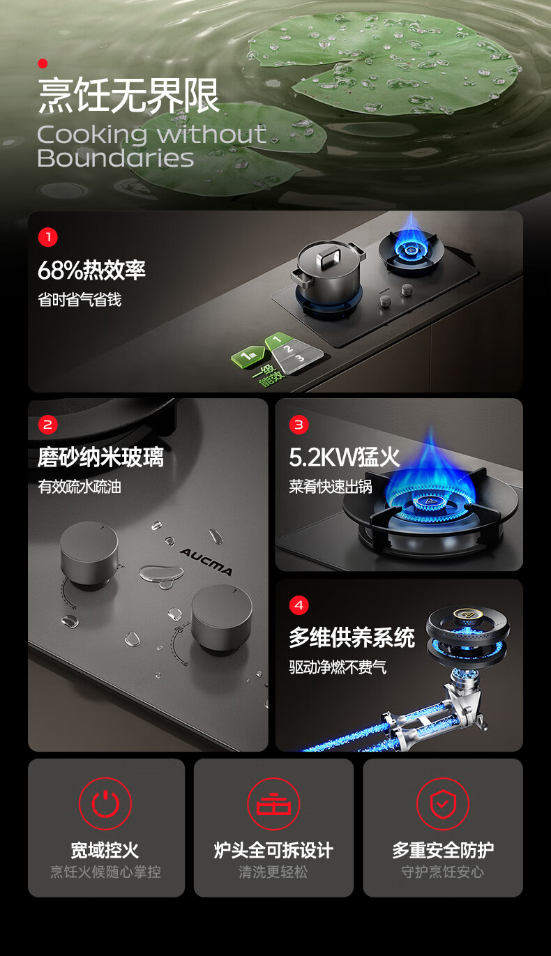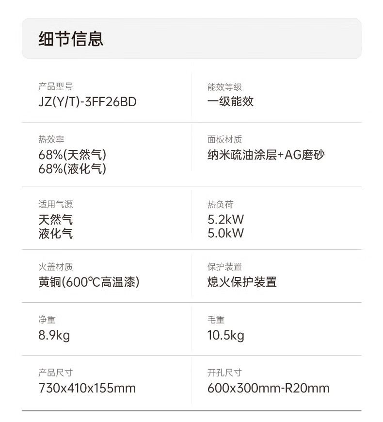 澳柯玛(AUCMA) 燃气灶双灶家用煤气灶天然气液化气5.2kW猛火灶具 台式嵌入式两用 一级能效 灶具 天/铜火盖5.2磨砂猛火26BD