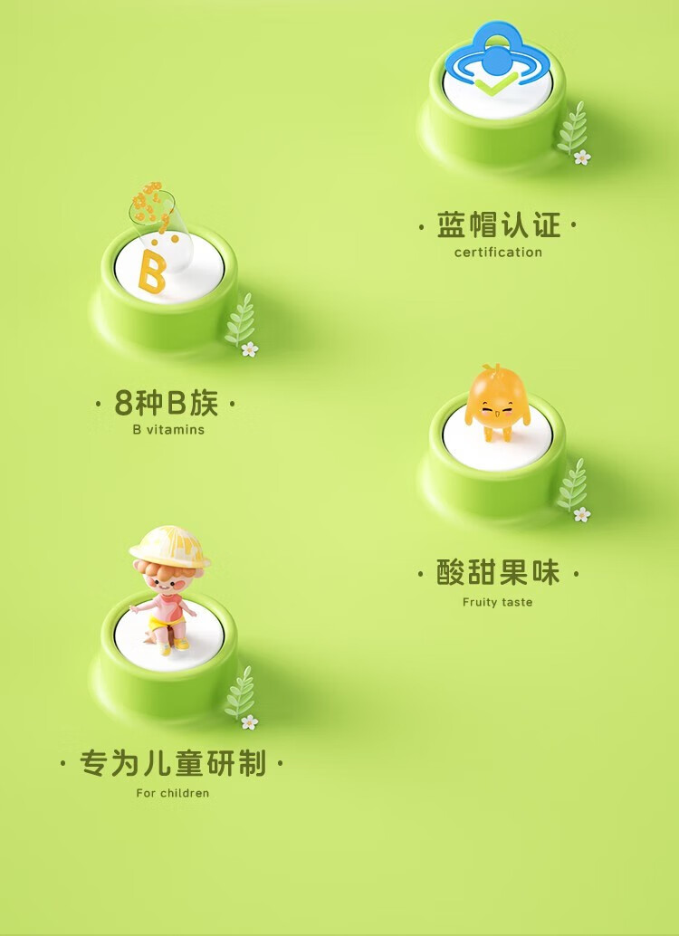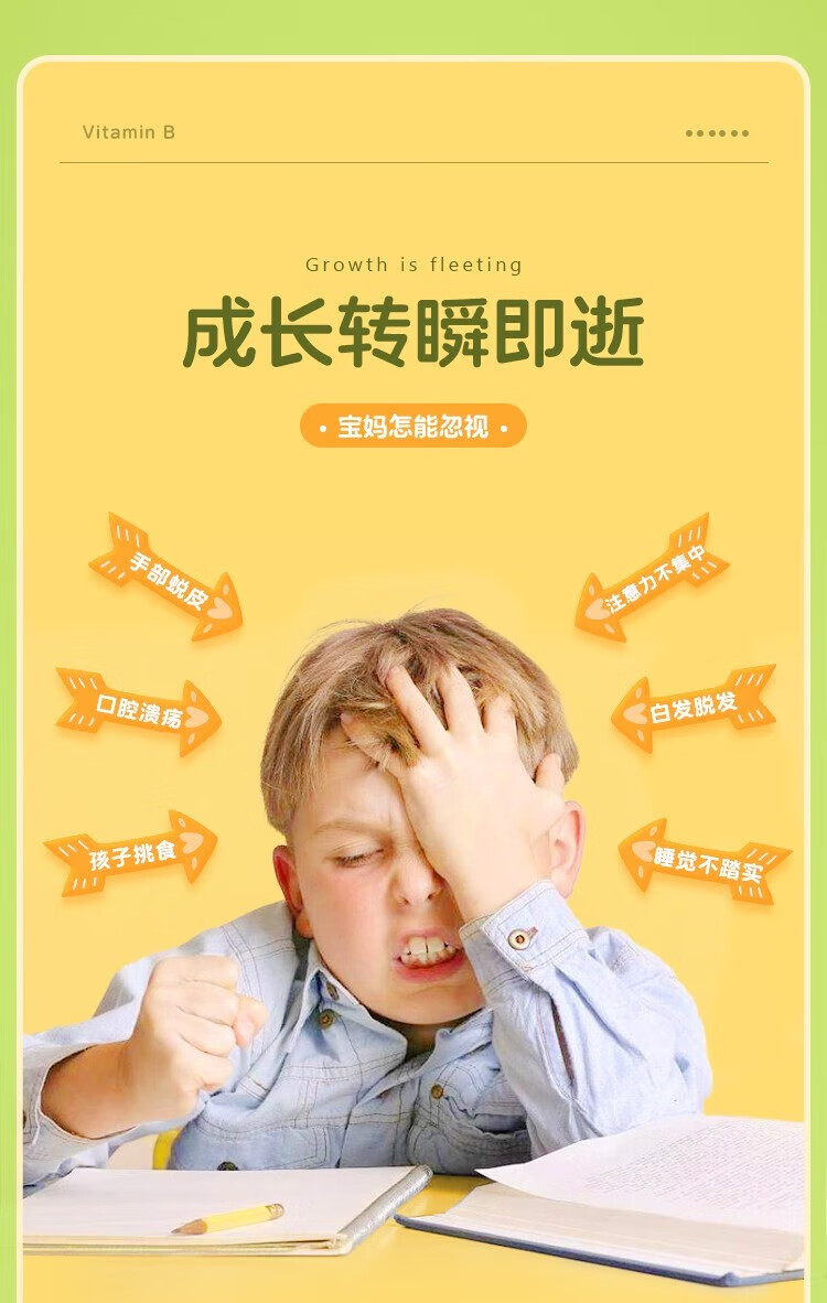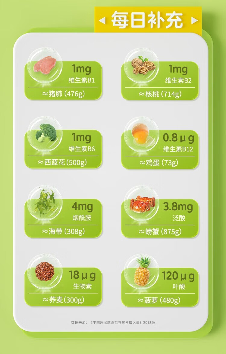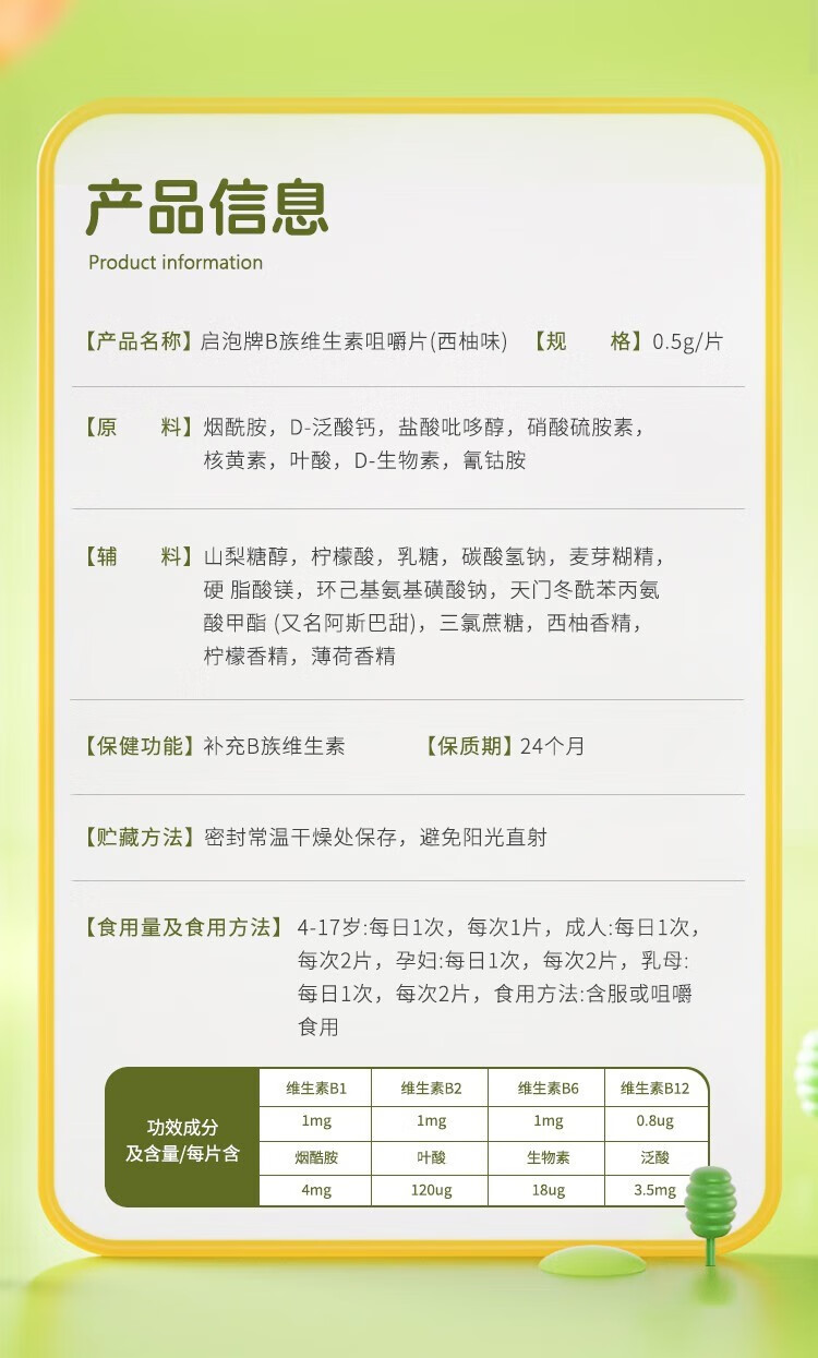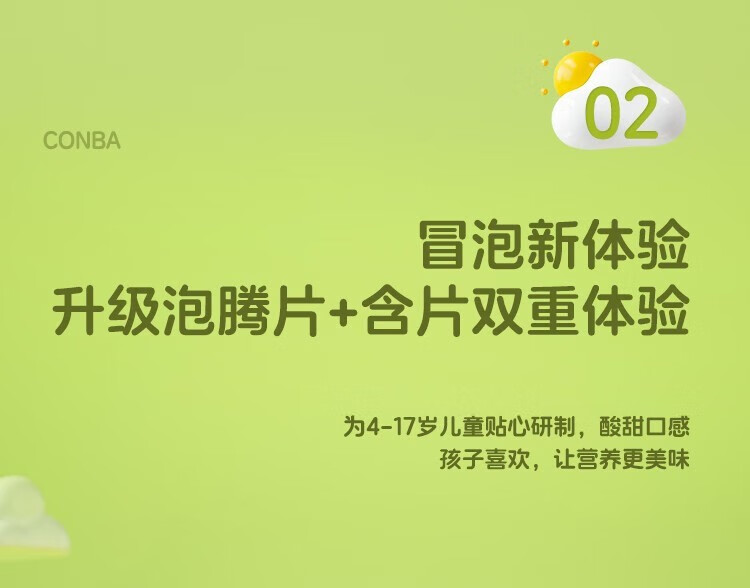 康恩贝儿童维生素b族多种复合维生素含B1B2B6b12可配儿童维C4-6岁6-13岁 B族泡腾咀嚼片60片【买2发3】