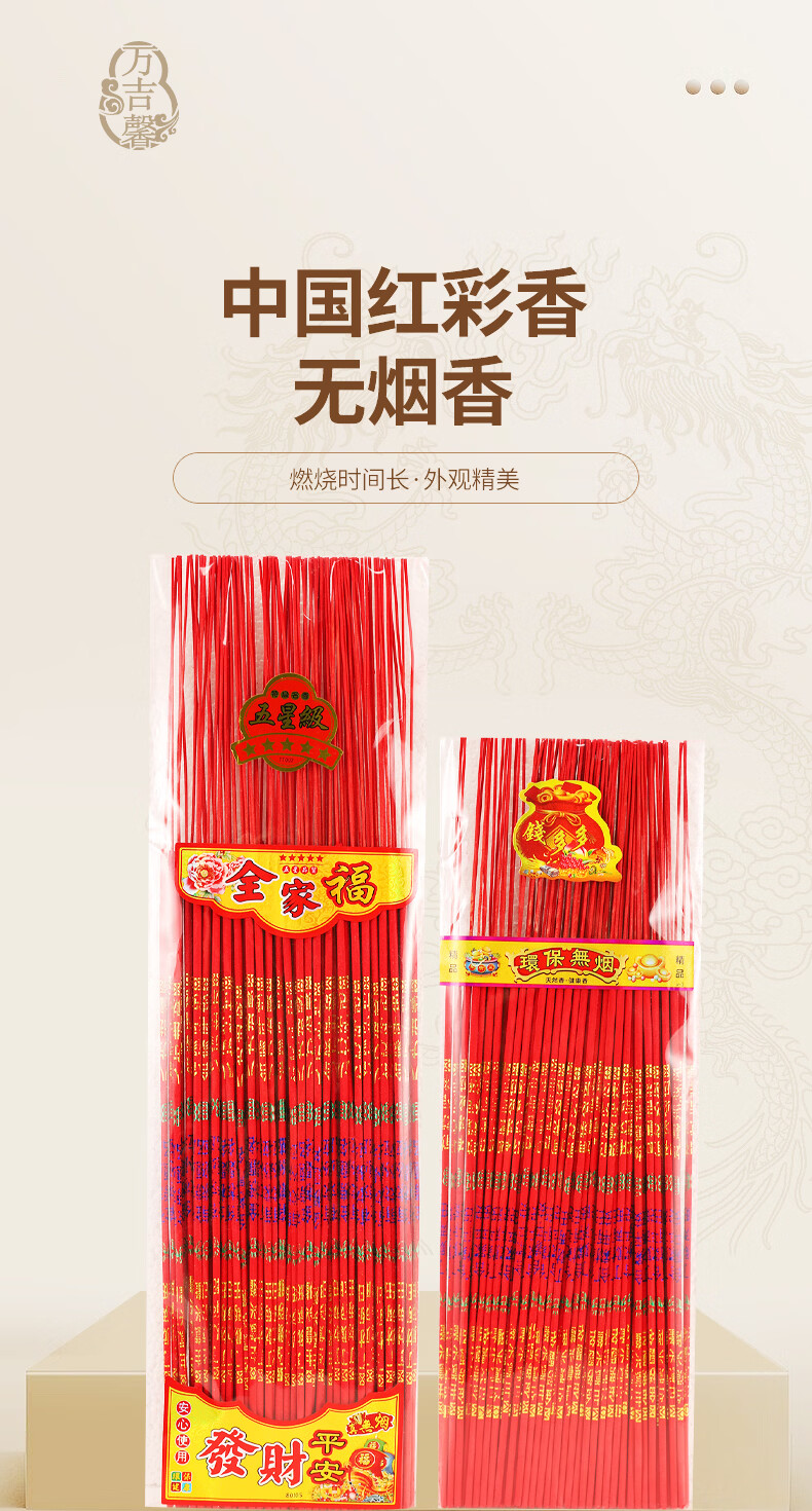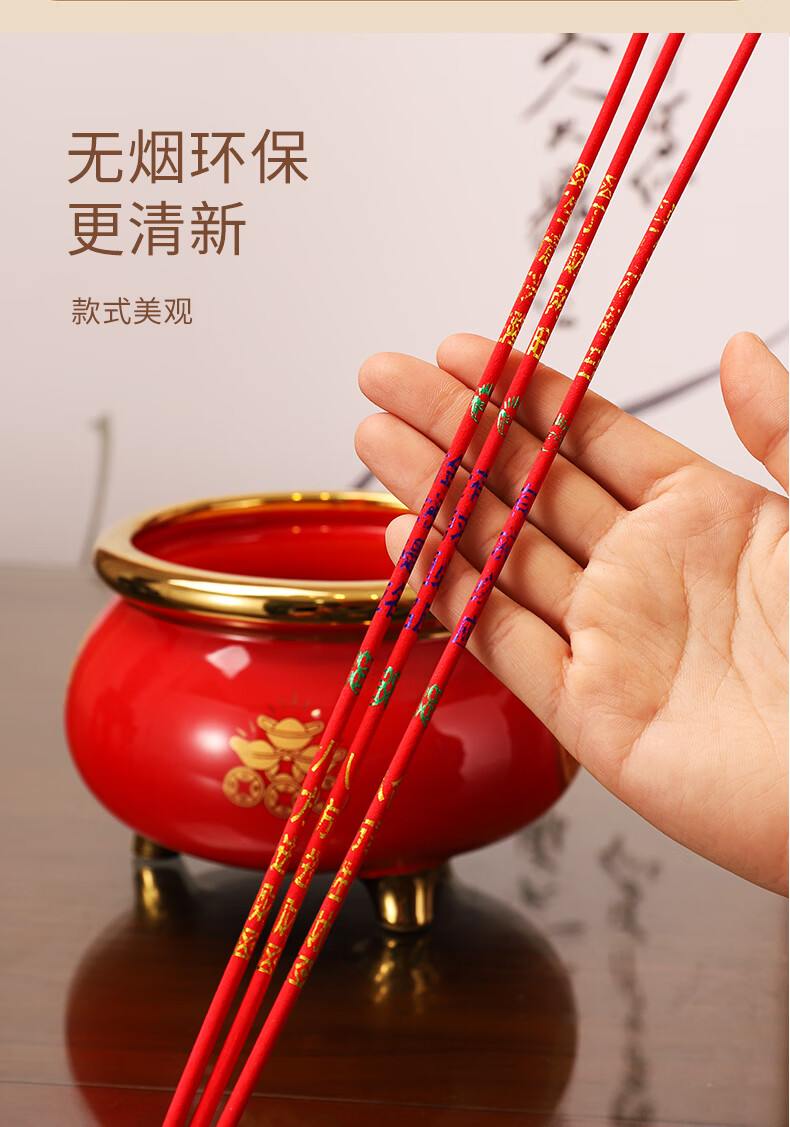 万吉馨无烟香家用供香檀香有求必应线香财神香室内贡香佛香观音香 25分钟26cm700支大罐装 红色红颜香