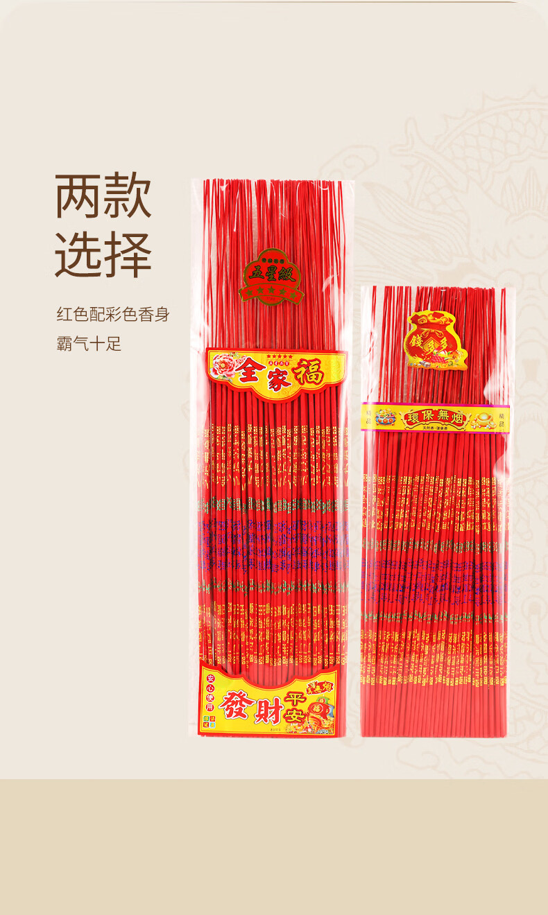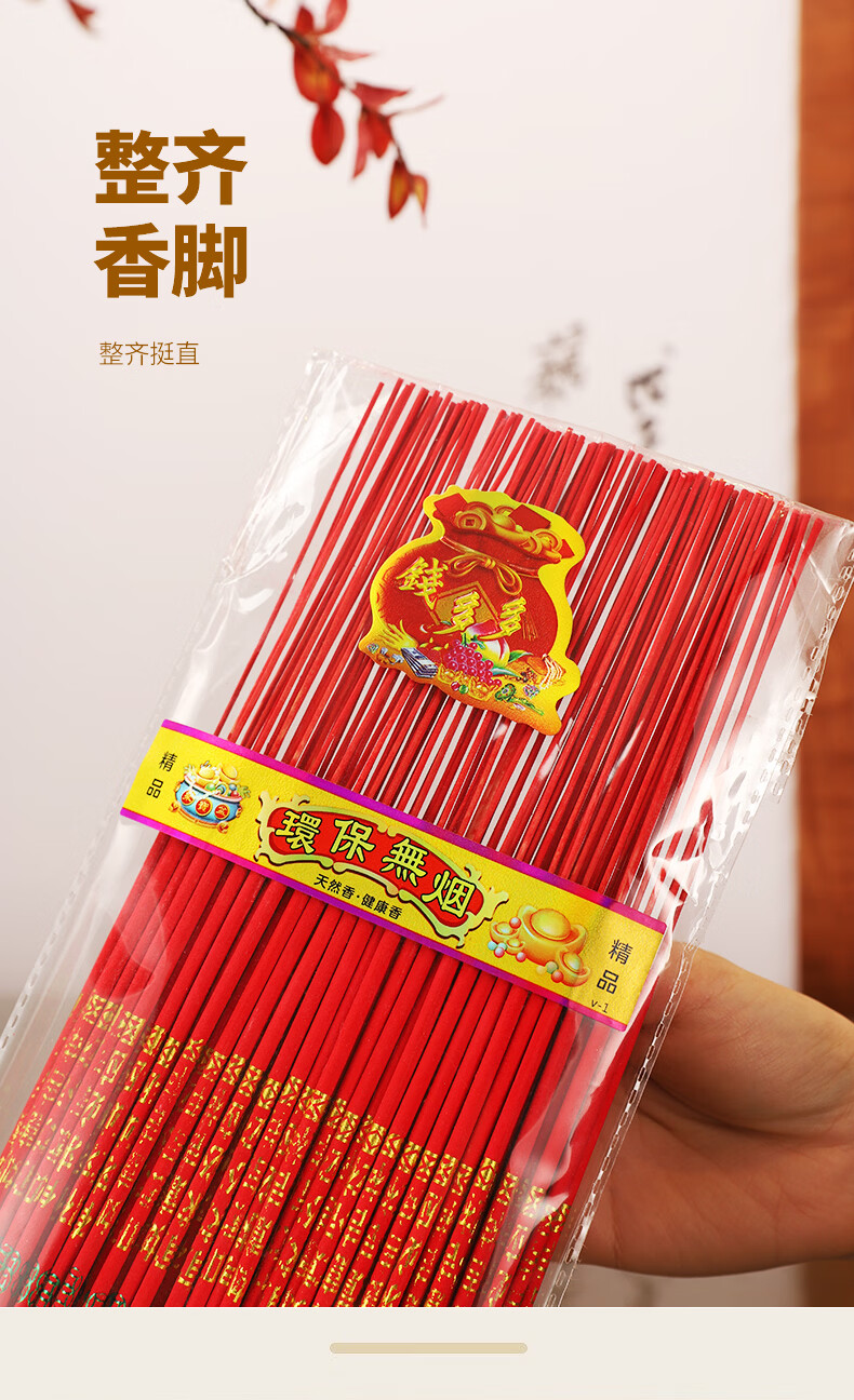 中国红祈福香招财香财神香供香供佛香竹签香好运来一包100支富贵香 39.5cm长5厘粗(100支) 无规格
