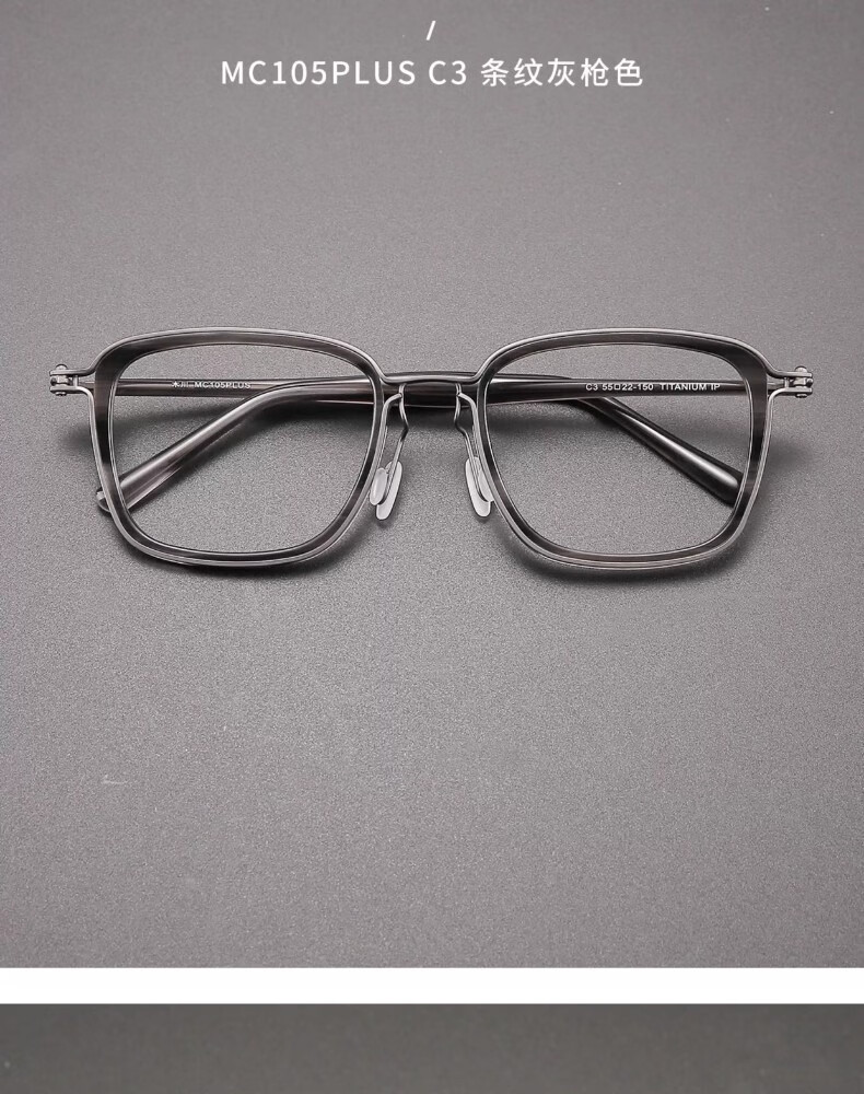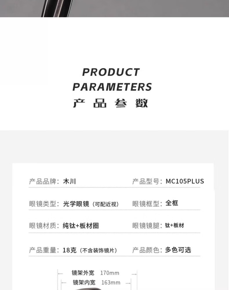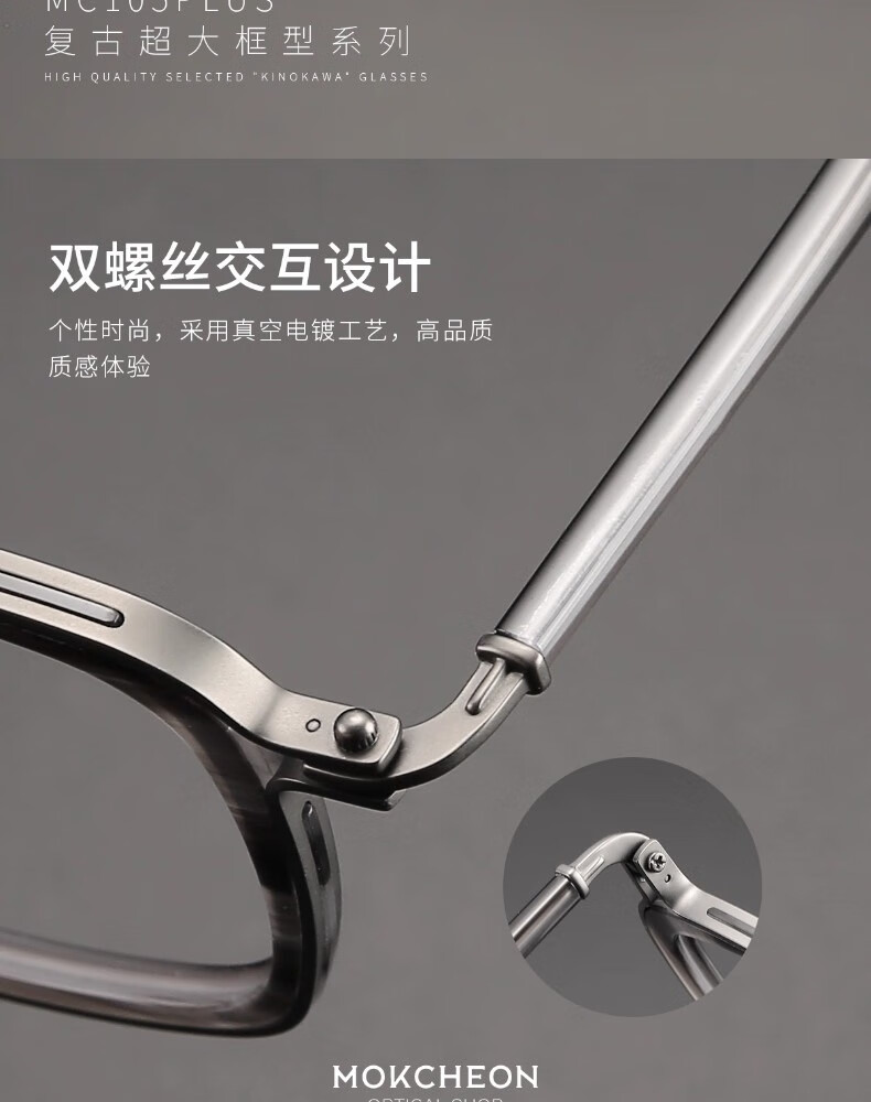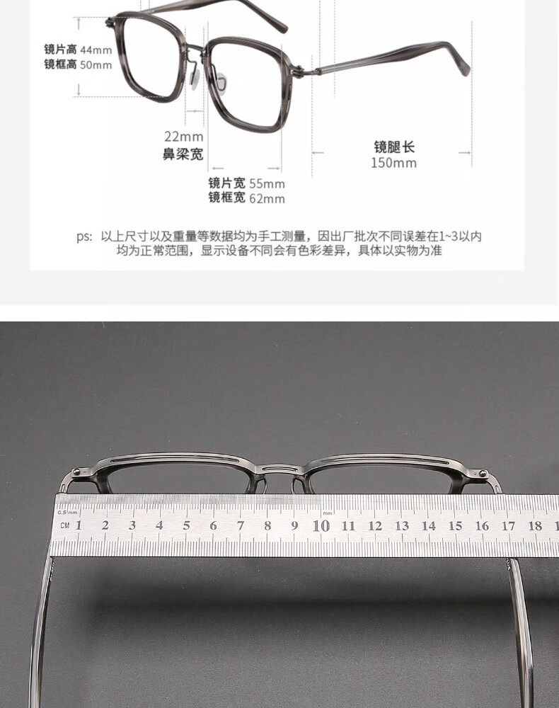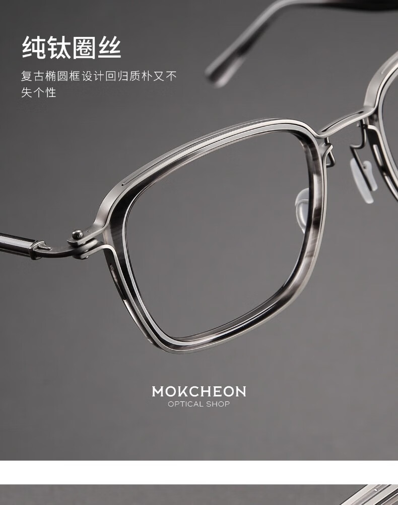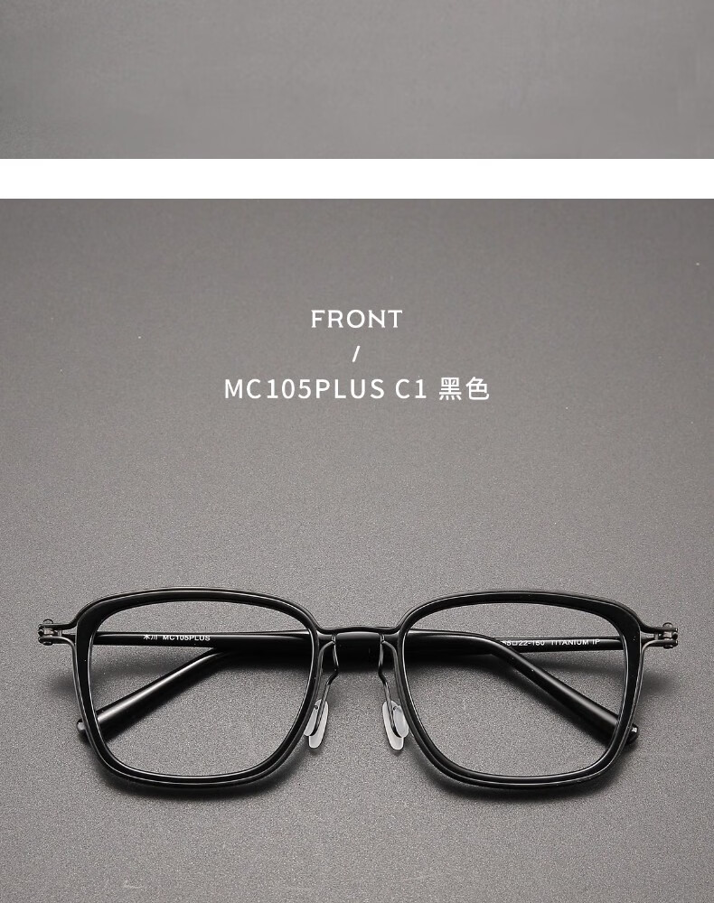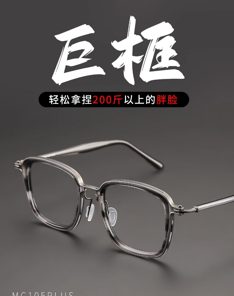 木川加大加宽大头围近视眼镜男士复古纯钛170mm大脸镜框可配度数 黑色【总宽170-适合大头围】 单镜框