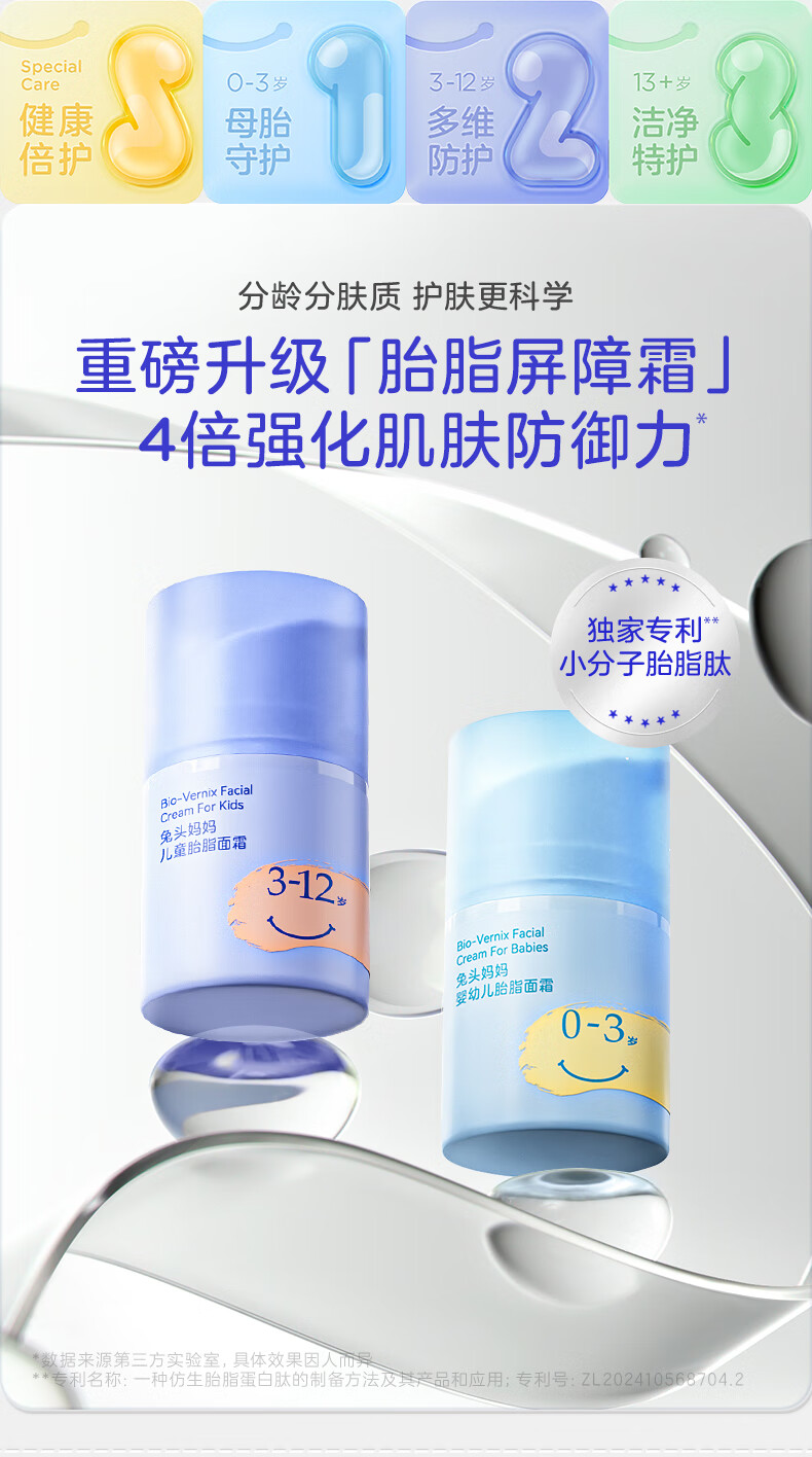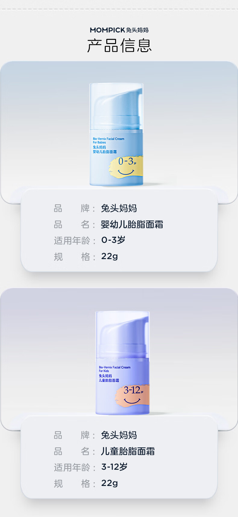 兔头妈妈儿童面霜 宝宝婴儿护肤霜保湿滋润舒缓擦脸霜补水润肤胎脂屏障霜 【0-3岁】婴幼儿胎脂面霜22g+8g