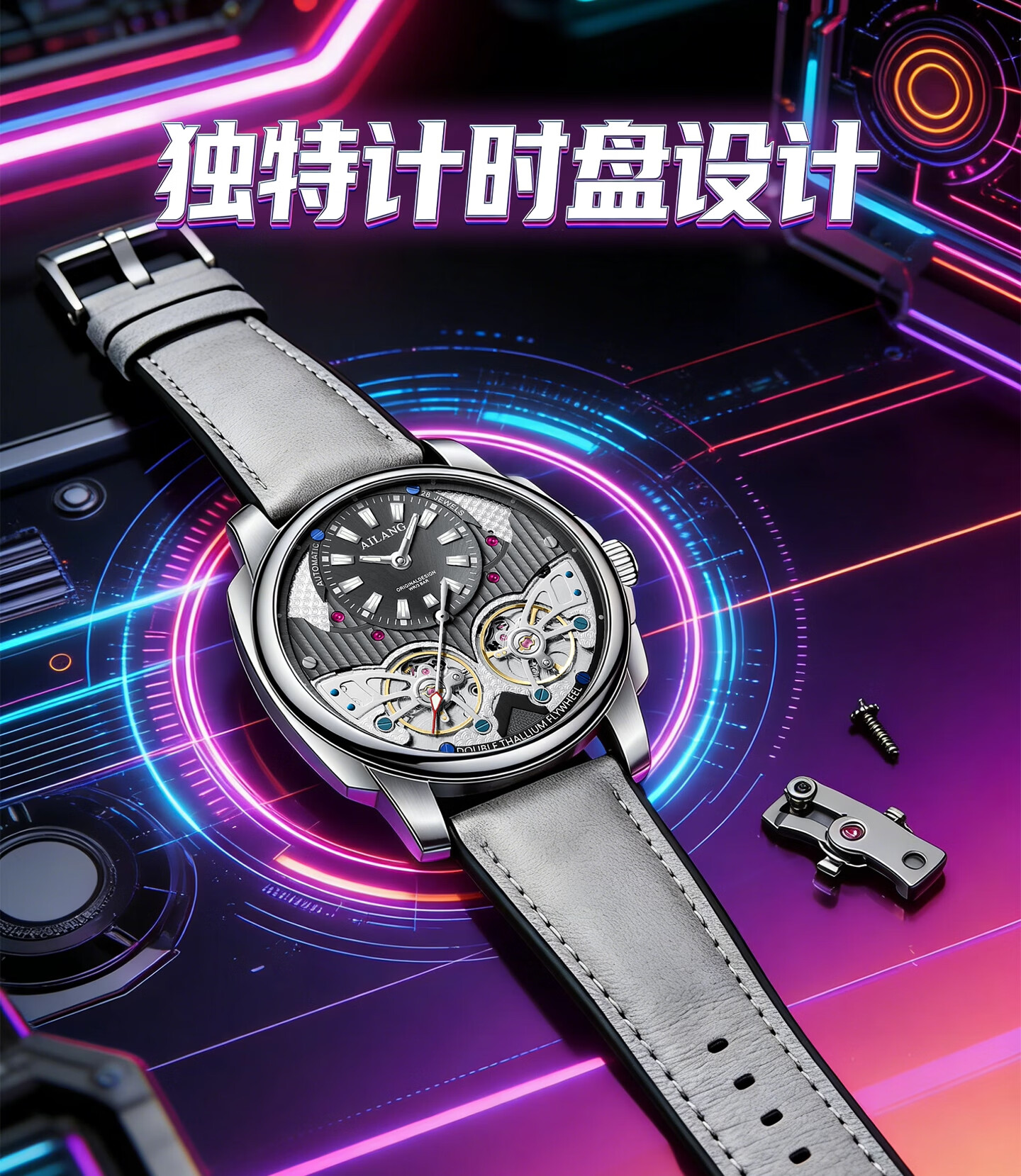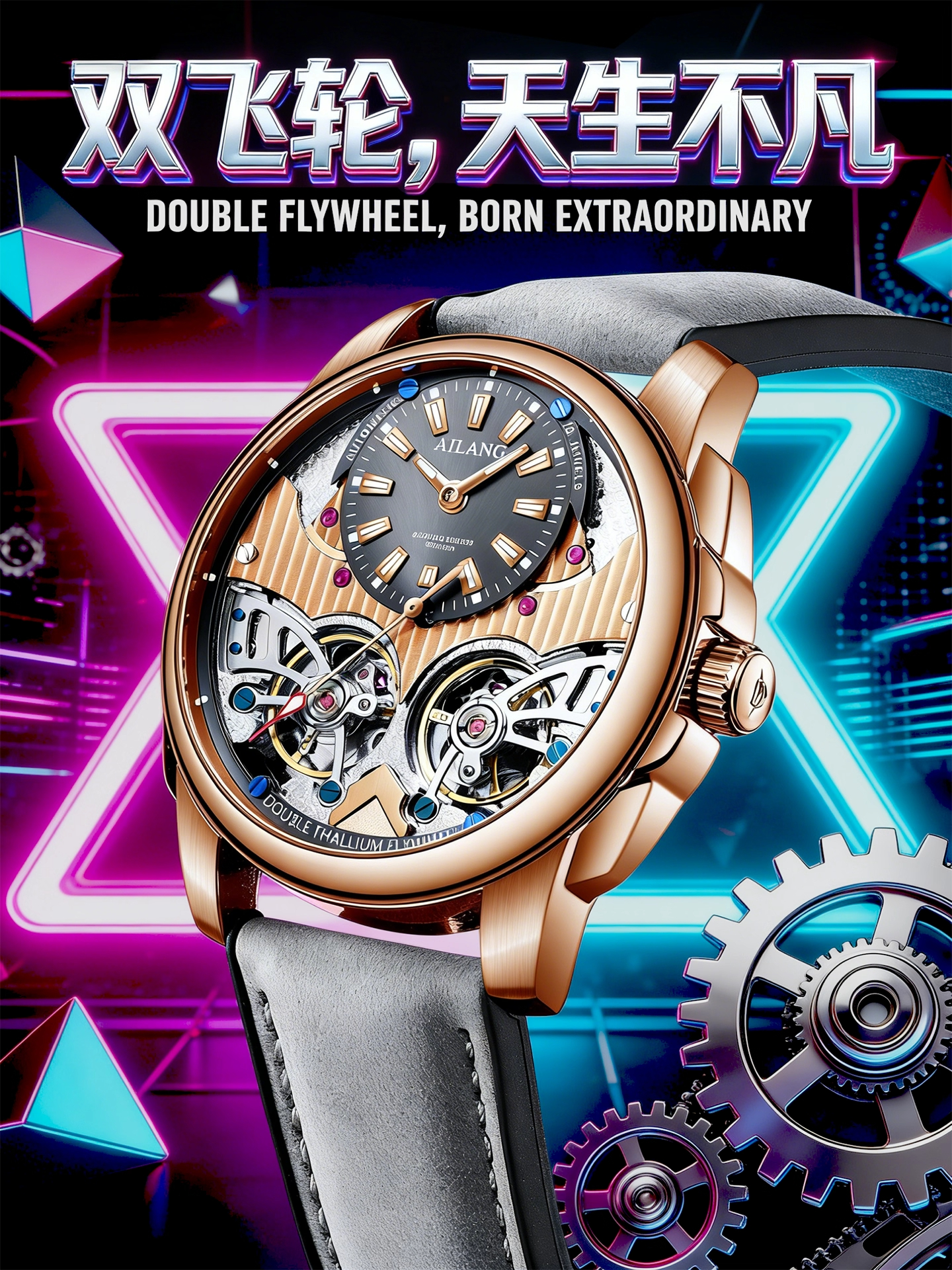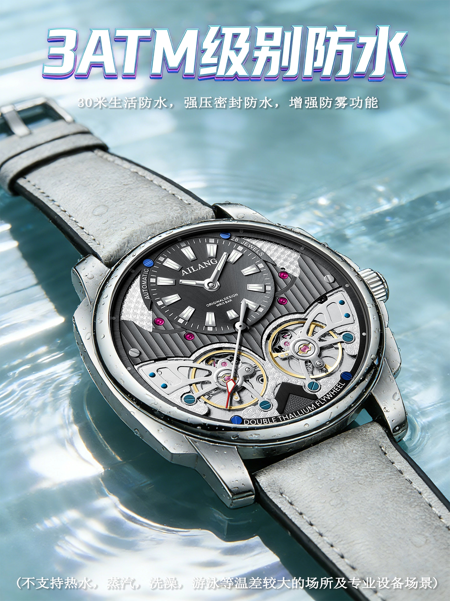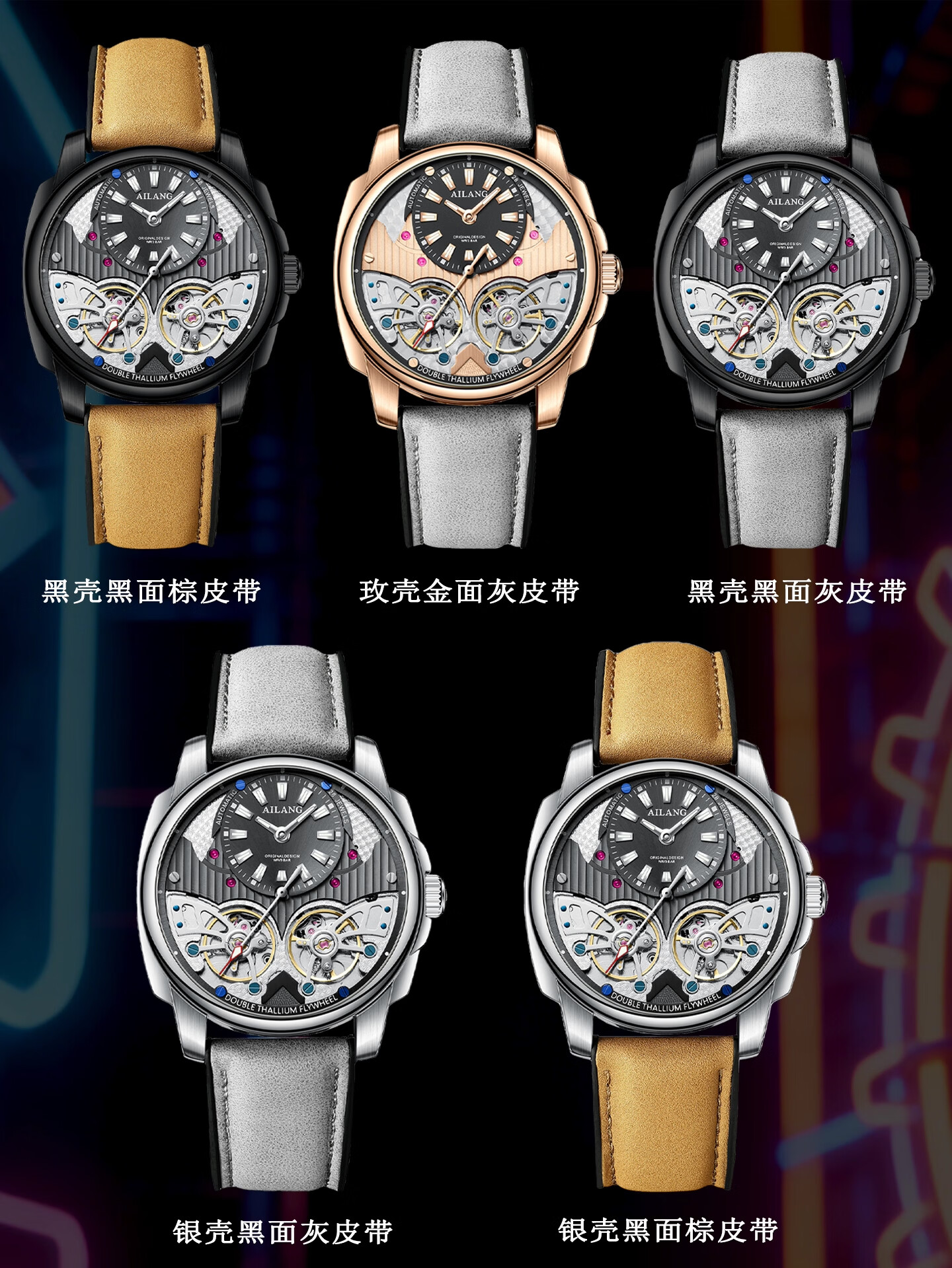 艾浪2026新款双子星男士全自动机械表潮玩高端商务品牌腕表礼物高级感 炽玫金-灰色皮带【高定礼盒+送皮带】 42mm