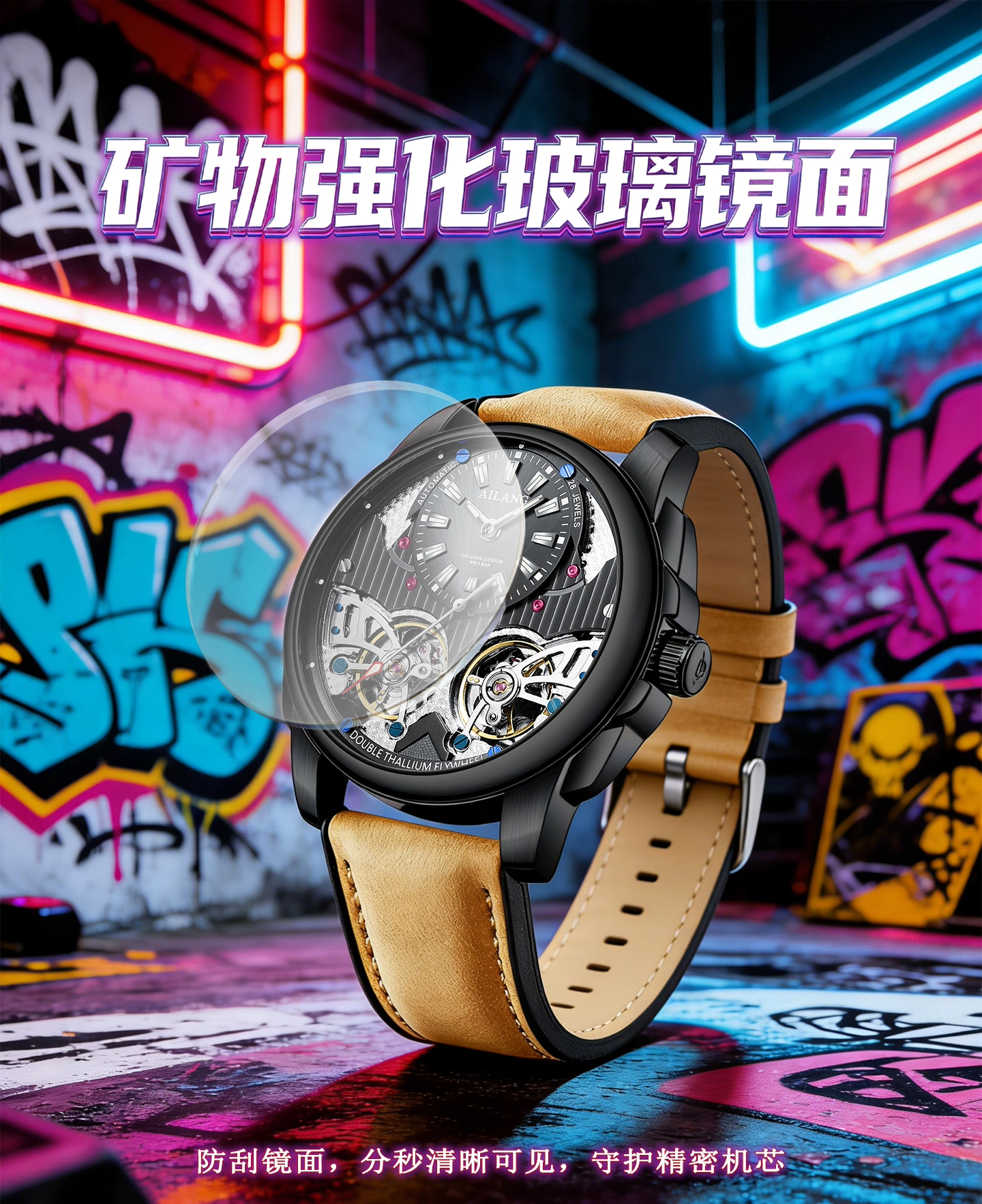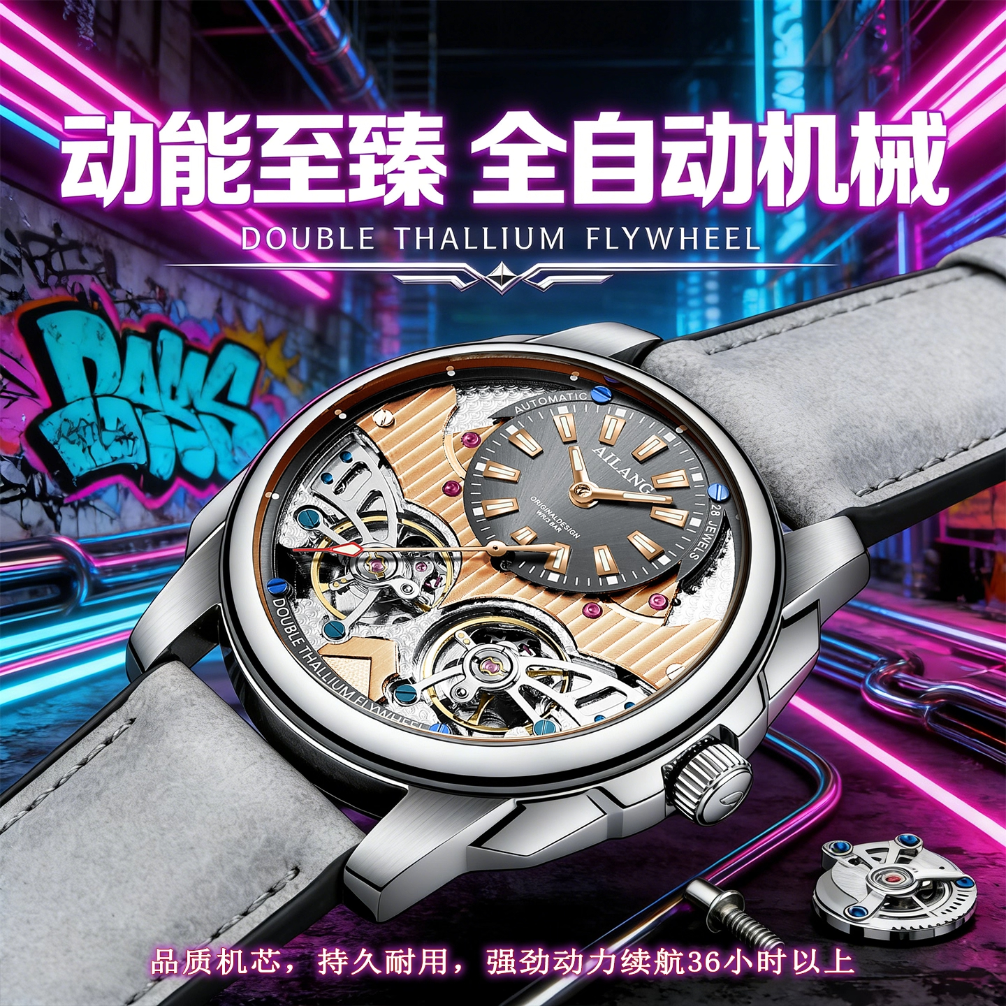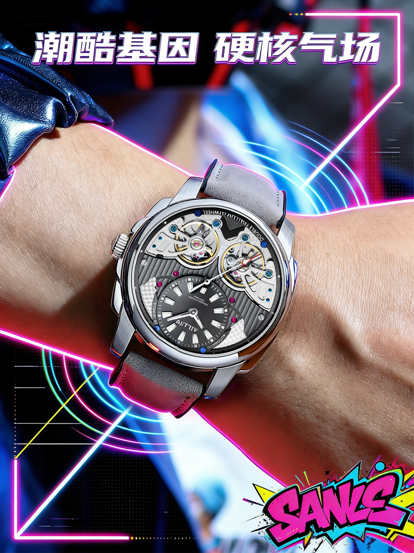 艾浪2026新款双子星男士全自动机械表潮玩高端商务品牌腕表礼物高级感 炽玫金-灰色皮带【高定礼盒+送皮带】 42mm