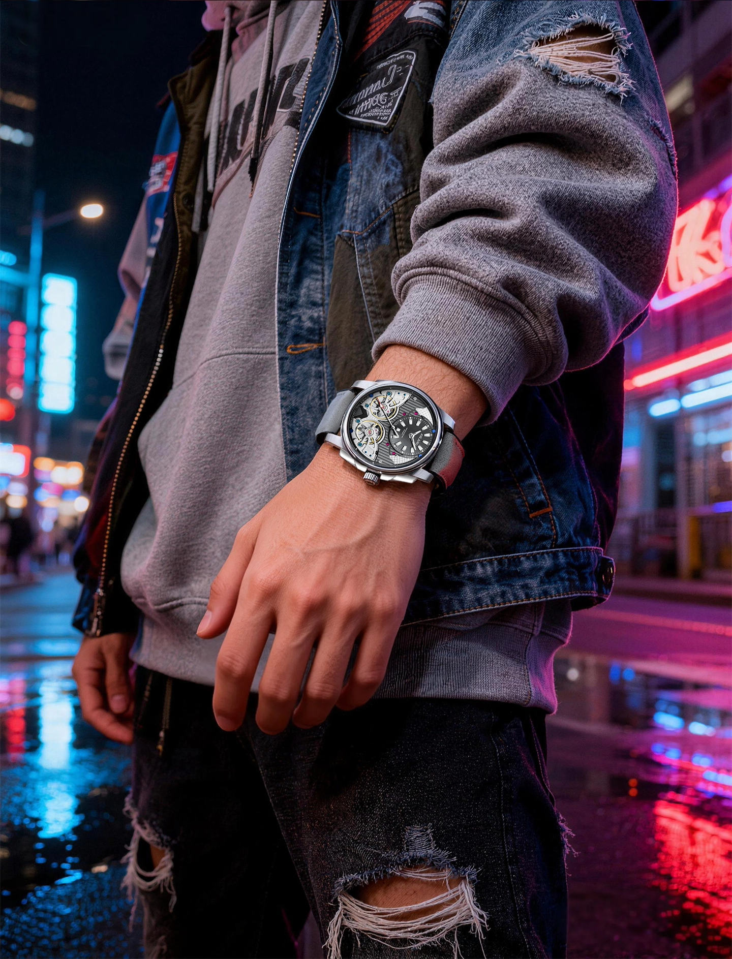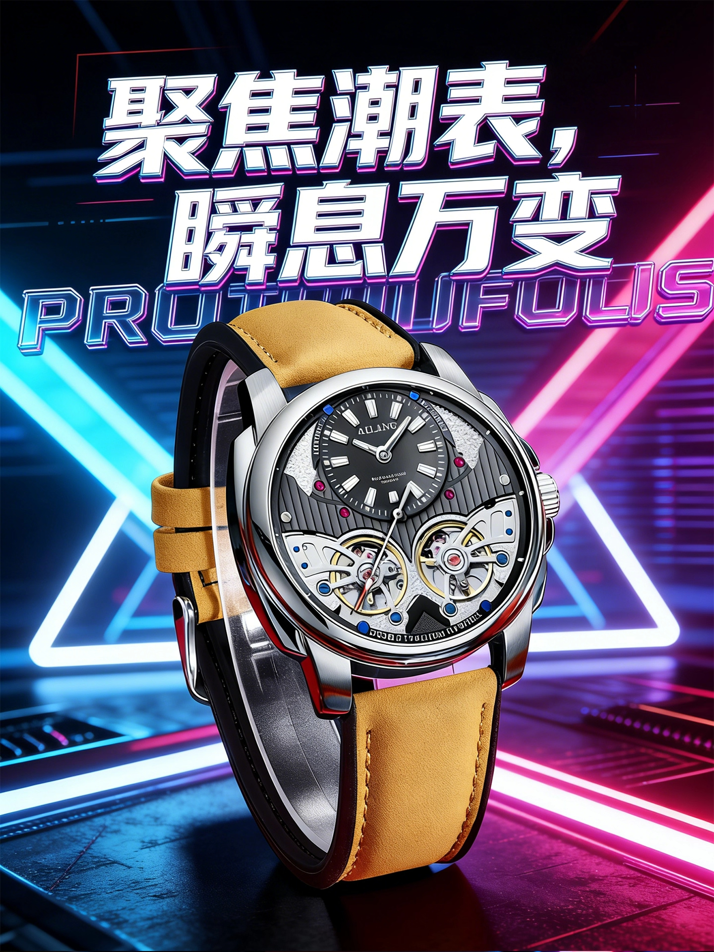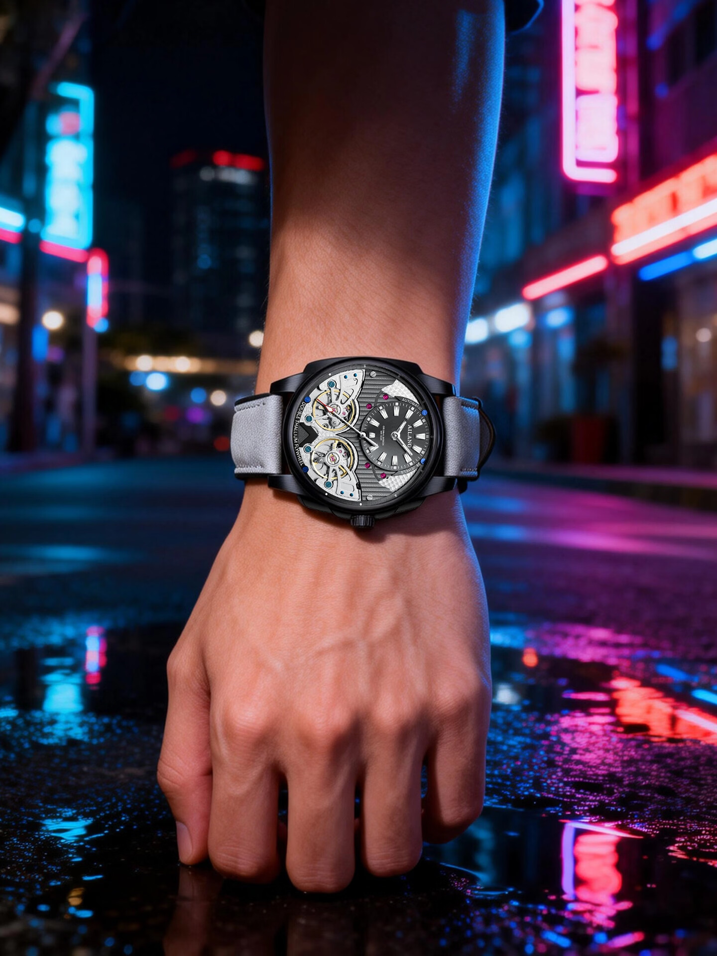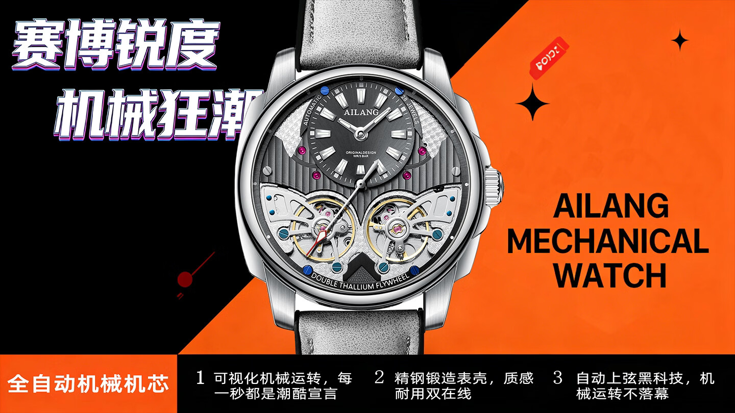 艾浪2026新款双子星男士全自动机械表潮玩高端商务品牌腕表礼物高级感 炽玫金-灰色皮带【高定礼盒+送皮带】 42mm