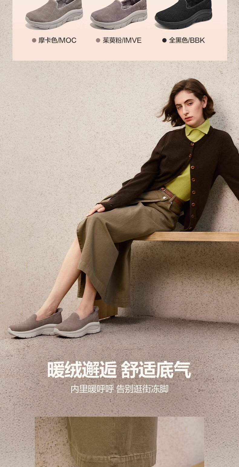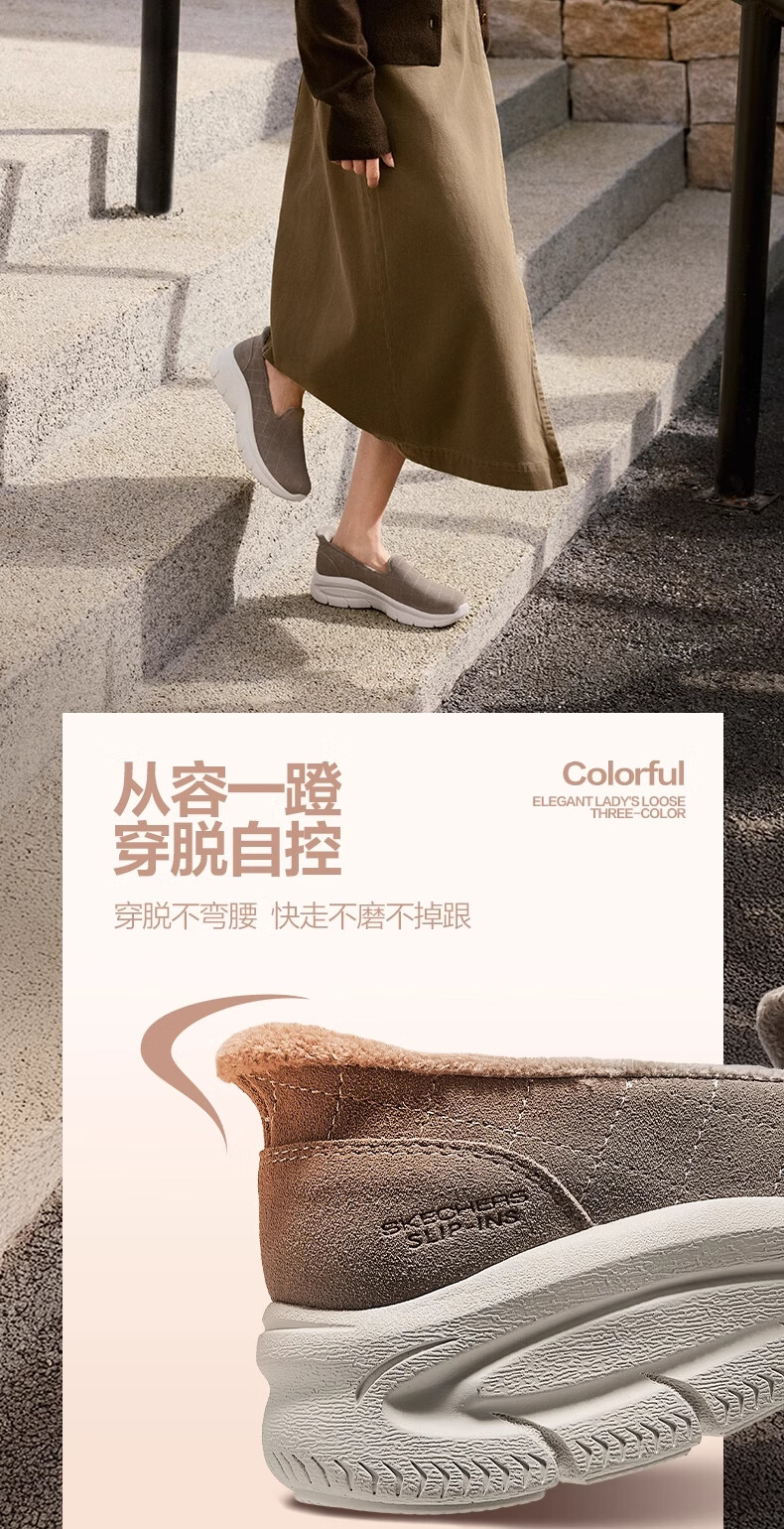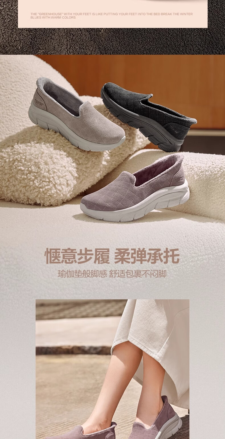 斯凯奇(Skechers)新年礼物女鞋2025新品冬加绒保暖单鞋健步鞋一脚蹬休闲鞋159340