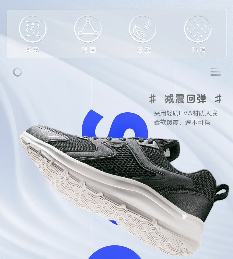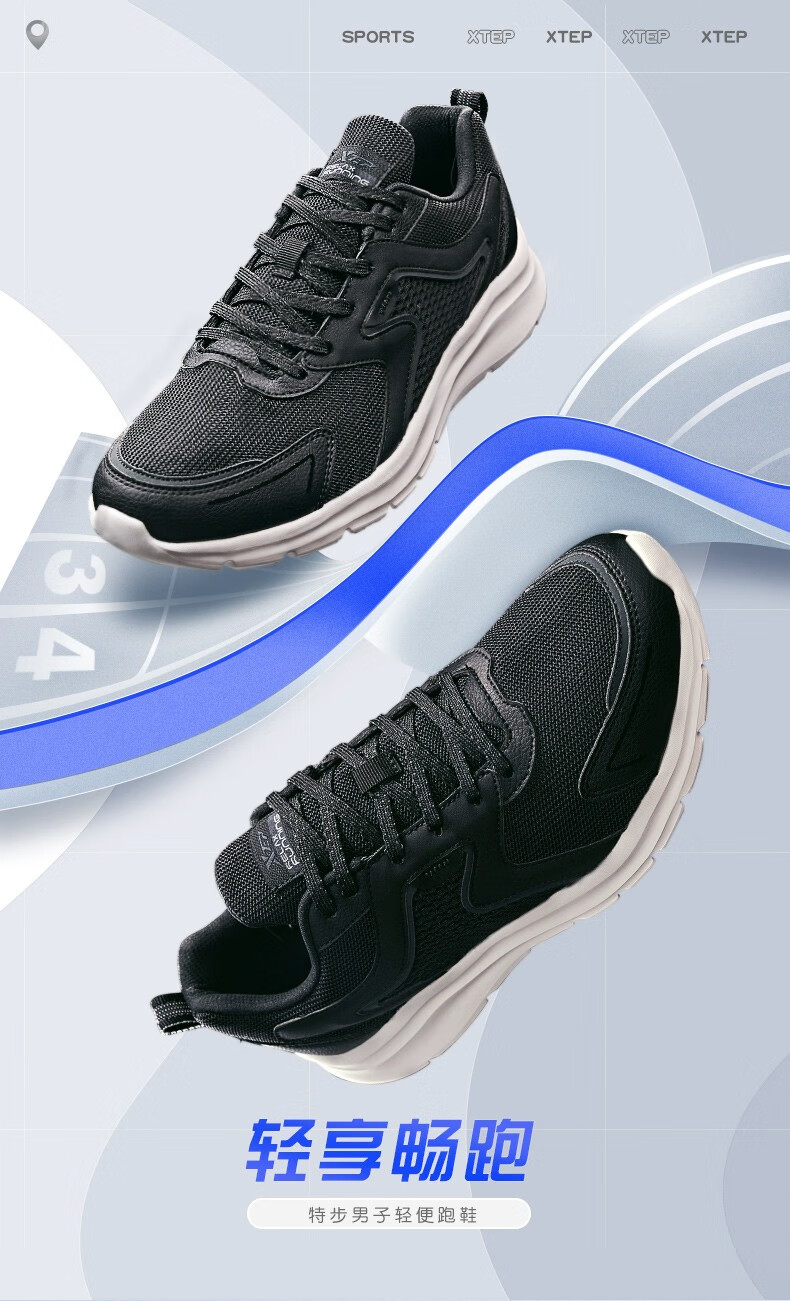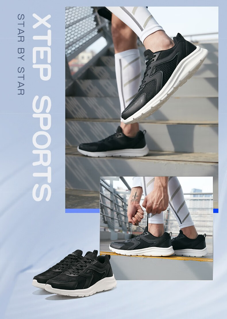 特步(XTEP)【国潮】男鞋跑步鞋春季新款运动鞋男轻便减震休闲鞋跑鞋学生 【网面】黑 42
