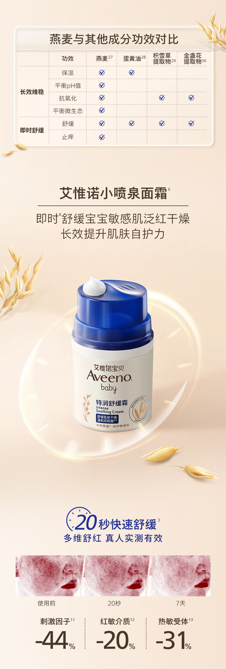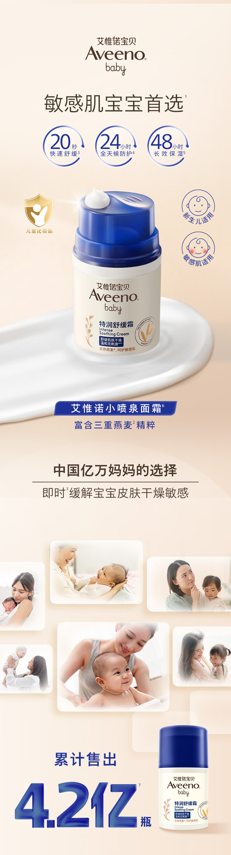 艾惟诺(Aveeno)艾维诺儿童面霜舒缓滋润肤乳 婴儿宝宝秋冬特护面霜48g新年送礼