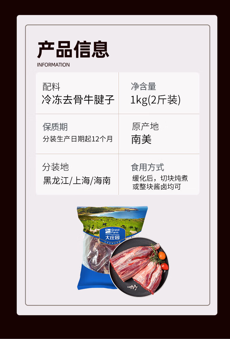 大庄园 进口原切牛腱子 净重2斤 草饲生鲜牛肉 酱卤炖煮食材【真原切】
