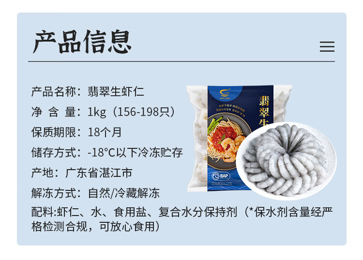 GUO LIAN国联 翡翠生虾仁海鲜去冰净重2斤 156-198只去虾线【400万+好评】