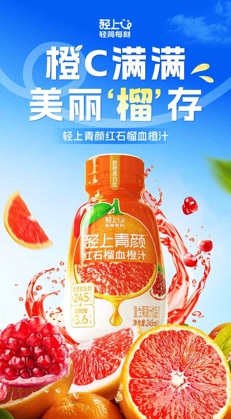 轻上【年货送礼】轻颜红石榴桑葚汁车厘子双莓汁富含维C酸甜可口整箱 红石榴桑椹汁1L*2瓶+车厘子双莓汁1L*2