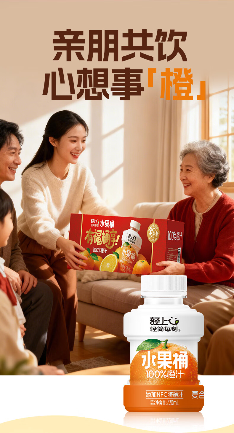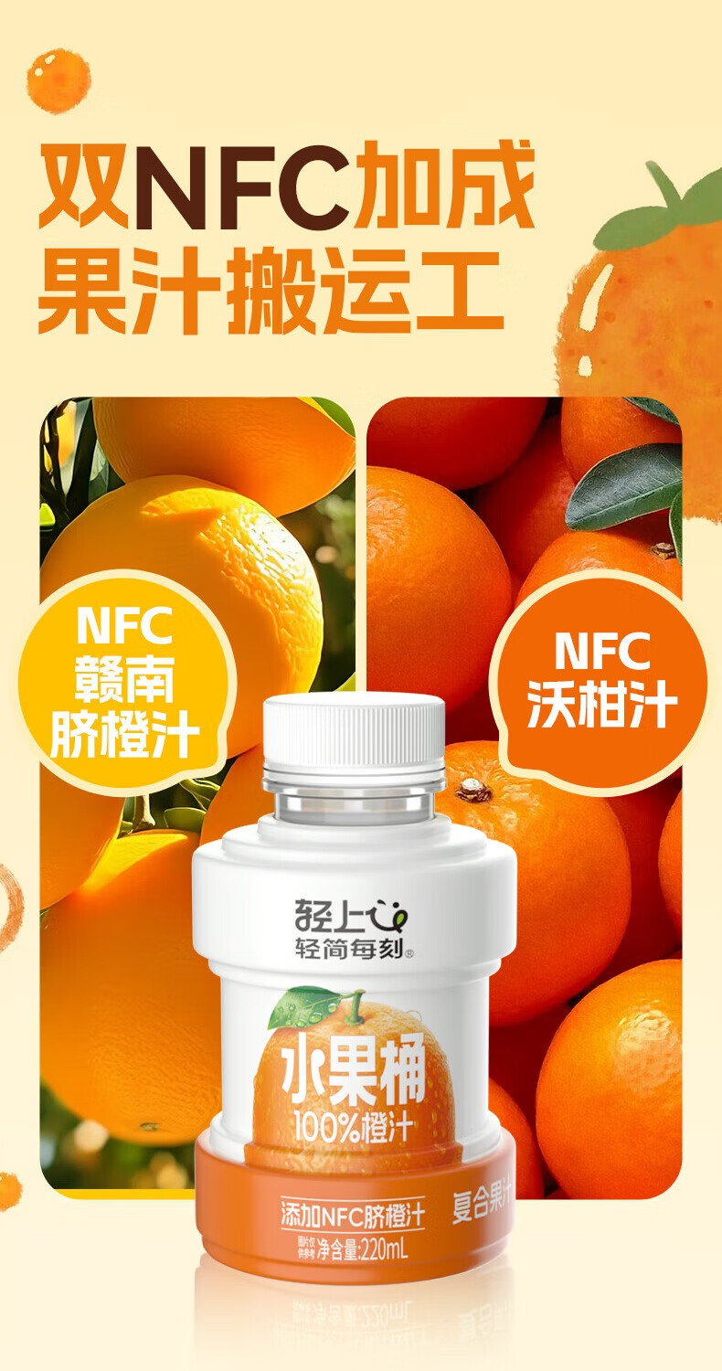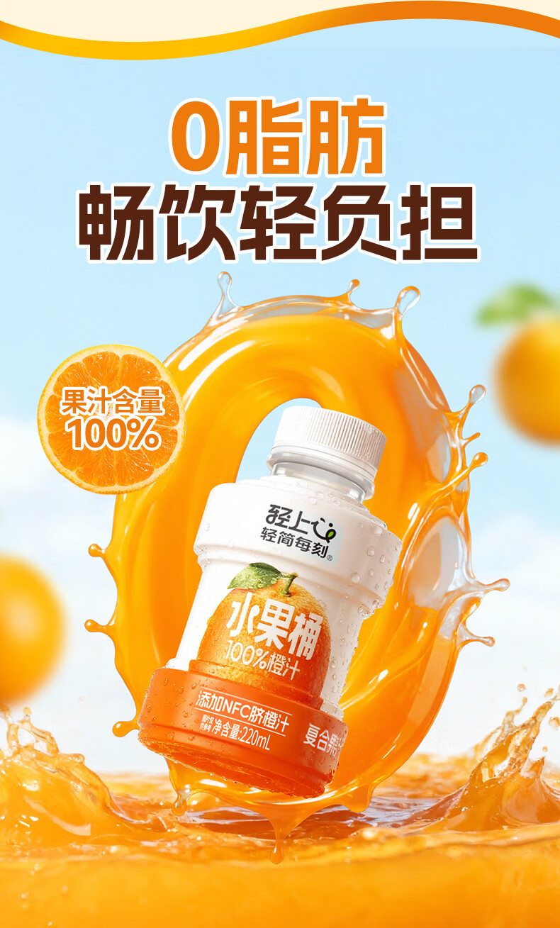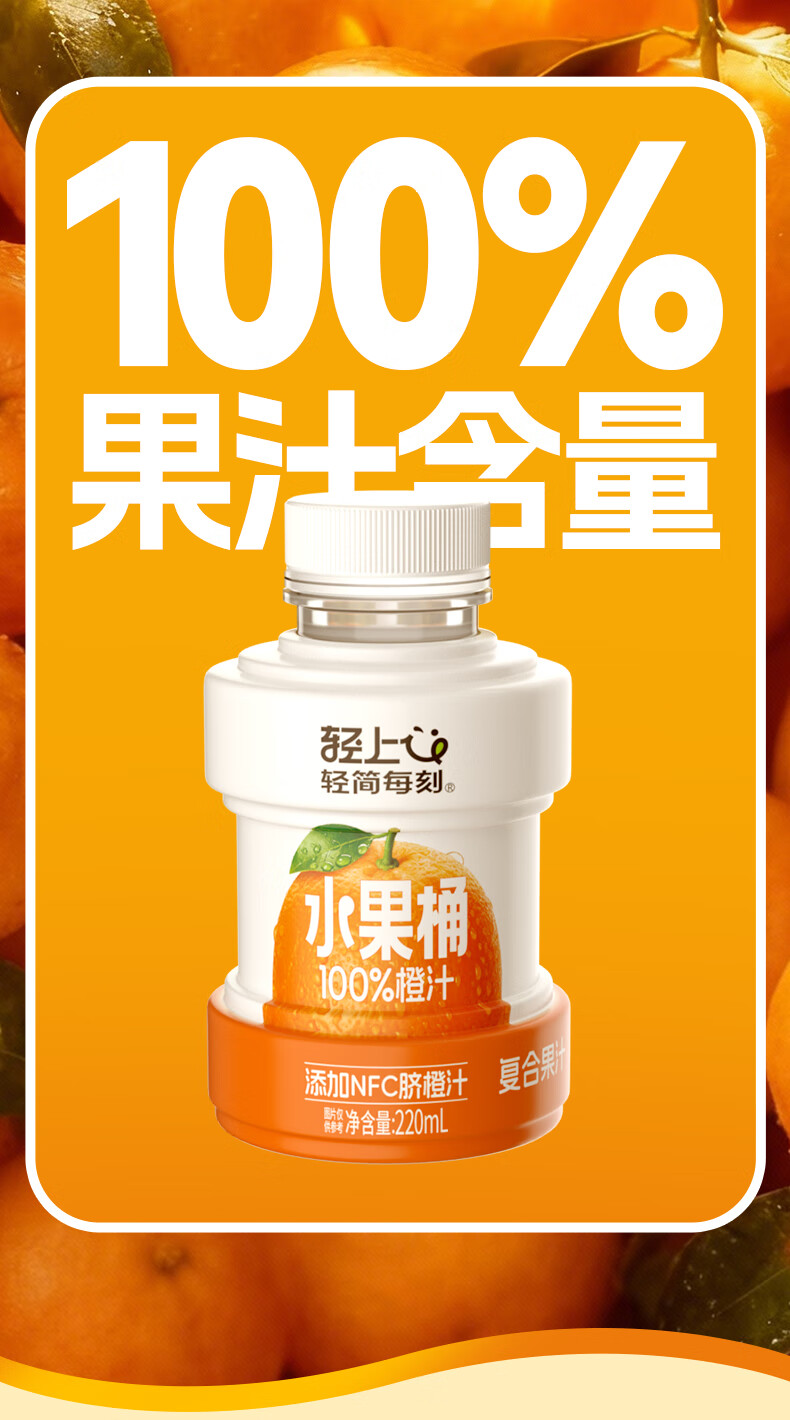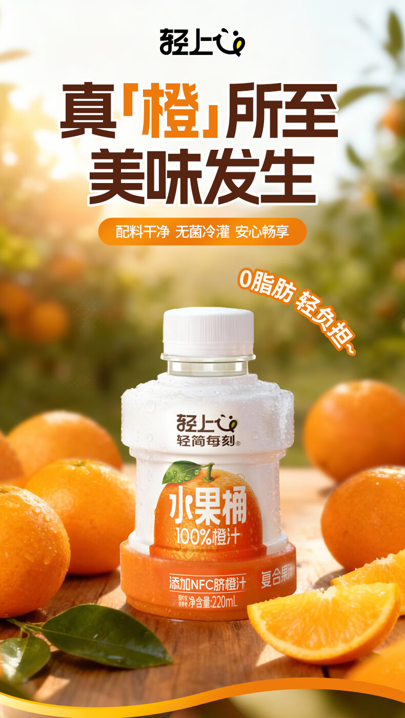 轻上【年货礼盒】轻上橙汁饮料饮品果蔬汁整箱饮料 0糖生椰1L*4瓶