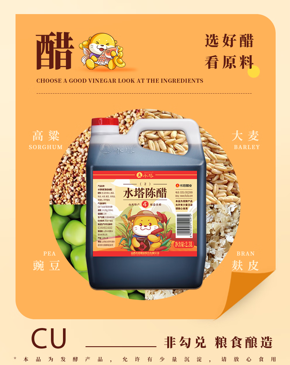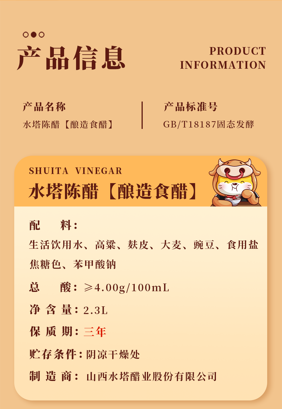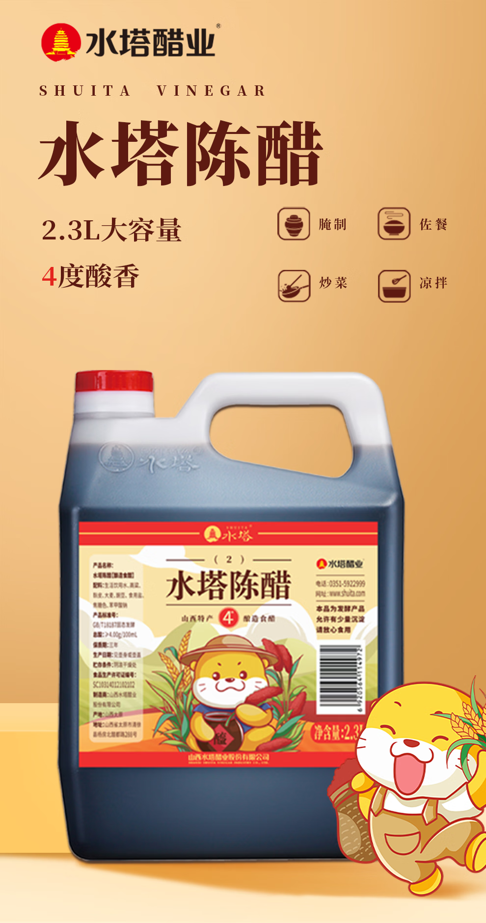 水塔陈醋4度2.3L量贩装山西醋 凉拌调味饺子蘸料醋泡黑豆腌制