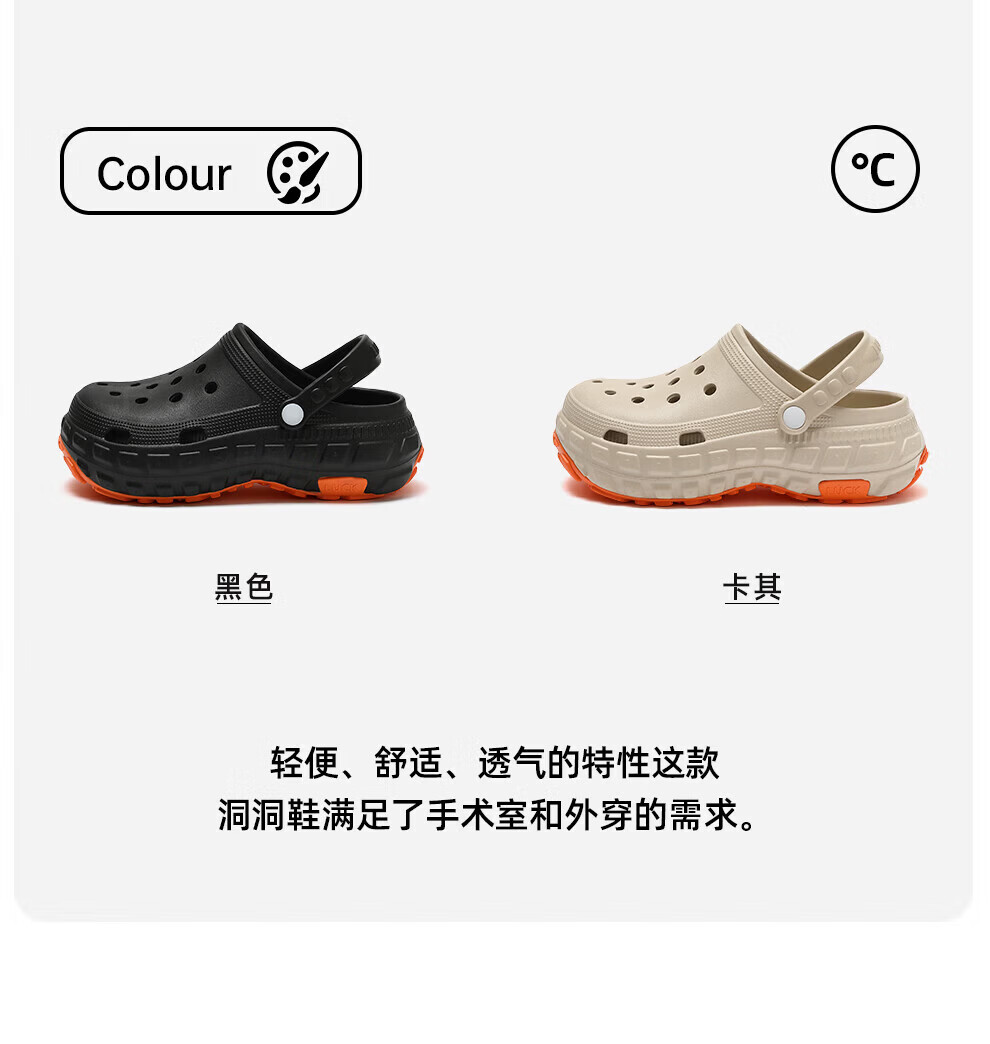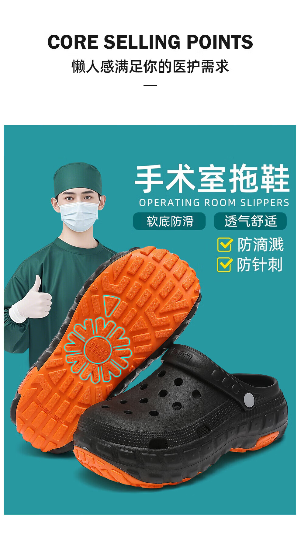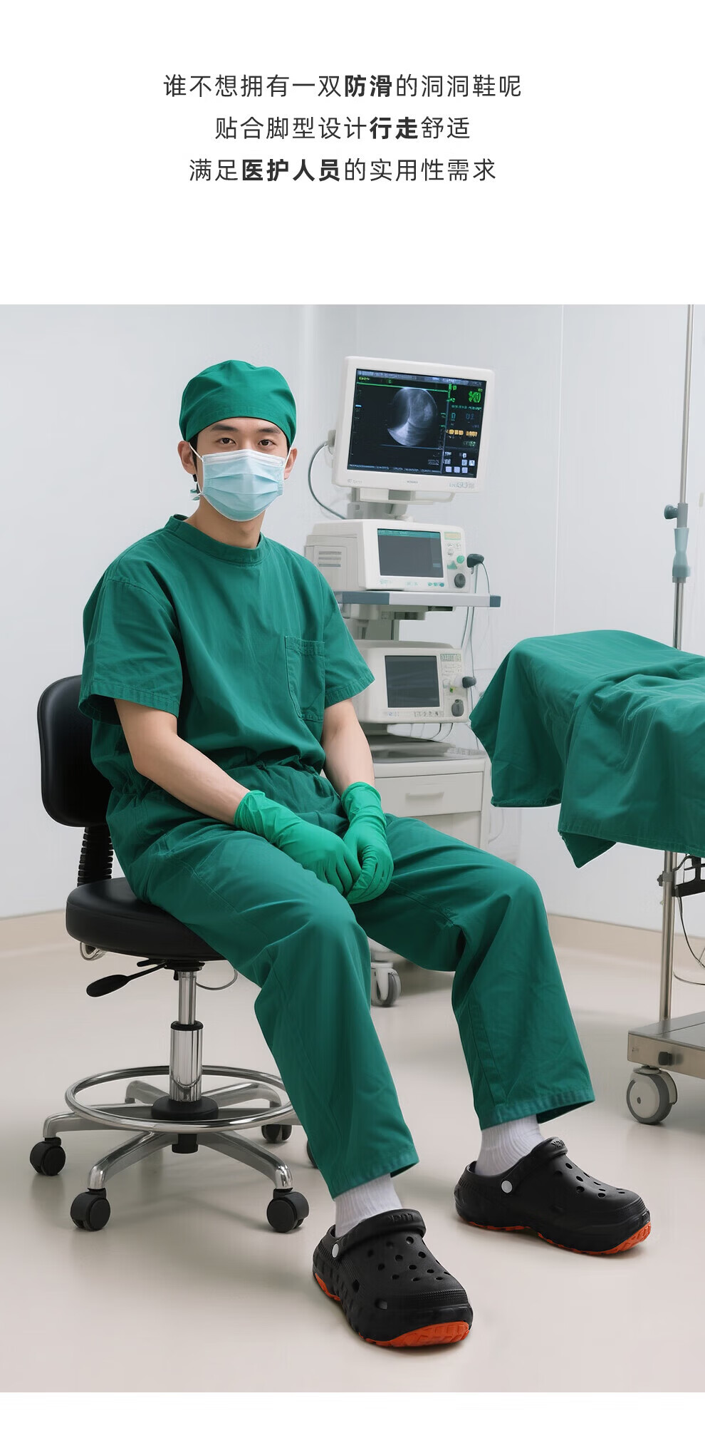 FZT防滑手术室洞洞鞋男士夏季外穿2026新款防臭厚底足弓支撑包头凉鞋 黑色【升级款】 36-37 适合35-36(内长230mm)