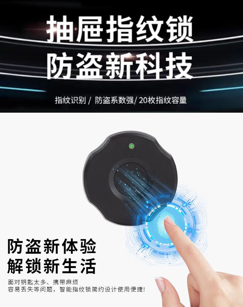 法雷斯顿 FALEISTON智能指纹抽屉锁柜子锁家用衣柜办公室文件柜防盗鞋柜储物柜电子锁 梅花形 指纹单机款(送电池、挡片)