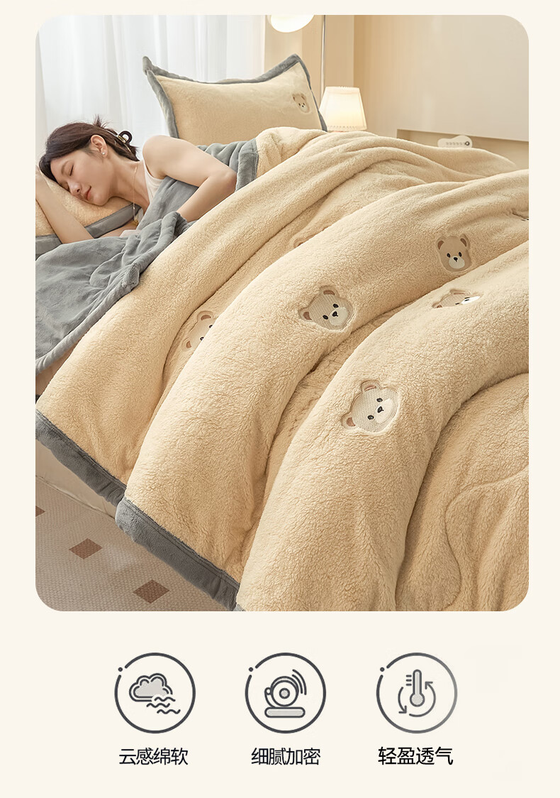 猫人(MiiOW)牛奶绒毯子毛毯被 冬季盖毯午睡毯单人沙发小毛毯 小熊-香槟+经典灰 120×200cm