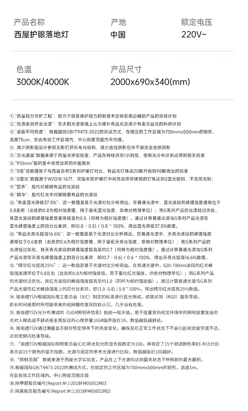 西屋(Westinghouse)护眼大路灯全光谱学习阅读灯学生专用台灯防蓝光落地灯揽光G7 WWG-160W