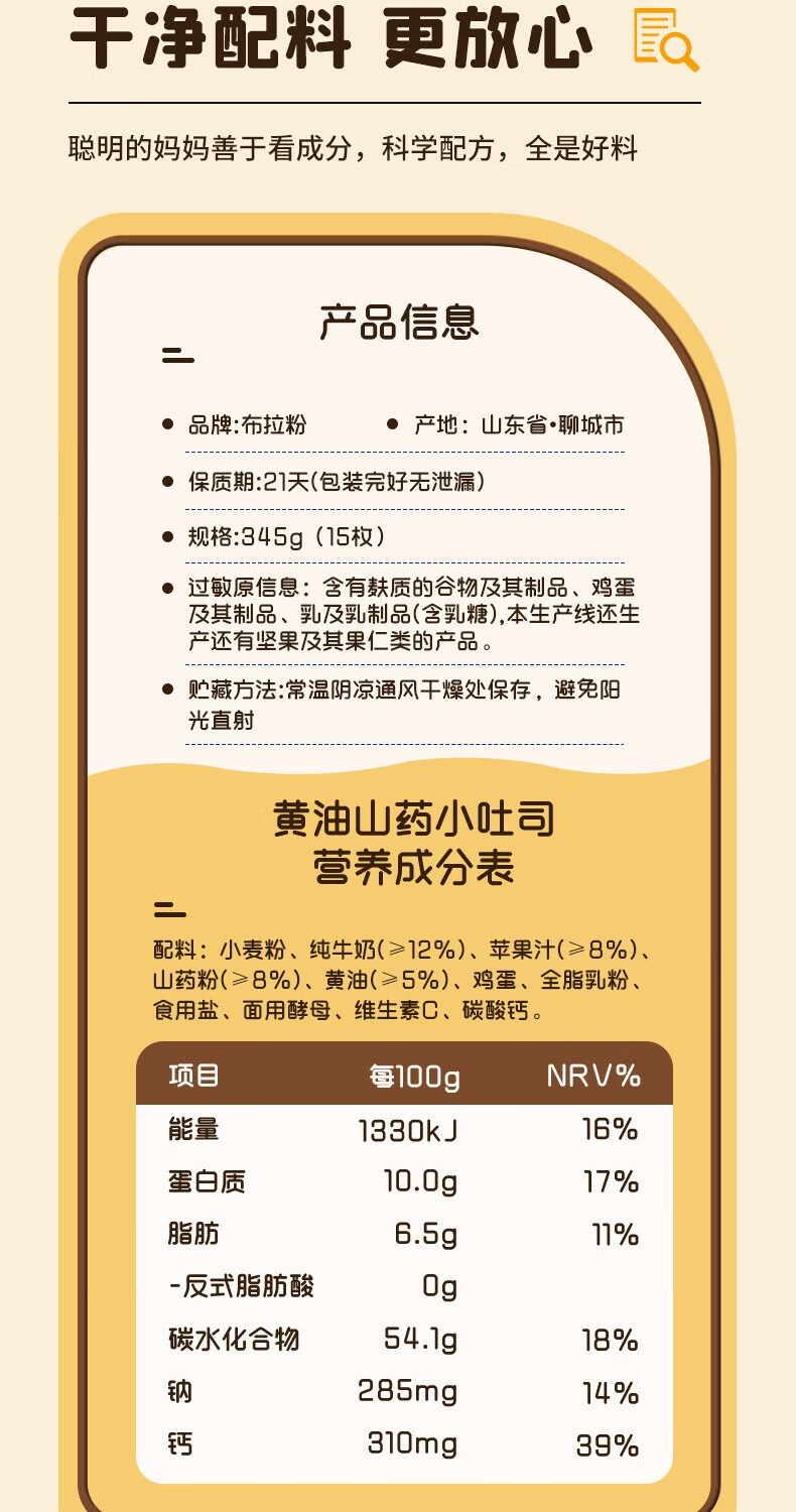 布拉粉小兔团团宝宝黄油山药小吐司厚切面包营养学生早餐儿童食品 【0防腐剂】1箱(15片)
